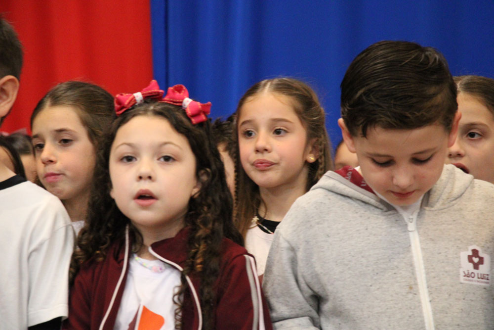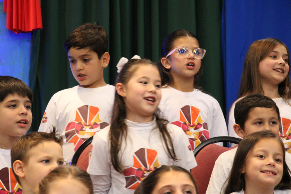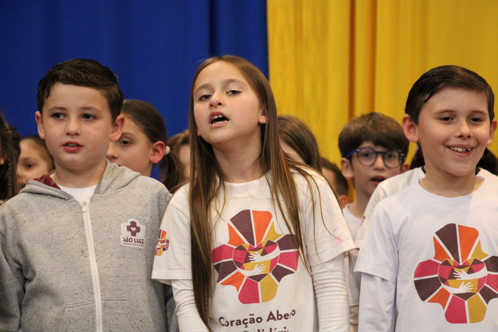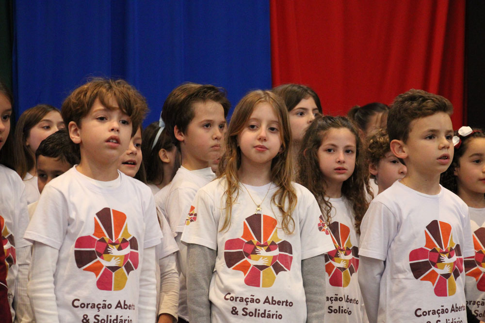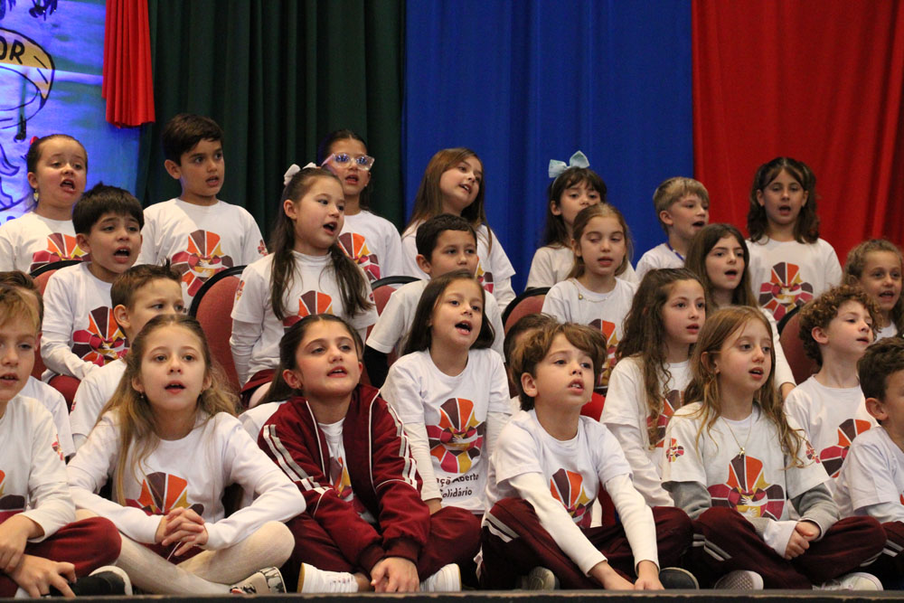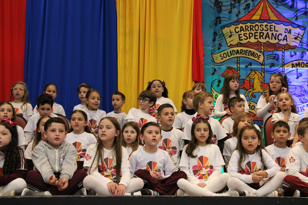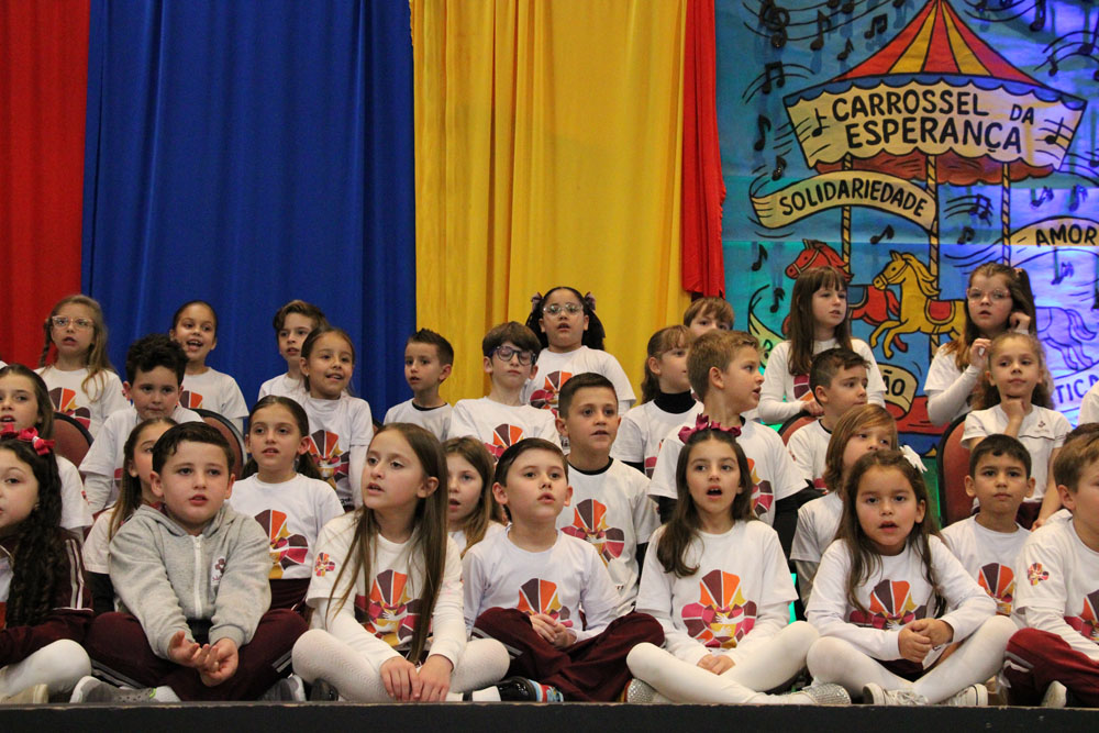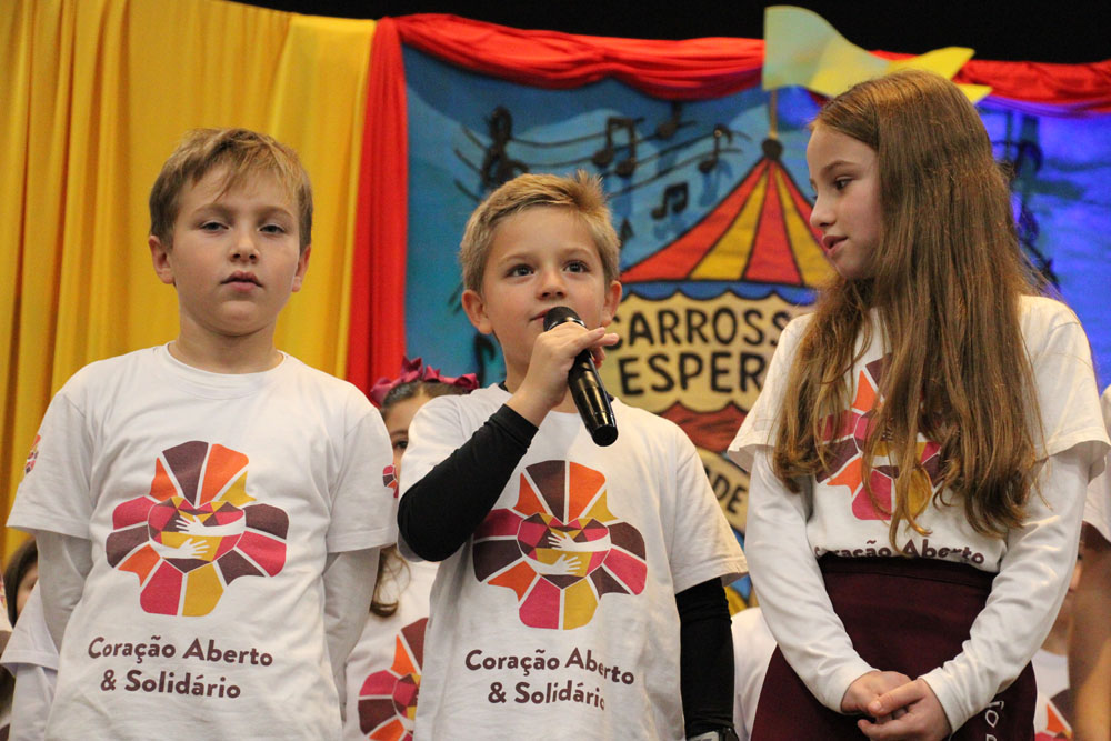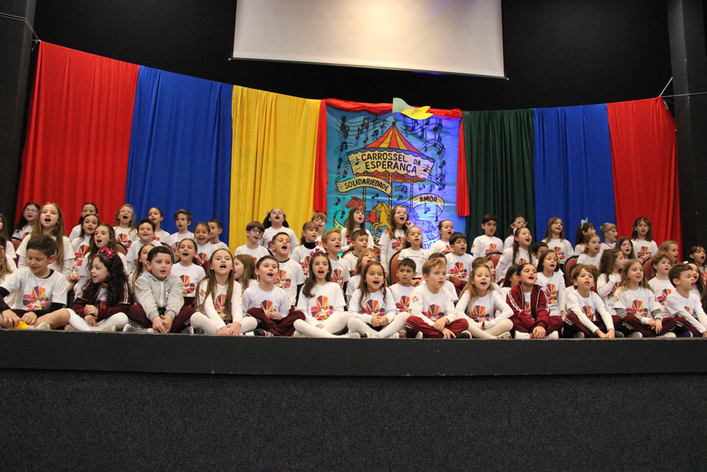 Poesia, sinônimo de emoçãoA coordenadora do Ensino Fundamental I, Katia Fantini, destaca que é impossível pensar em poesia e não falar de emoção. “Não tem como não pensar em sentimento neste momento e o tema Carrossel de Esperança, inspirado no Ano Santo, já nos traz uma sensação de amor e paz. É o que queremos transmitir”. Katia ainda enaltece a importância de ter os pais presentes na apresentação. “Para as crianças, compartilhar com os pais o que elas aprenderam e ensaiaram tanto é muito especial. Acredito que há uma bonita espera por esses momentos de apresentações”. Entre os pais na plateia estavam Caroline Nickel e Glauco Heil, pais da Annalu Nickel Heil, do 2º ano III. Eles contam que a pequena estava feliz para se apresentar, ensaiando muito em casa para tudo sair o mais bonito possível. “É sempre emocionante ver ela no palco, foi uma apresentação maravilhosa. Ela se preparou muito, todo dia pedia para colocar a música que iriam cantar. Ensaiava bastante para fazer certinho na hora. Acredito que esses momentos são muito importantes para eles e para sua formação integral”, falou Caroline.