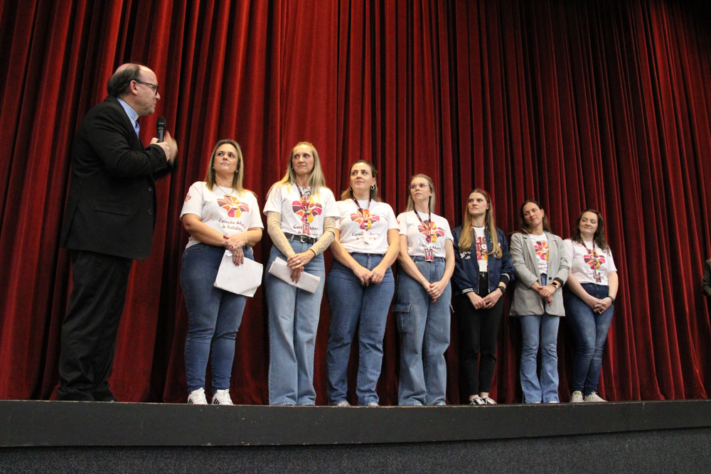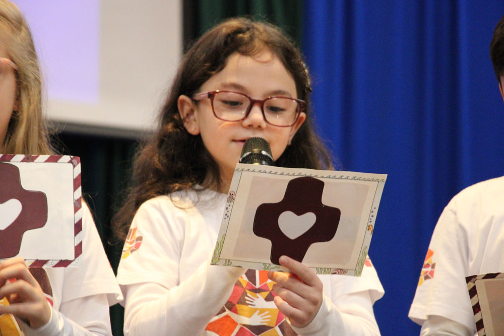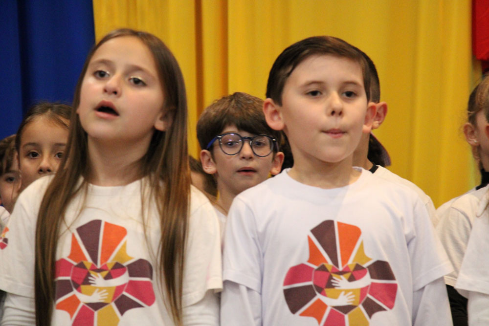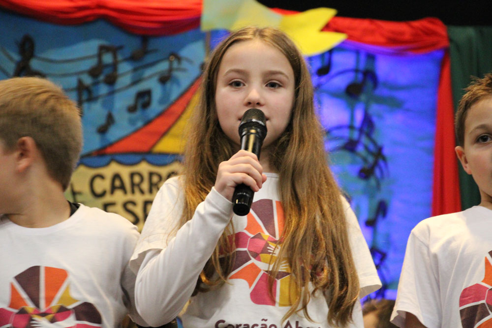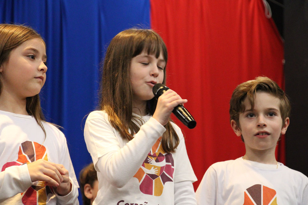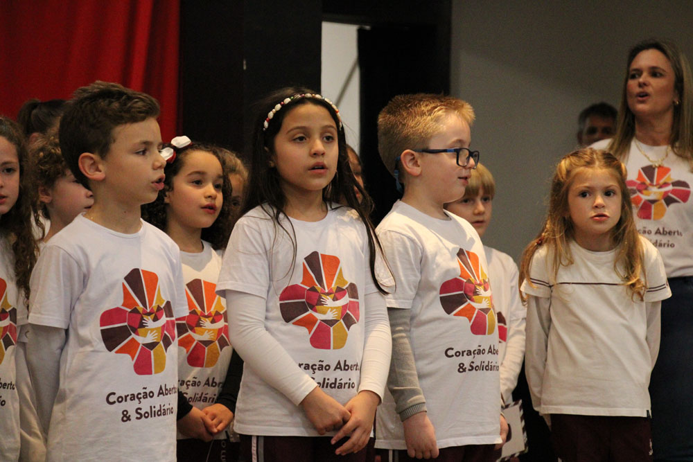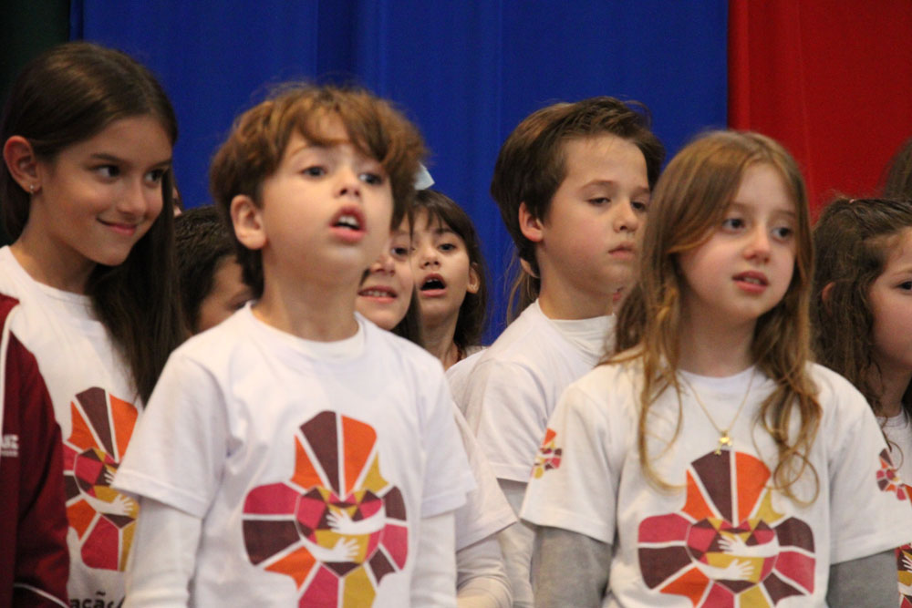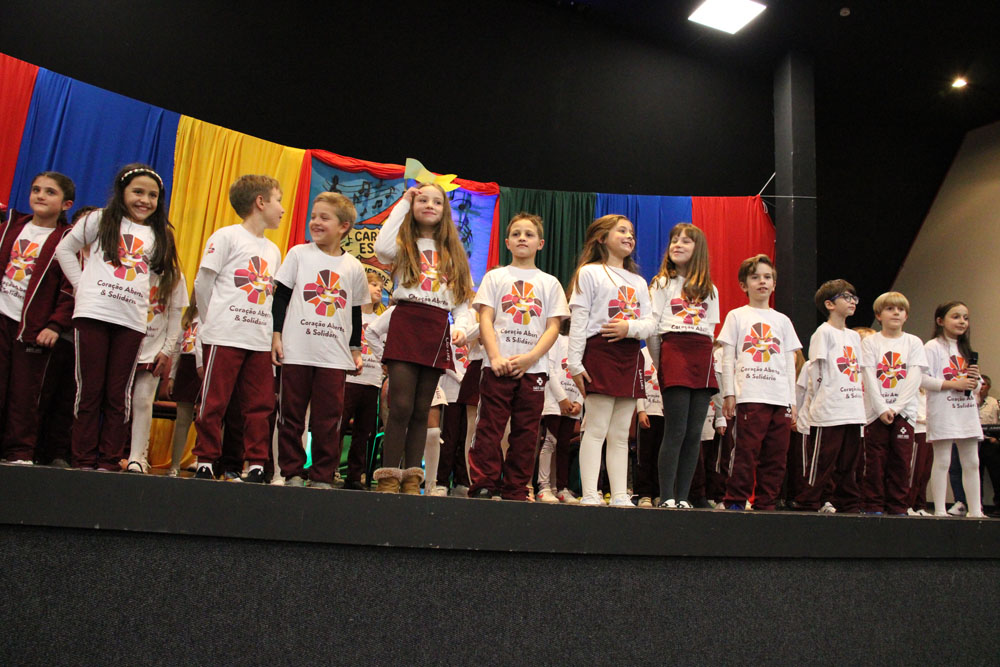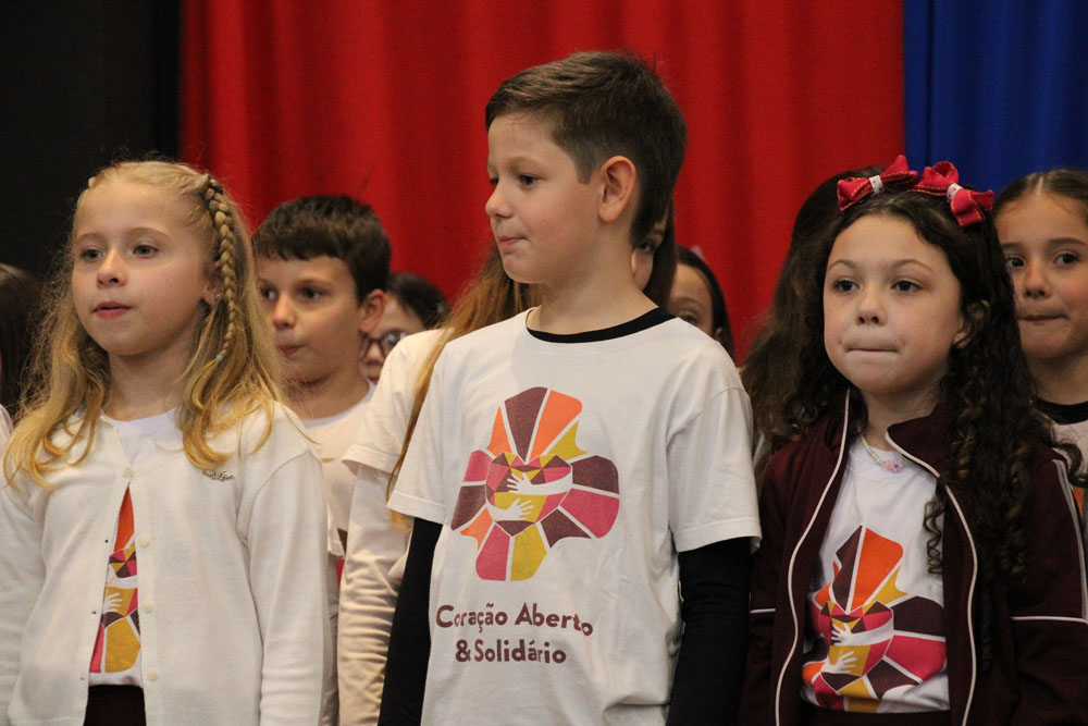 Poesia, sinônimo de emoçãoA coordenadora do Ensino Fundamental I, Katia Fantini, destaca que é impossível pensar em poesia e não falar de emoção. “Não tem como não pensar em sentimento neste momento e o tema Carrossel de Esperança, inspirado no Ano Santo, já nos traz uma sensação de amor e paz. É o que queremos transmitir”. Katia ainda enaltece a importância de ter os pais presentes na apresentação. “Para as crianças, compartilhar com os pais o que elas aprenderam e ensaiaram tanto é muito especial. Acredito que há uma bonita espera por esses momentos de apresentações”. Entre os pais na plateia estavam Caroline Nickel e Glauco Heil, pais da Annalu Nickel Heil, do 2º ano III. Eles contam que a pequena estava feliz para se apresentar, ensaiando muito em casa para tudo sair o mais bonito possível. “É sempre emocionante ver ela no palco, foi uma apresentação maravilhosa. Ela se preparou muito, todo dia pedia para colocar a música que iriam cantar. Ensaiava bastante para fazer certinho na hora. Acredito que esses momentos são muito importantes para eles e para sua formação integral”, falou Caroline.