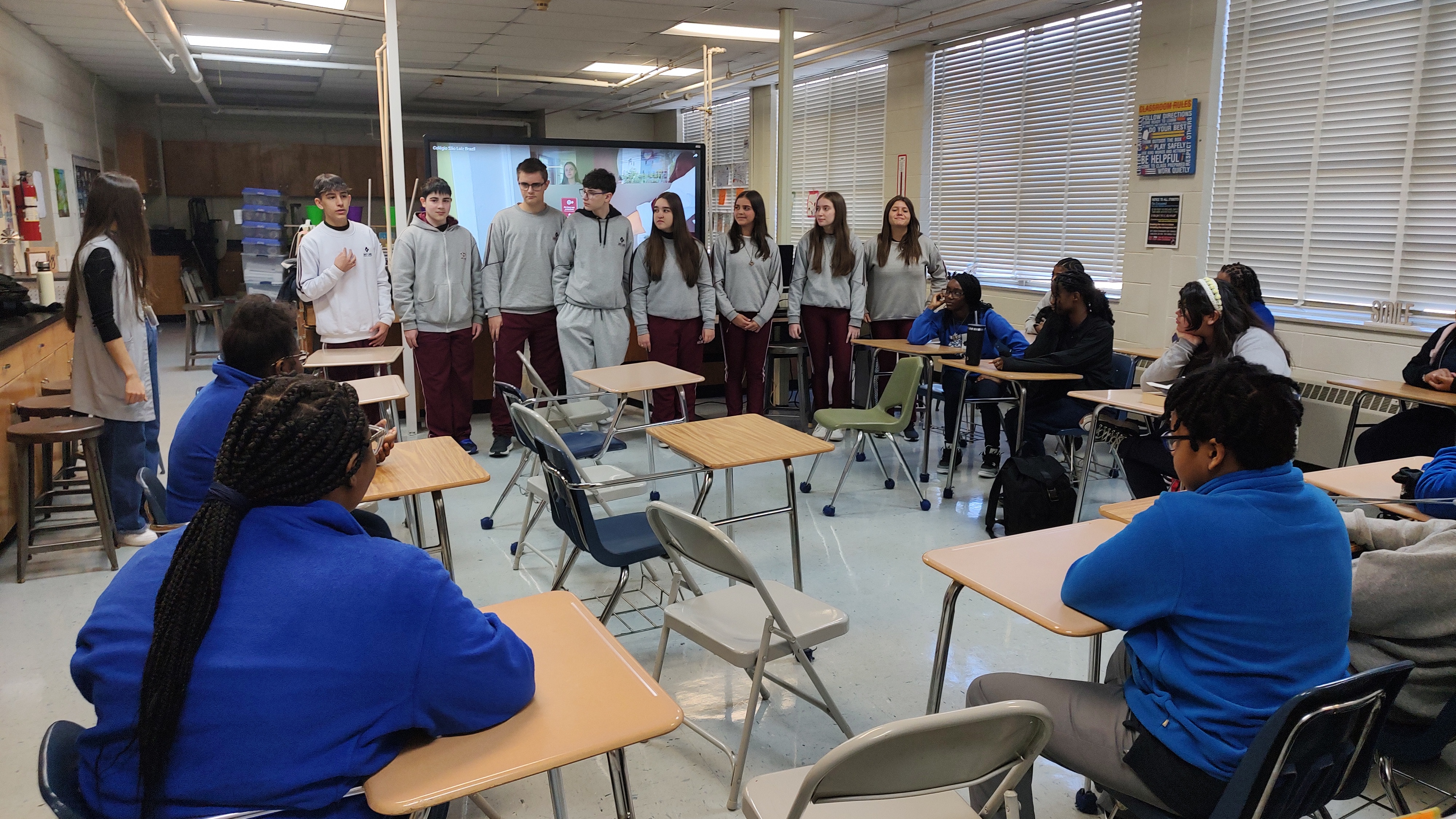 Novas experiênciasAlém da rotina na Sacred Heart School, neste ano, os intercambistas tiveram a oportunidade de conhecer outra escola dehoniana: a Holy Family Catholic School, na cidade de Holly Springs. A instituição, que tem turmas da educação infantil até o oitavo ano, fez questão de acolher os estudantes brasileiros para momentos de integração. \"Fomos até a escola durante dois dias. Foi incrível e ficamos felizes por essa presença dehoniana, do se reconhecer dehoniano e estar naquela unidade de ensino também. Os professores nos acolheram muito bem. Criamos vínculos com mais uma instituição e agora a ideia é manter esse contato com ações on-line de integração entre a nossa escola e a deles\", afirma a coordenadora do Programa Bilíngue.Mariane destaca ainda a postura dos intercambistas dentro da sala de aula, que foi muito elogiada pelos professores americanos. \"Tivemos um retorno incrível dos professores da escola, de como nossos alunos são dedicados e interessados. Só escutamos coisas positivas. Mais do que nunca vimos como essa união do trabalho da escola e da família tem surtido efeito. Vimos que a educação que o Colégio São Luiz oferece em termos de conhecimento, aliada a que as famílias oferecem em termos de boa convivência, tem dado muitos frutos\".