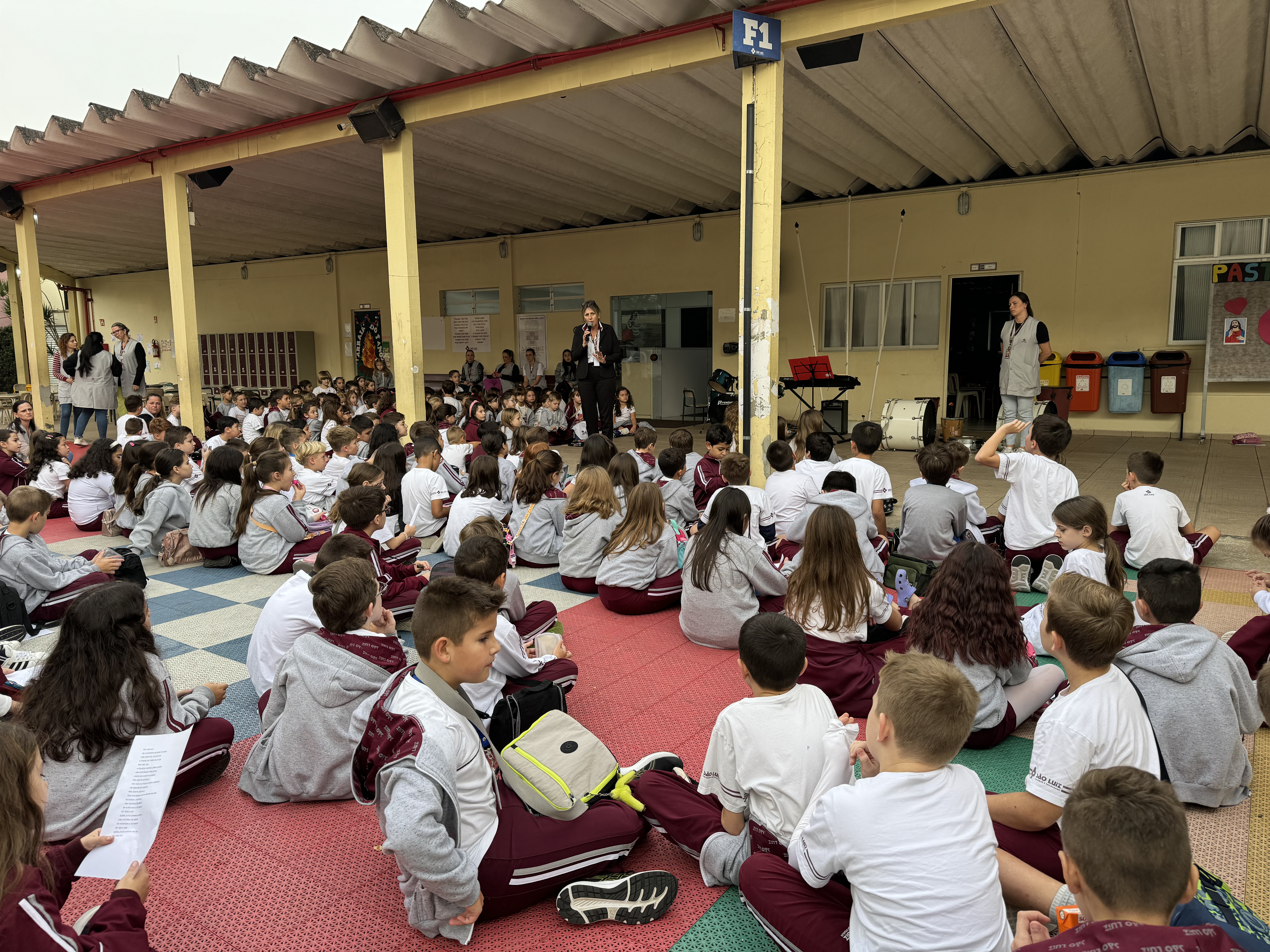Durante as aulas de Música, no dia 10 de junho, os alunos dos 3º Anos realizaram um Sarau. A atividade ocorreu no pátio do colégio e oportunizou com que as crianças demonstrassem suas habilidades artísticas. Conforme explica a professora de Música, Jenifer Prette Jorge, sarau é um evento cultural, onde as pessoas se reúnem para compartilhar suas manifestações artísticas. Seu objetivo principal é aproximar e conectar os participantes por meio de expressões artísticas. “Os alunos foram convidados a participar de um Encontro Musical, oferecendo um sarau para demonstrar suas habilidades artísticas, podendo escolher entre dançar, cantar ou tocar algum instrumento musical. Conversamos sobre o que eles estão acostumados a ouvir em casa e na escola, bem como discutimos seus variados gostos e estilos musicais. Após essa conversa, eles formaram grupos e planejaram suas apresentações, estudando as músicas e letras. Além disso, escolheram uma música para cantarem juntos, na abertura das apresentações”, contou a professora Jenifer. Ela ainda complementa que o sarau é um momento importante, pois desenvolve diversas habilidades como respeito, cooperação e tolerância. “Durante o evento, é essencial reconhecer que cada pessoa possui diferentes habilidades e talentos, o que promove o aprendizado e o respeito pelas diferenças. Os alunos estavam realizados ao compartilhar o que haviam preparado com colegas de outras turmas. Muitos até pediram para apresentar mais vezes. Já as outras turmas do Ensino Fundamental I que assistiram ficaram tão empolgadas que alguns já estão ansiosos para chegar ao 3º Ano e montar suas próprias apresentações”, finalizou.