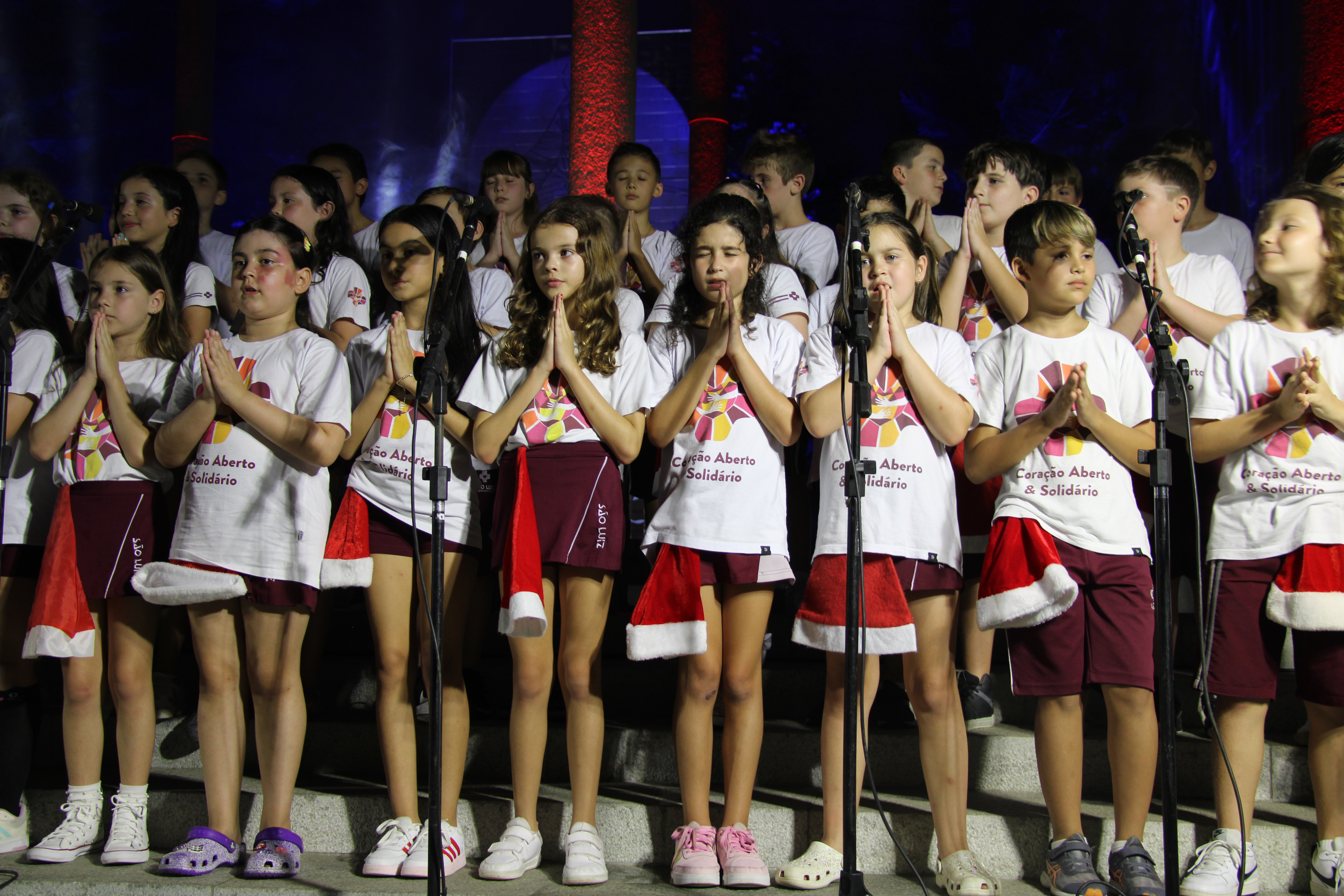 O canto entoado pelos mais de 250 estudantes do Ensino Fundamental I do Colégio São Luiz ecoou pela igreja Matriz São Luís Gonzaga, na noite de quinta-feira, 28 de novembro. Os clássicos de natal emocionaram o público formado por pais, familiares e comunidade que lotaram o local.