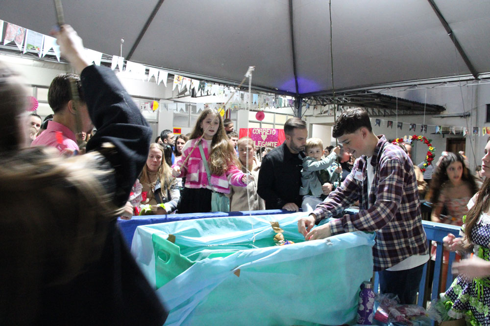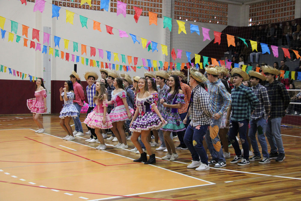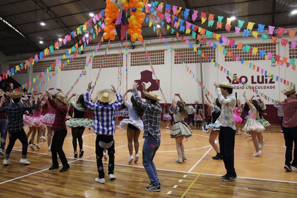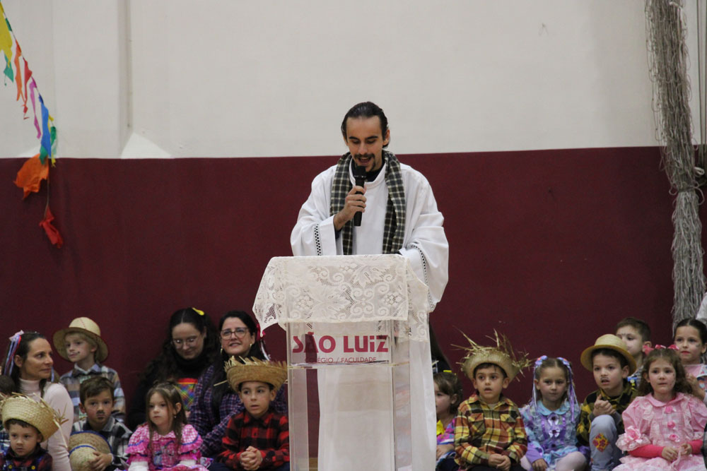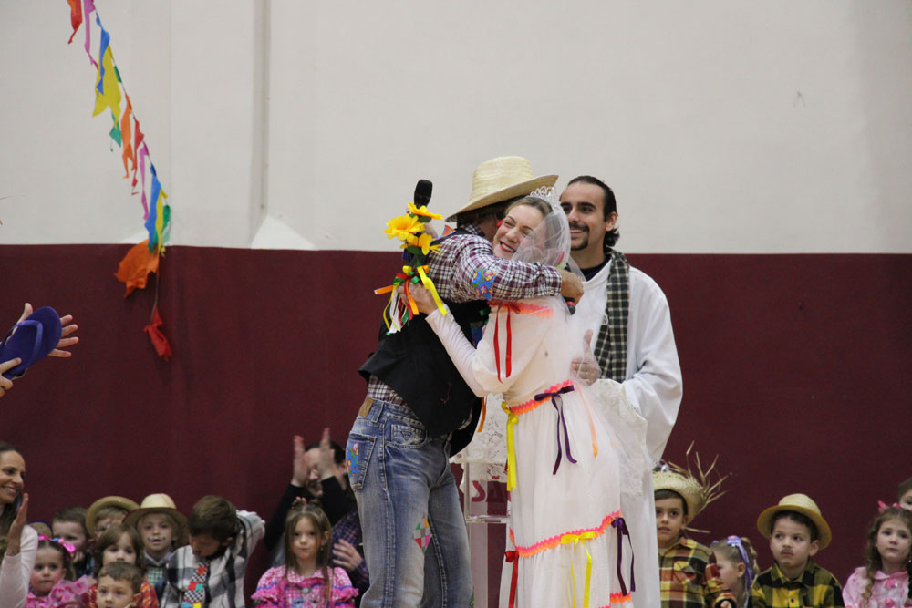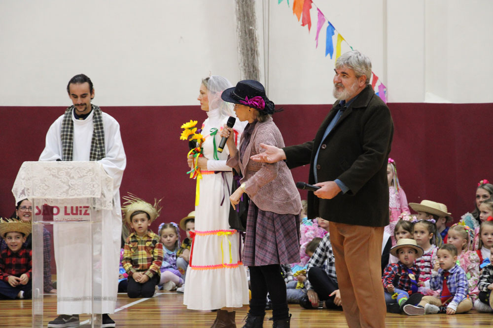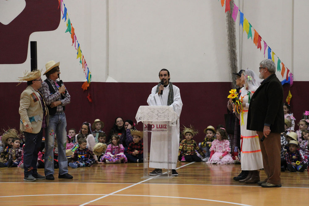 A tarde de sábado, 28 de junho, foi marcada pelas apresentações de danças típicas, brincadeiras e comidas tradicionais na Festa Junina do Colégio São Luiz. A grande motivação deste ano foi arrecadar fundos para a reconstrução do telhado da igreja da Comunidade Nossa Senhora Aparecida, no bairro Steffen, danificado por um vendaval em janeiro deste ano.As festividades iniciaram no ginásio do colégio com a quadrilha do terceirão, seguida pelas apresentações das turmas da Educação Infantil e Ensino Fundamental I. Além disso, a grande novidade da festa, foram os professores e colaboradores do colégio subiram ao palco e protagonizaram um casamento caipira e uma dança especial, que foi aprovada e muito comentada pelo público. Logo após, todos foram convidados a se dirigirem até o salão da igreja Matriz, onde houve brincadeiras como pescaria, boca do palhaço e chute ao gol. Outra atração foi a venda de comidas típicas, como pinhão, quentão, pipoca e cachorro-quente. “A festa junina é um dos eventos mais esperados, porque celebramos São João, São Pedro e Santo Antônio. É uma tradição sadia, que lembra a reunião de família, no caso do colégio: os pais vindo ver os seus filhos dançar e confraternizar com os festejos externos no salão paroquial, sempre primando pela unidade, alegria e fraternidade”, ressalta o diretor do colégio, padre Silvano João da Costa.