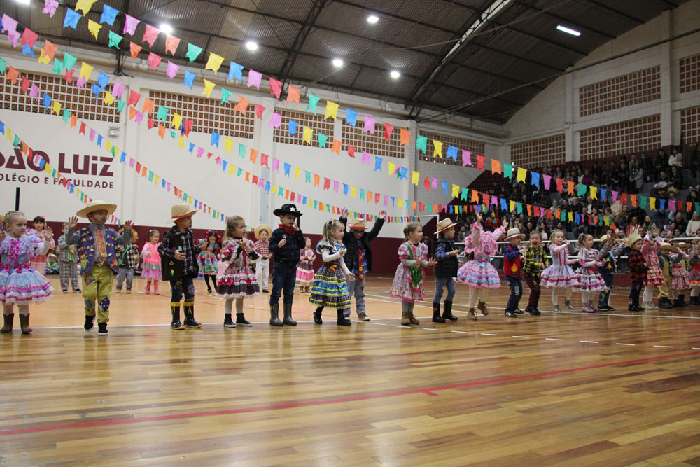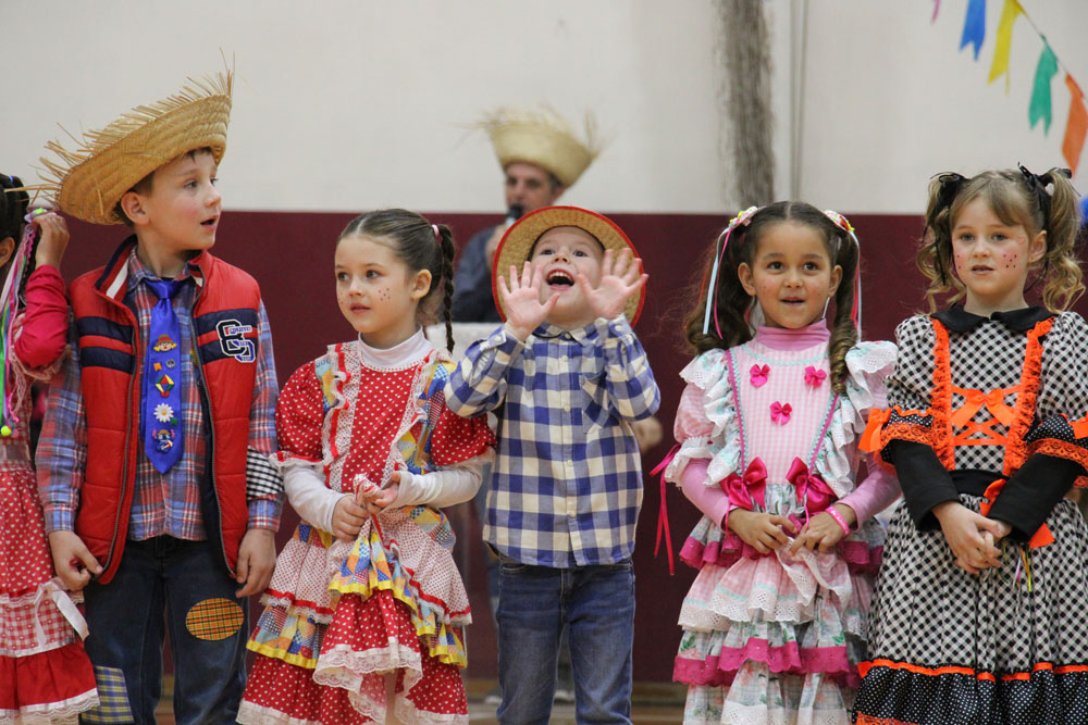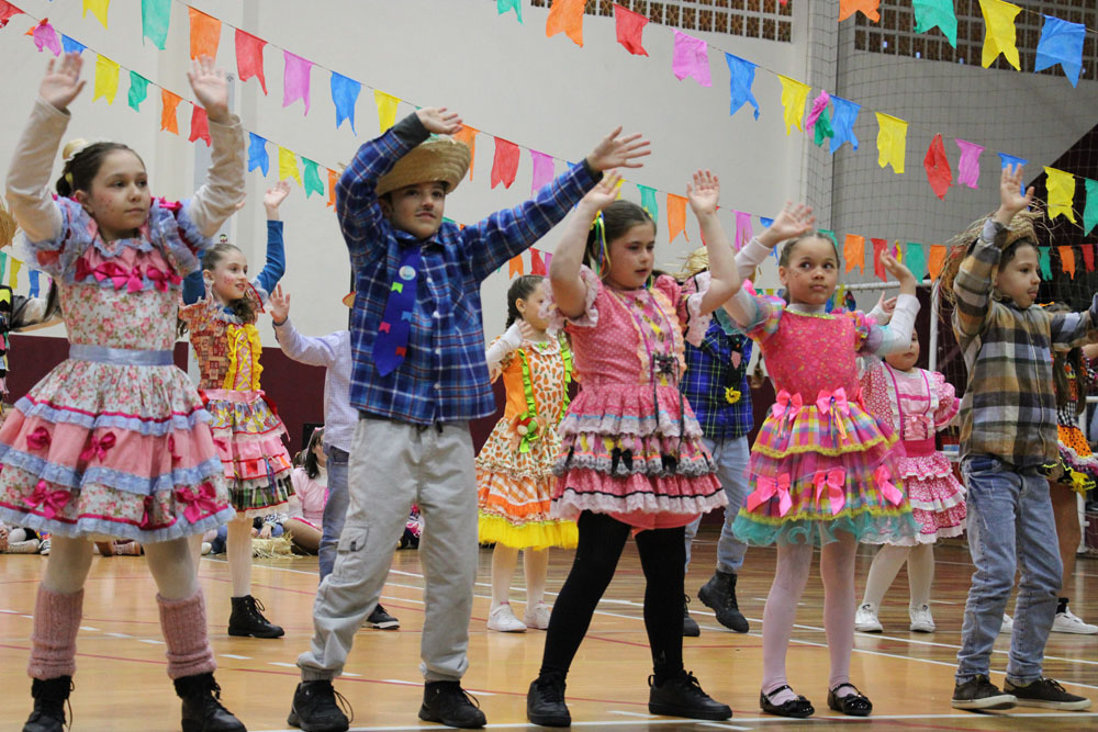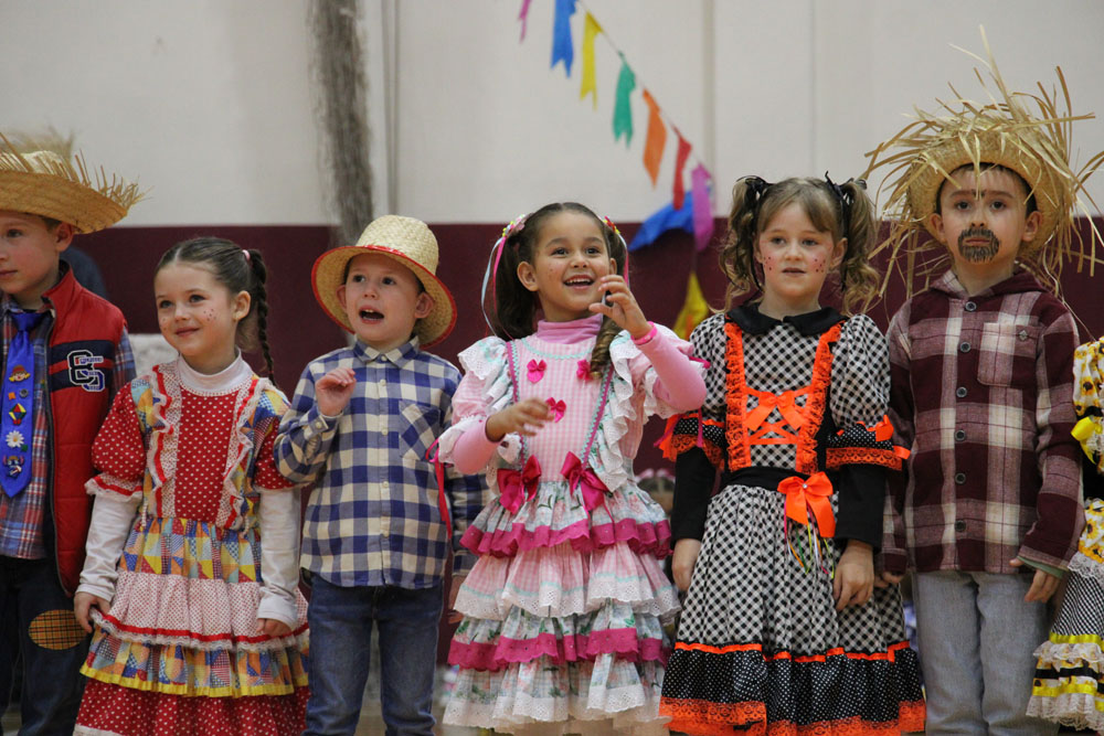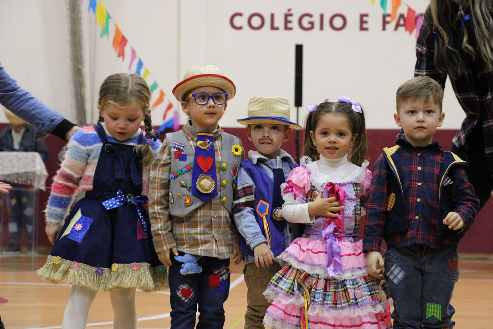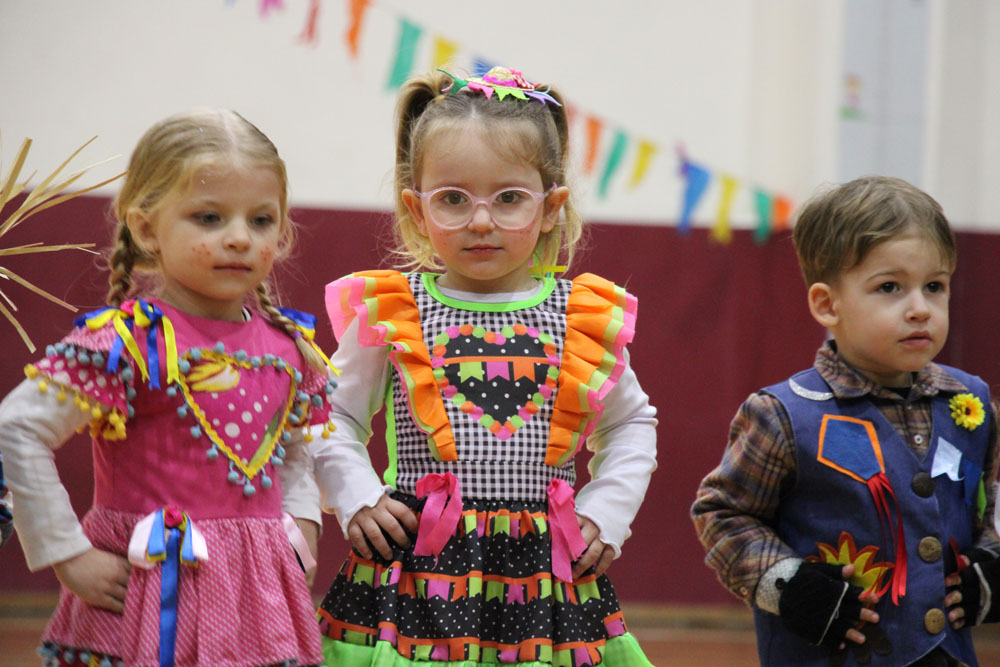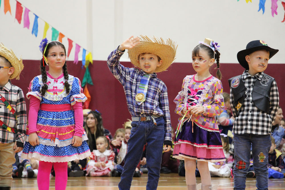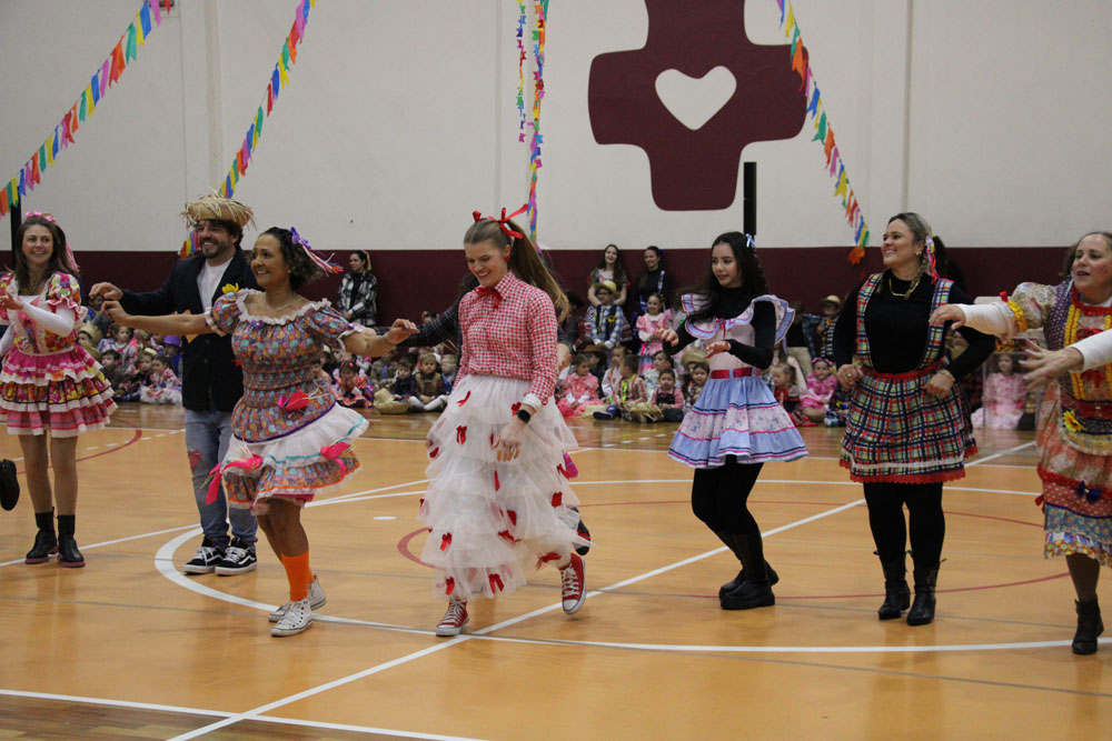 Fortalecendo a tradiçãoTambém abrilhantando a festa, as turmas da Educação Infantil e Ensino Fundamental I trouxeram para o palco músicas que mostram a diversidade cultural brasileira relacionada à celebração da Festa Junina. “Trazer a família para a escola é sempre importante e especial. A Festa Junina mexe com alegria, emoção e principalmente, tradição, nos mostrando que no nosso país temos uma mesma festa, mas que cada região tem sua particularidade e isso é importante na formação das crianças: conhecer e respeitar cada cultura”, ressaltou a coordenadora do Ensino Fundamental I, Katia Fantini Coelho.Assim como ela, a coordenadora da Educação Infantil, Sandra Cristini da Silva Ristow, destaca a representatividade do momento para as famílias e às crianças, que esperam ansiosamente pela apresentação. “A Festa Junina tem toda a simbologia da fé cristã e nós, como colégio confessional católico, resgatarmos essa tradição. As crianças gostam muito deste momento, desde as mais pequenininhas do maternal, que muitas vezes ficam tímidas e não dançam, mas se sentem felizes de estar ali. E as famílias também, para eles é maravilhoso ver o filho, neto ou sobrinho ali no palco se apresentando”, afirmou.