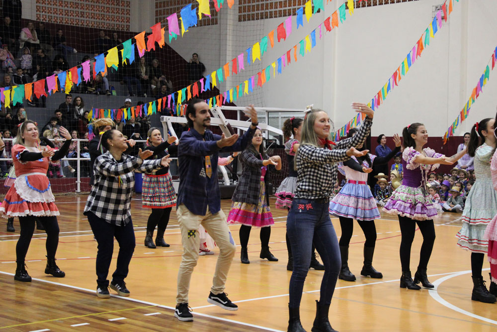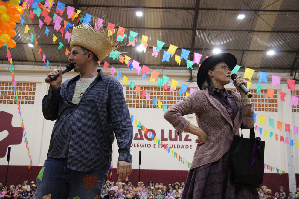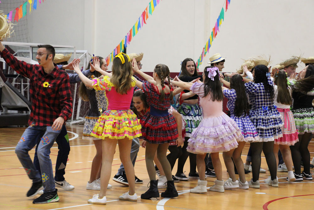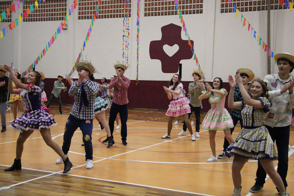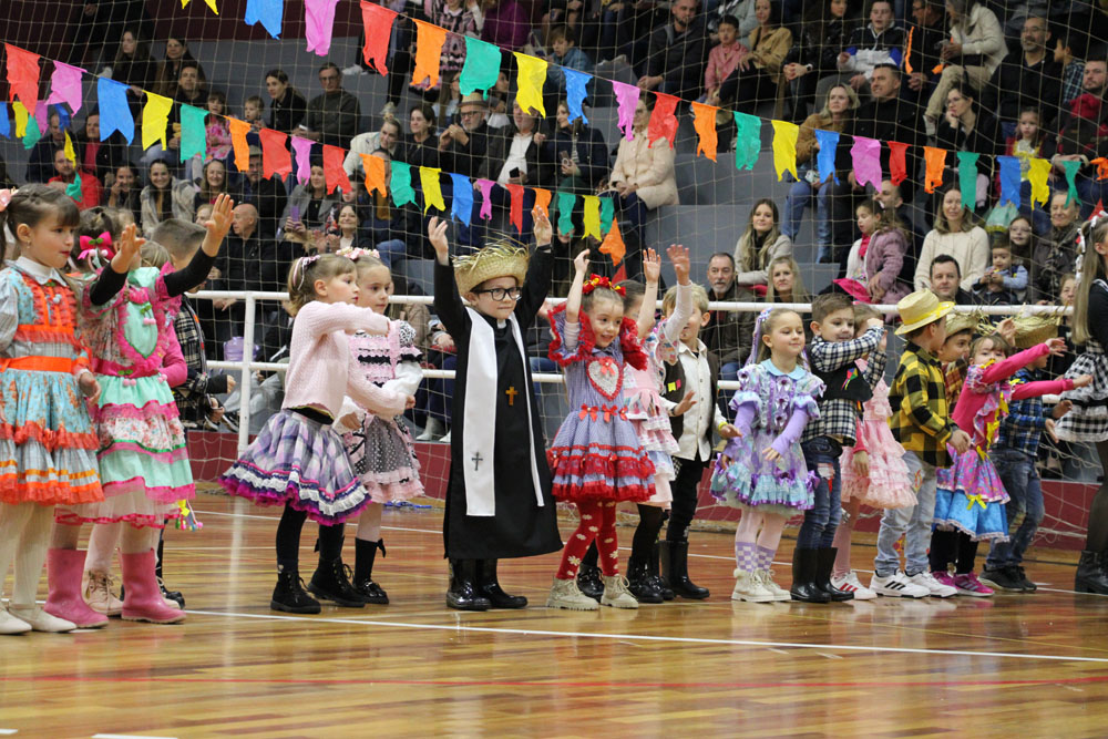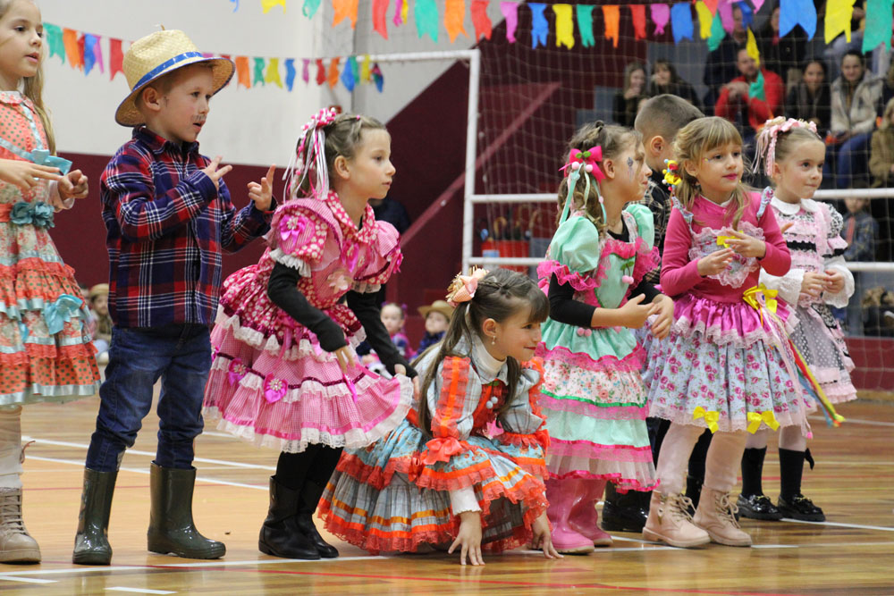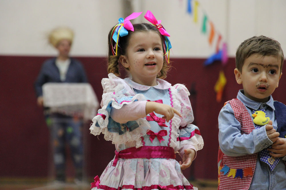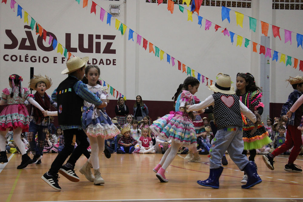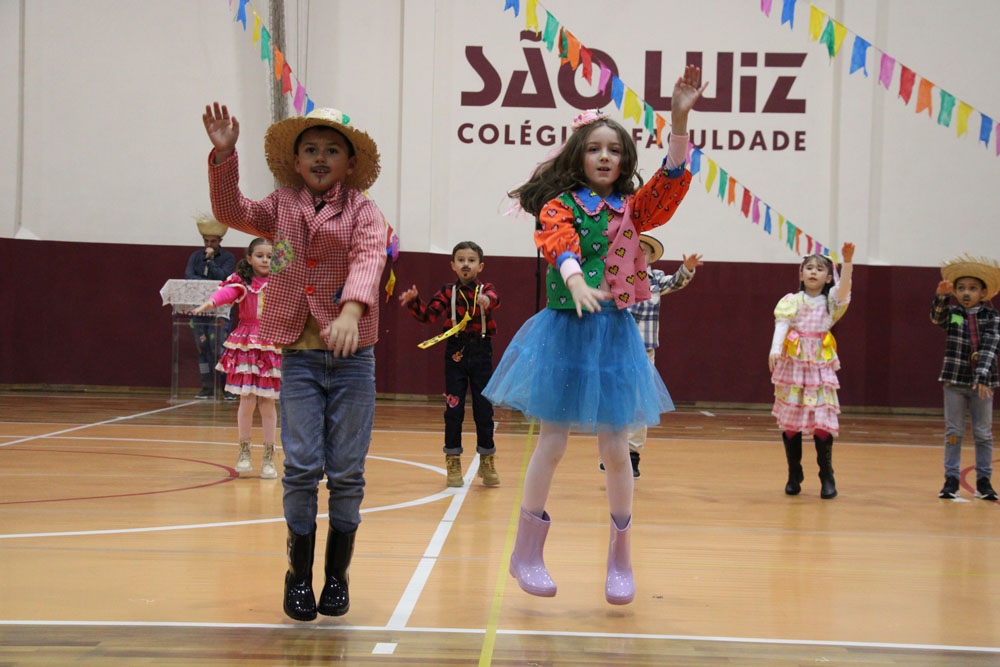 Fortalecendo a tradiçãoTambém abrilhantando a festa, as turmas da Educação Infantil e Ensino Fundamental I trouxeram para o palco músicas que mostram a diversidade cultural brasileira relacionada à celebração da Festa Junina. “Trazer a família para a escola é sempre importante e especial. A Festa Junina mexe com alegria, emoção e principalmente, tradição, nos mostrando que no nosso país temos uma mesma festa, mas que cada região tem sua particularidade e isso é importante na formação das crianças: conhecer e respeitar cada cultura”, ressaltou a coordenadora do Ensino Fundamental I, Katia Fantini Coelho.Assim como ela, a coordenadora da Educação Infantil, Sandra Cristini da Silva Ristow, destaca a representatividade do momento para as famílias e às crianças, que esperam ansiosamente pela apresentação. “A Festa Junina tem toda a simbologia da fé cristã e nós, como colégio confessional católico, resgatarmos essa tradição. As crianças gostam muito deste momento, desde as mais pequenininhas do maternal, que muitas vezes ficam tímidas e não dançam, mas se sentem felizes de estar ali. E as famílias também, para eles é maravilhoso ver o filho, neto ou sobrinho ali no palco se apresentando”, afirmou.