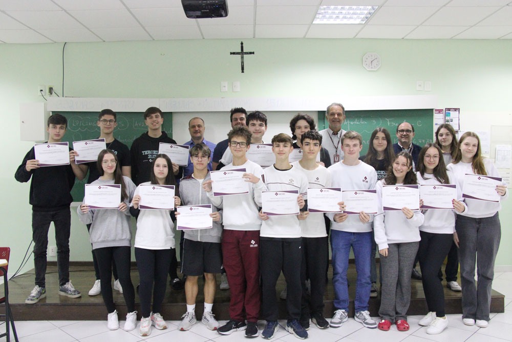 O Colégio São Luiz iniciou em março a primeira turma do curso de Educação Financeira. Com duração de quatro meses, a capacitação abordou desde conceitos básicos até planos de ação em investimentos. A turma, composta por alunos do 9º Ano à 3ª série do Ensino Médio, teve como professores os especialistas José Vitor Kohler e Andrigo Mueller. O término do primeiro módulo ocorreu na tarde de quinta-feira, 27 de junho, com a entrega dos certificados aos concluintes. Conforme explica o coordenador pedagógico, Fabrício Bado, o intuito é de que os jovens desenvolvam a consciência de como lidar com o seu dinheiro, melhores maneiras para investir, como realizar planejamento de ações e, também, alertá-los sobre possíveis golpes. “Esse curso vem ao encontro à filosofia pregada pelo Colégio São Luiz, que é a formação integral dos alunos. Obter conhecimento na área financeira também resguarda o jovem, que pode trabalhar com planos de ação de curto, médio e longo prazo. Além de ter a consciência de que existem diversas maneiras de aplicar seu dinheiro e fazê-lo render bons ganhos”, explicou Bado. Ele frisa que o conhecimento adquirido é importante para toda a vida dos estudantes. “Essa formação vem para favorecer e somar no futuro deles, seja para um planejamento a longo prazo visando uma aposentadoria, uma condição segura e tranquila de vida. Ou também a curto prazo com investimentos em ações ou criptomoedas. Mas o principal objetivo é que o conhecimento financeiro proporcione uma qualidade de vida confortável”, pontuou.