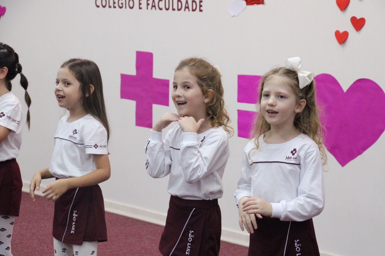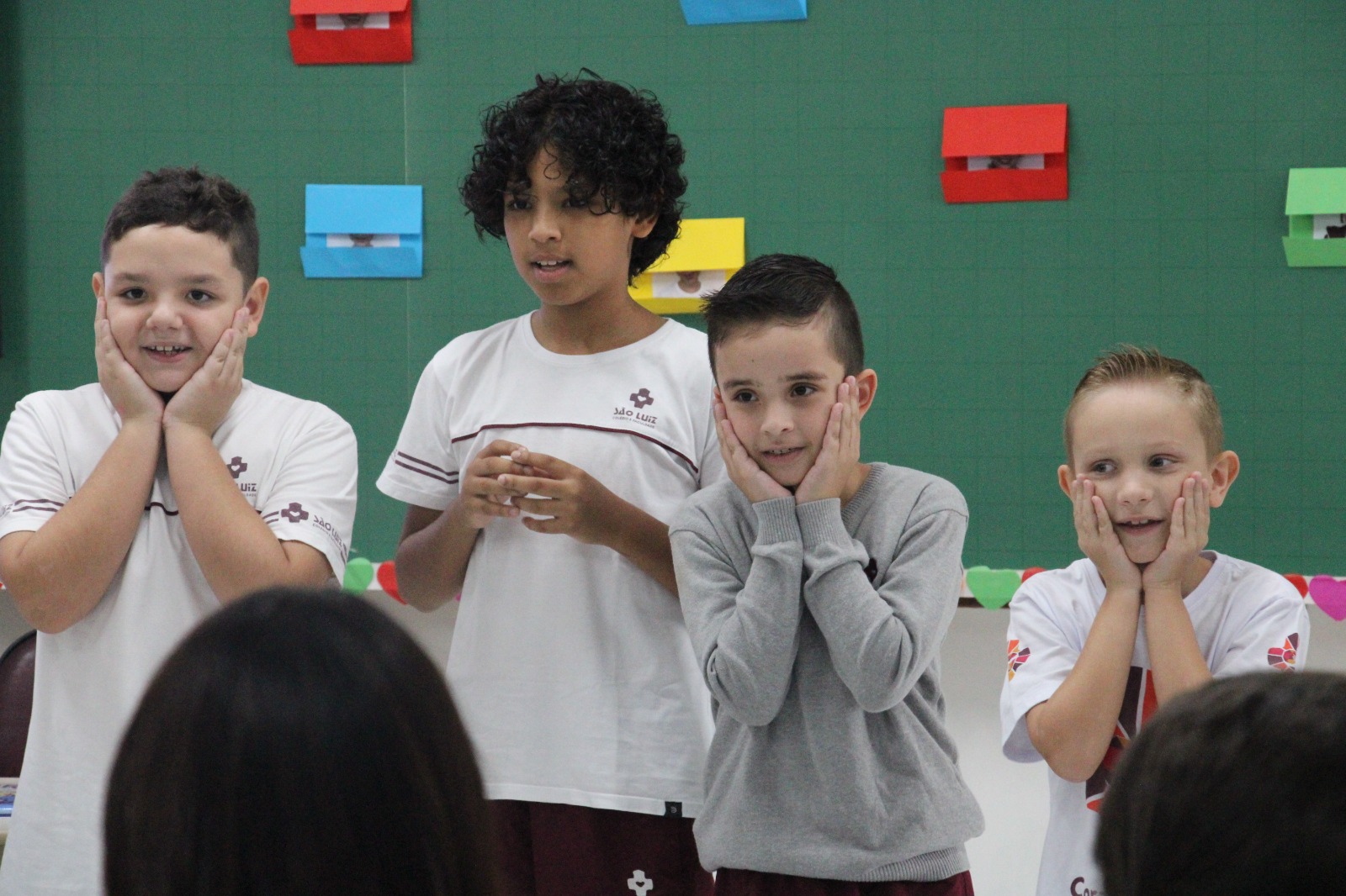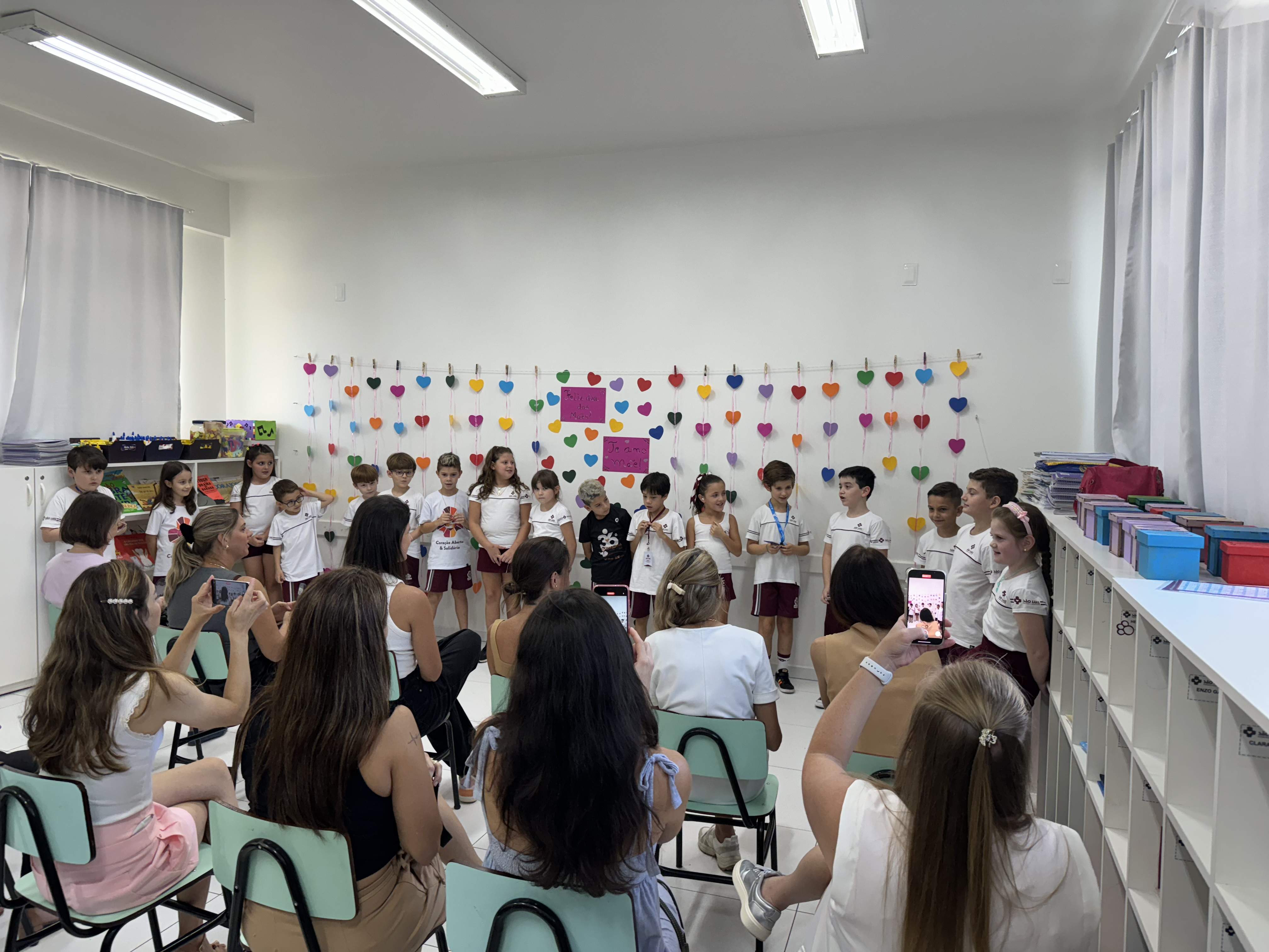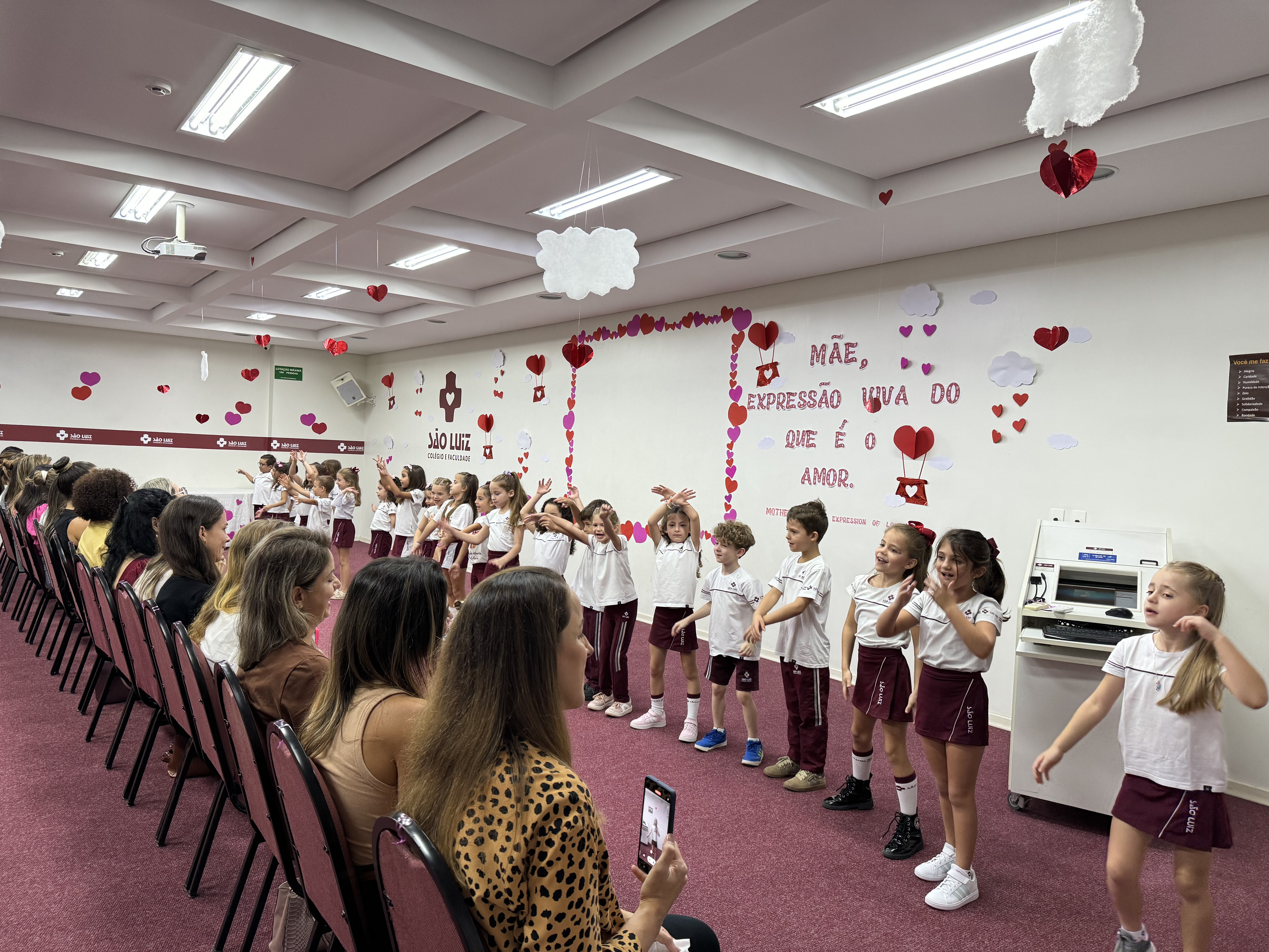 Entre os dias 6 a 10 de maio, alunos das turmas da Educação Infantil e do 1º ao 4º ano do Ensino Fundamental I, do Colégio e Faculdade São Luiz, realizaram diversas atividades em homenagem às mães, pela passagem da data, celebrada no domingo, 12 de maio. Na sexta-feira, 10 de maio, foi a vez dos alunos do 3º ano IV e Nível D homenagearem suas mamães. A turma do Ensino Fundamental I cantou músicas em homenagem às mães e logo em seguida elas compartilharam qual é o sentimento de maternidade. Já a Educação Infantil apresentou duas canções e depois chamou as mamães para dançarem junto.
