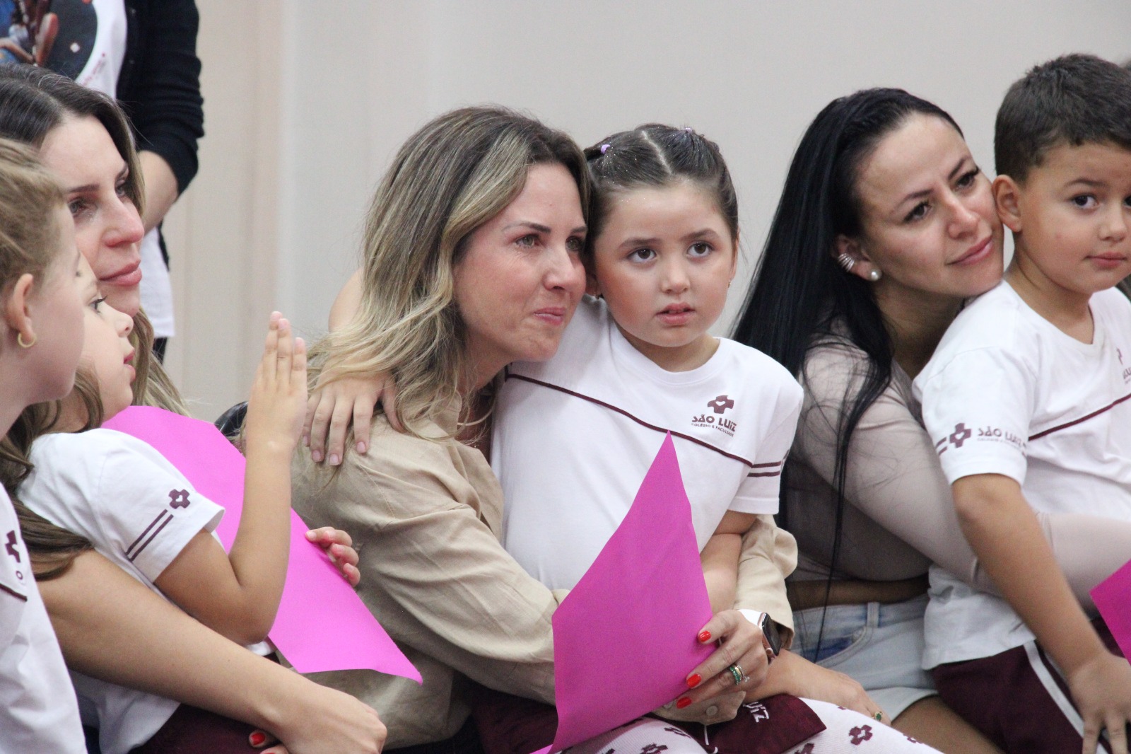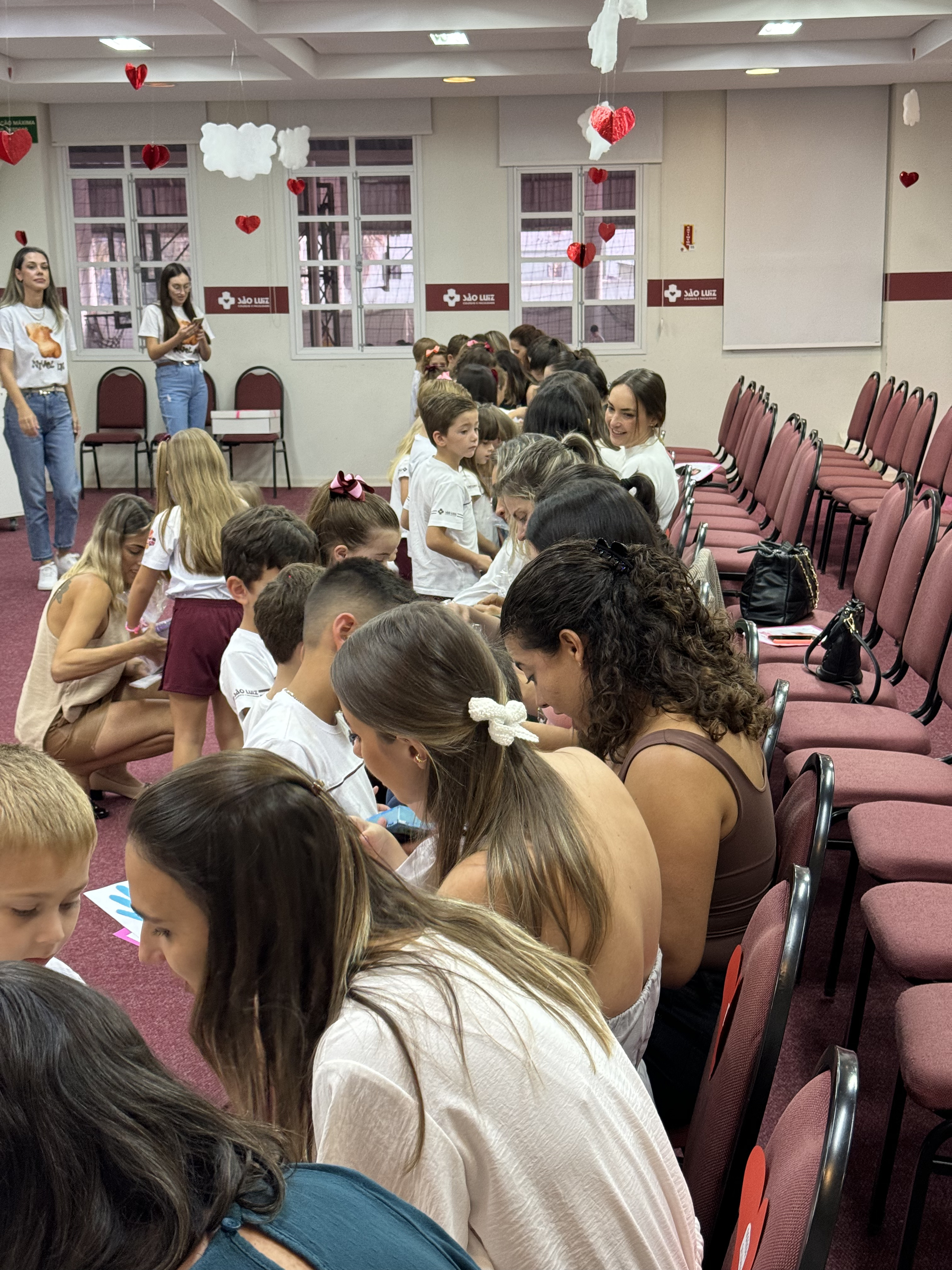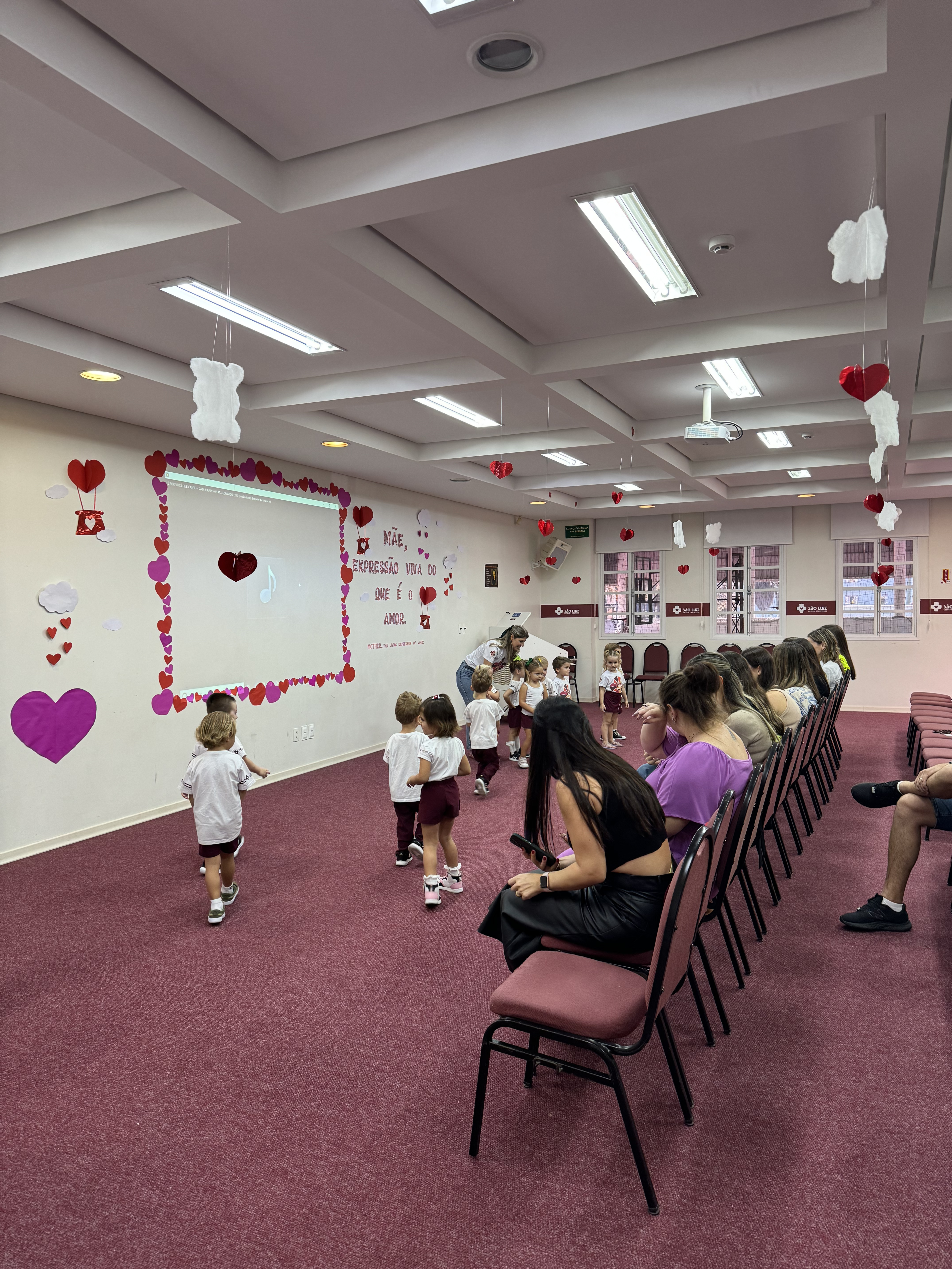 Emoção das mãesQuem se emocionou e gostou muito da homenagem foi a mãe de Isabella, aluna do 3º ano IV, Stella Effting, que aguardava pelo evento, considerado especial por ela. “Todos os anos a homenagem é bem emocionante e bonita, mas esse ano a ‘prô’ Elisabete nos surpreendeu quando contou que nós iríamos falar sobre o que é a maternidade. Foi um momento incrível, muito lindo, todas as mães se emocionaram”, afirmou. Stella ainda compartilhou que a filha Isabella estava muito ansiosa para apresentar à mãe as músicas que ensaiou com os colegas. “Ela estava a todo momento querendo dar ‘spoilers’ de como seria a homenagem, agora está feliz da vida por ter chegado esse dia tão especial e ter dado tudo certo”, falou. Quem também gostou muito da homenagem foi a mamãe da aluna Antonella, do Nível D3, Cíntia dos Santos. “É sempre emocionante e gratificante receber o carinho e amor deles e as professoras sempre conseguem fazer com que eles transmitam esse sentimento por meio da homenagem. Somos muito gratas por poder viver esse momento tão especial e que foi preparado com tanto amor”, frisou. Ela contou que a filha estava ansiosa para a homenagem, mas que após a apresentação ficou muito feliz de compartilhar esse momento com a mãe. “Antes de vir para o colégio hoje, ela me disse que precisava de um tênis que escorrega, mas que não podia contar o motivo porque a apresentação era surpresa. Em muitos momentos ela ensaiava em casa, mas só com o pai porque eu não podia ver antes de hoje. Era uma ansiedade sem fim, porque eles querem apresentar o melhor para nós. Agora ao fim da homenagem, perguntei se ela estava feliz, porque eu estava muito, e ela me respondeu que sim”, compartilhou Cintia.