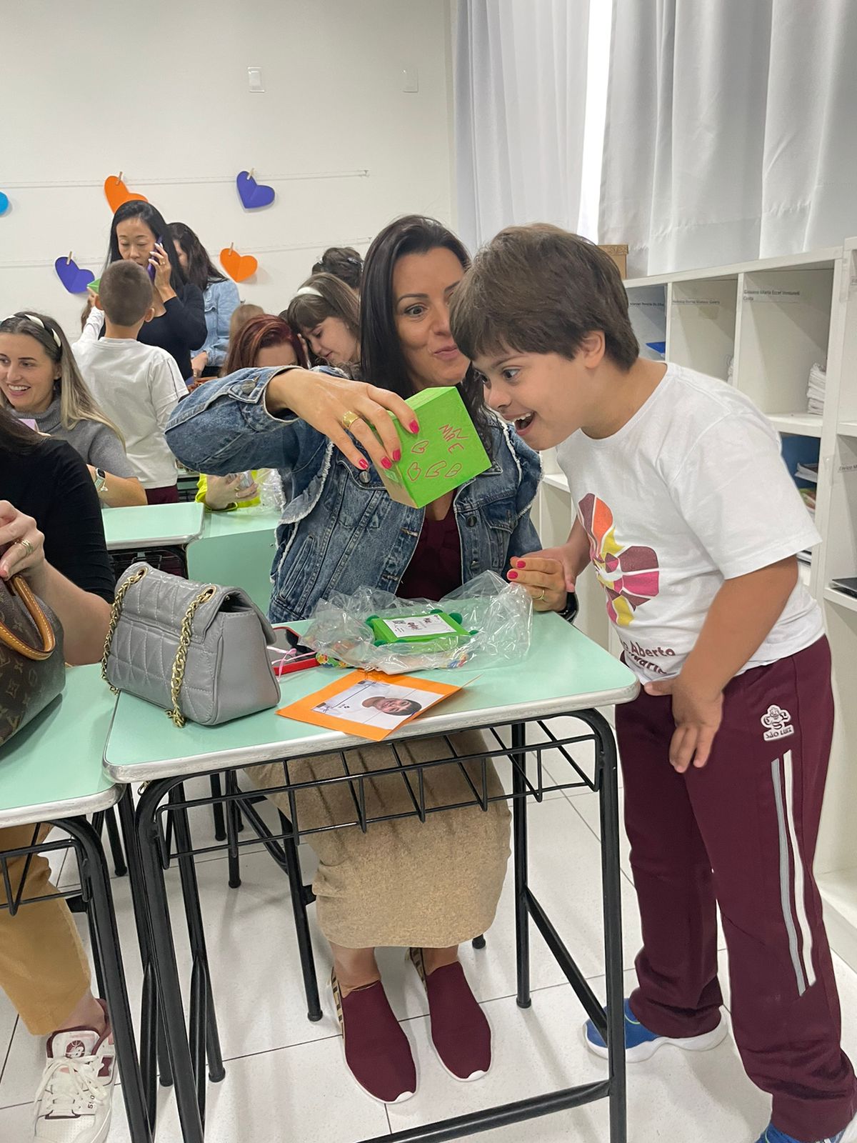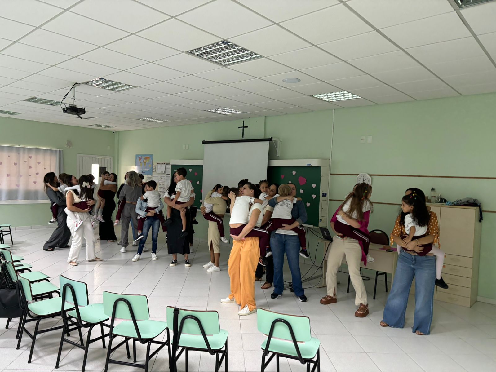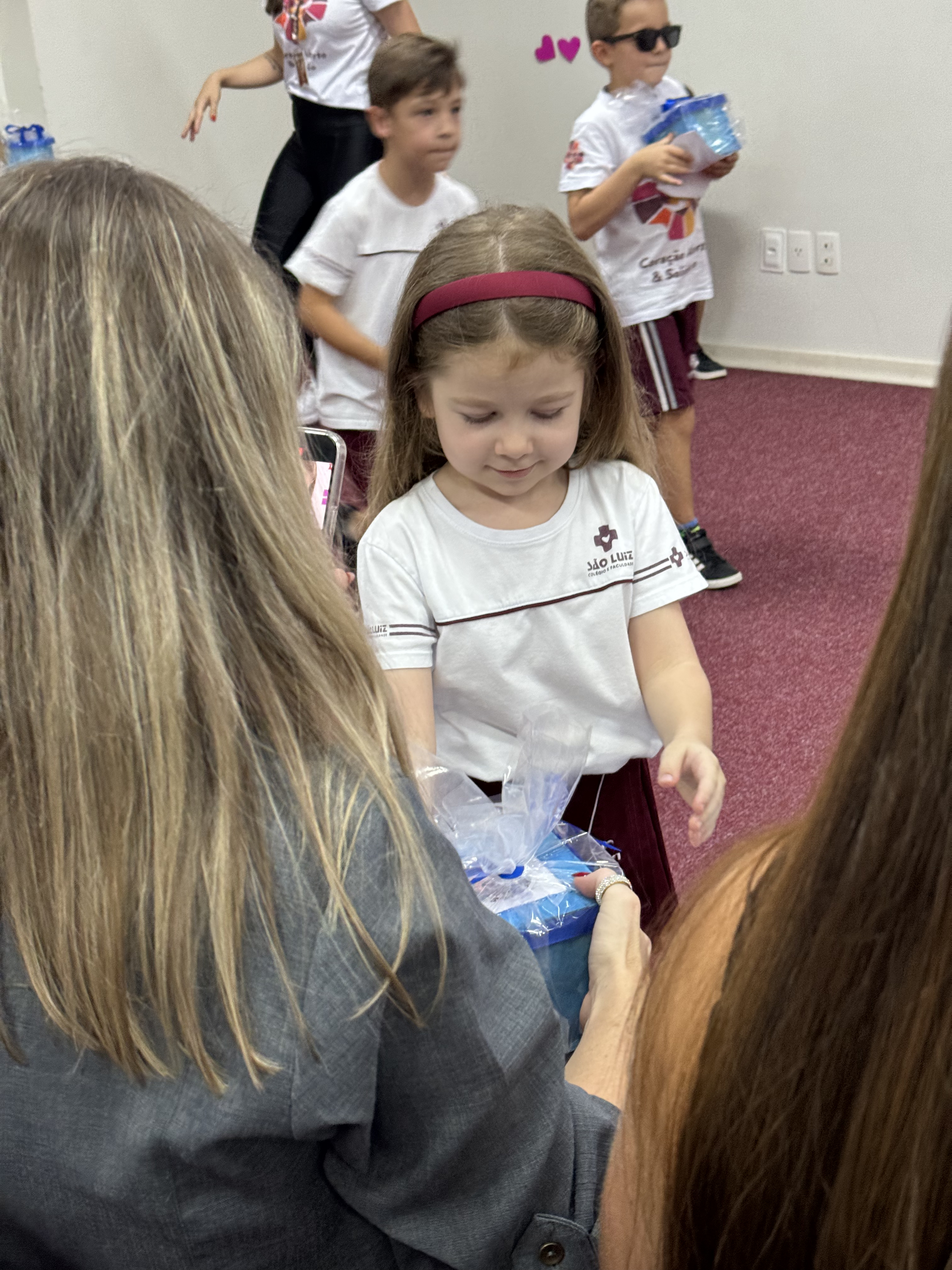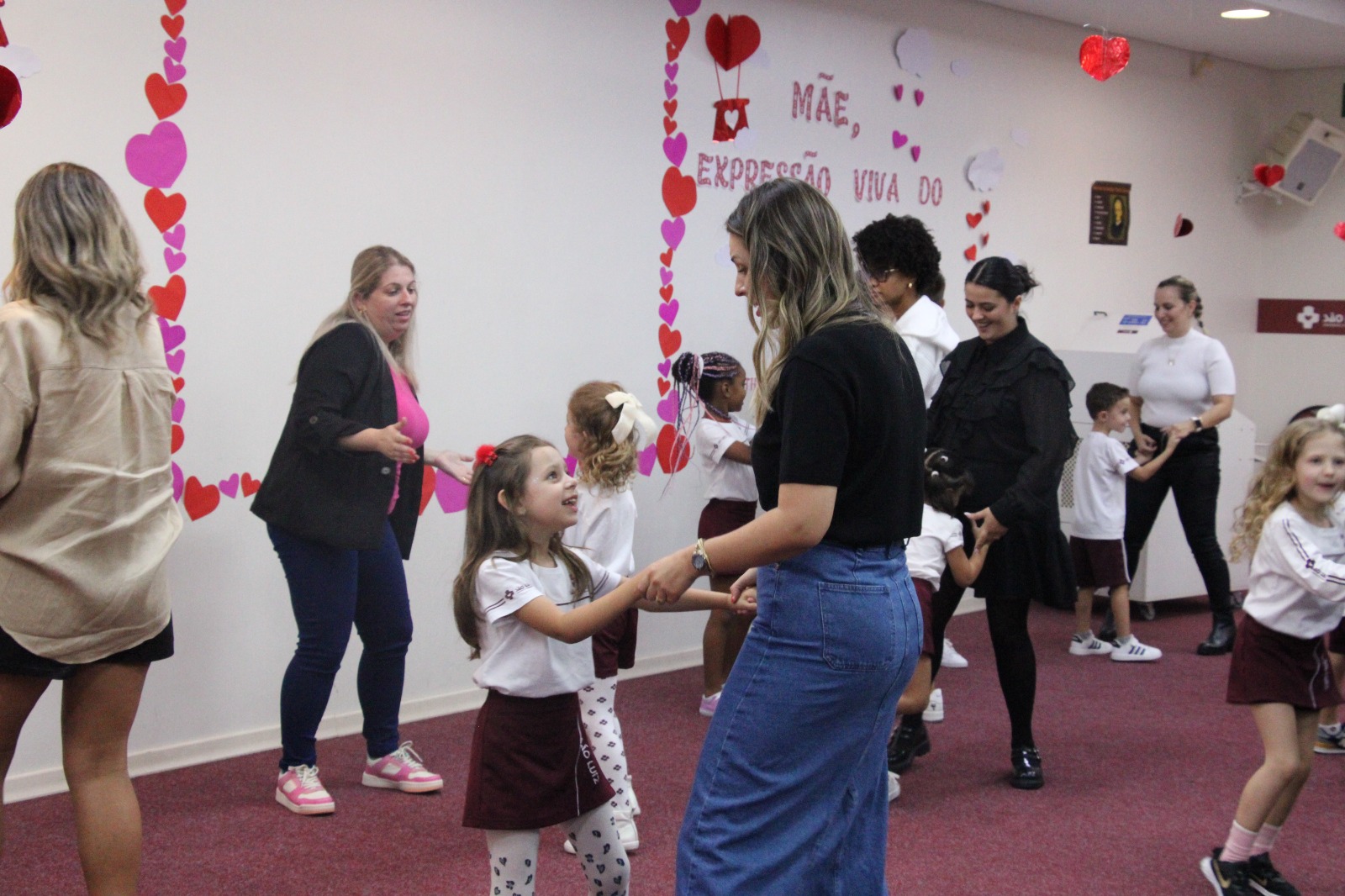 Emoção das mãesQuem se emocionou e gostou muito da homenagem foi a mãe de Isabella, aluna do 3º ano IV, Stella Effting, que aguardava pelo evento, considerado especial por ela. “Todos os anos a homenagem é bem emocionante e bonita, mas esse ano a ‘prô’ Elisabete nos surpreendeu quando contou que nós iríamos falar sobre o que é a maternidade. Foi um momento incrível, muito lindo, todas as mães se emocionaram”, afirmou. Stella ainda compartilhou que a filha Isabella estava muito ansiosa para apresentar à mãe as músicas que ensaiou com os colegas. “Ela estava a todo momento querendo dar ‘spoilers’ de como seria a homenagem, agora está feliz da vida por ter chegado esse dia tão especial e ter dado tudo certo”, falou. Quem também gostou muito da homenagem foi a mamãe da aluna Antonella, do Nível D3, Cíntia dos Santos. “É sempre emocionante e gratificante receber o carinho e amor deles e as professoras sempre conseguem fazer com que eles transmitam esse sentimento por meio da homenagem. Somos muito gratas por poder viver esse momento tão especial e que foi preparado com tanto amor”, frisou. Ela contou que a filha estava ansiosa para a homenagem, mas que após a apresentação ficou muito feliz de compartilhar esse momento com a mãe. “Antes de vir para o colégio hoje, ela me disse que precisava de um tênis que escorrega, mas que não podia contar o motivo porque a apresentação era surpresa. Em muitos momentos ela ensaiava em casa, mas só com o pai porque eu não podia ver antes de hoje. Era uma ansiedade sem fim, porque eles querem apresentar o melhor para nós. Agora ao fim da homenagem, perguntei se ela estava feliz, porque eu estava muito, e ela me respondeu que sim”, compartilhou Cintia.
