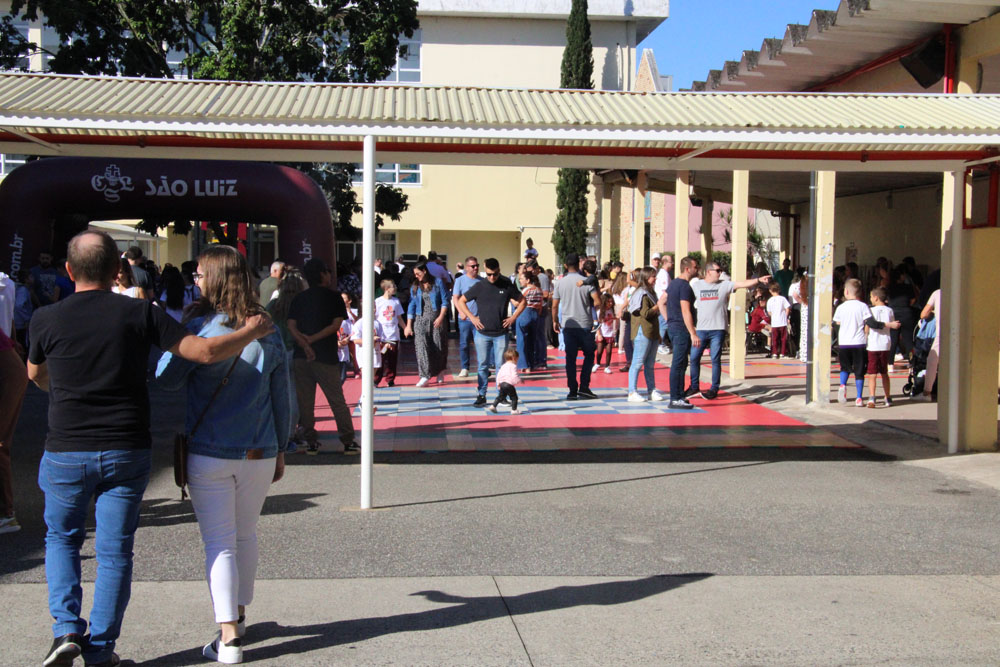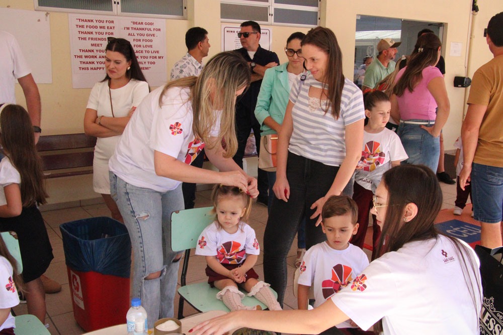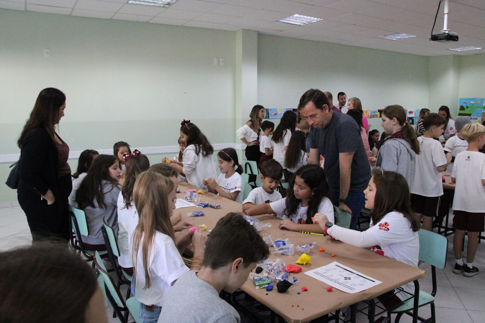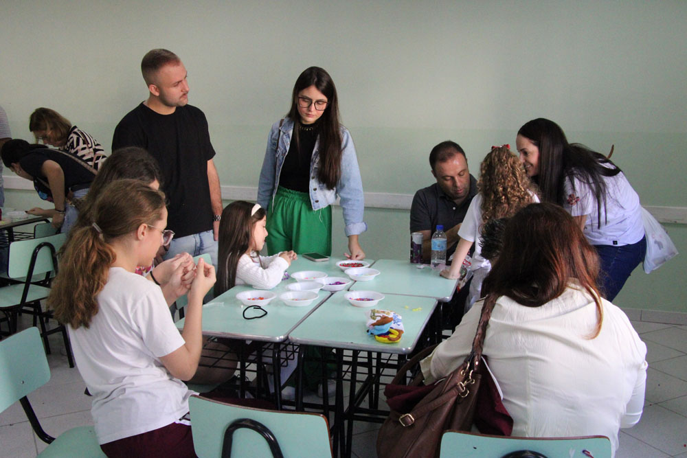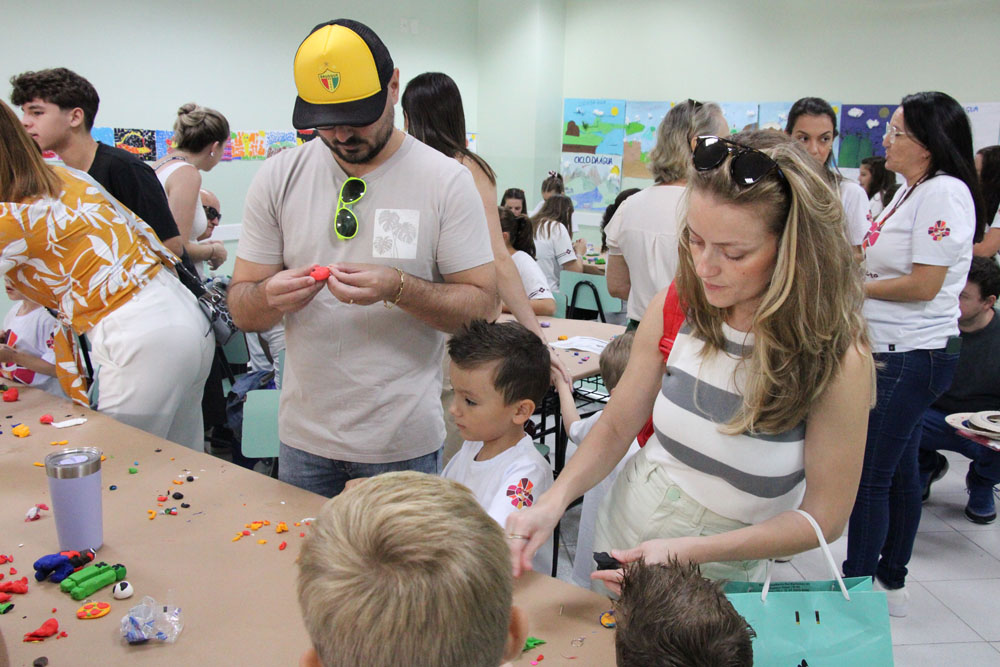 Atividades para toda a famíliaO evento englobou desde a Educação Infantil até o Ensino Médio do colégio. Através de apresentações, atividades e oficinas os alunos e familiares tiveram uma manhã marcada por sorrisos, alegria e muita diversão. A coordenadora da Educação Infantil, Sandra Cristini da Silva Ristow, contou que neste ano a Educação Infantil realizou oficinas relacionadas com os animais. “Promovemos a oficina de almofadas de animais e a troca de bichinhos de pelúcia. Elas trazem a temática do nosso projeto de acolhida, que foi baseado na ODS 15, que fala sobre a preservação dos animais e da fauna”, falou. O Ensino Fundamental I também apresentou oficinas relacionadas ao conteúdo trabalhado em sala de aula. Segundo a coordenadora, Kátia Meri Fantini Coelho, a inspiração foi o livro “Pedro e Tina”. “A obra foi trabalhada no início do ano com os alunos, e fala muito sobre valores e respeito. Foram realizadas algumas atividades com as crianças e achamos muito interessante trazê-las para o dia de hoje, para serem promovidas com as famílias também”, afirmou Kátia. Além das oficinas, o evento contou com apresentações sobre os intercâmbios oferecidos pelo colégio, atividades esportivas nas quadras e música em família no deck.