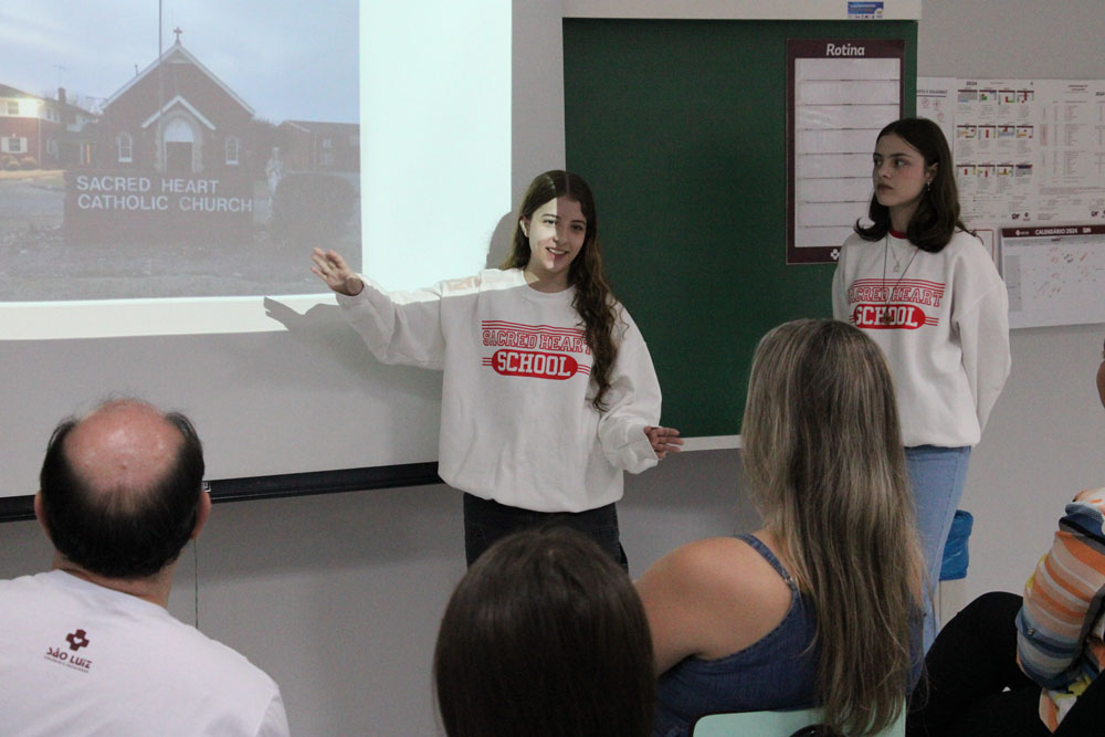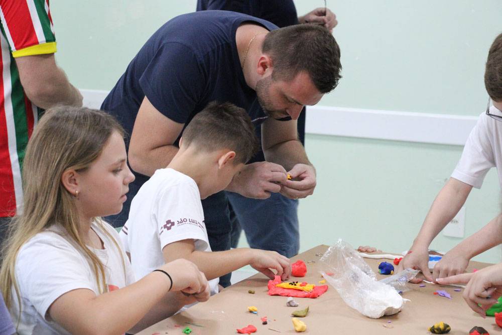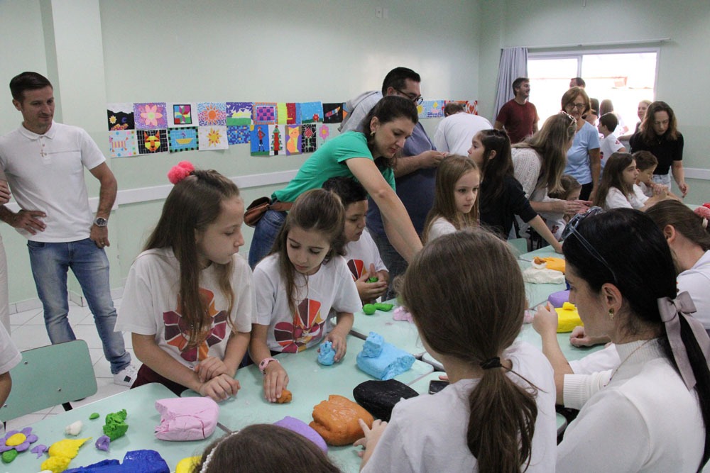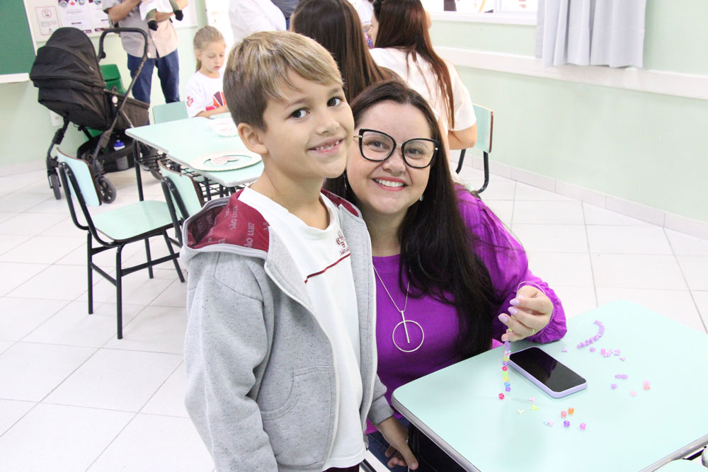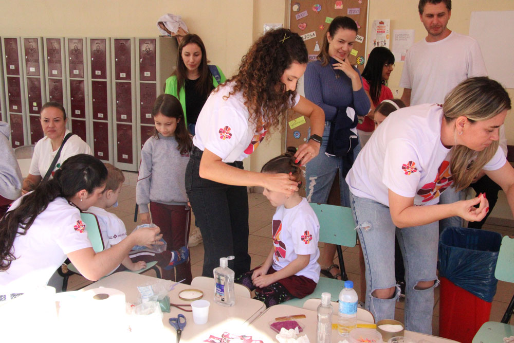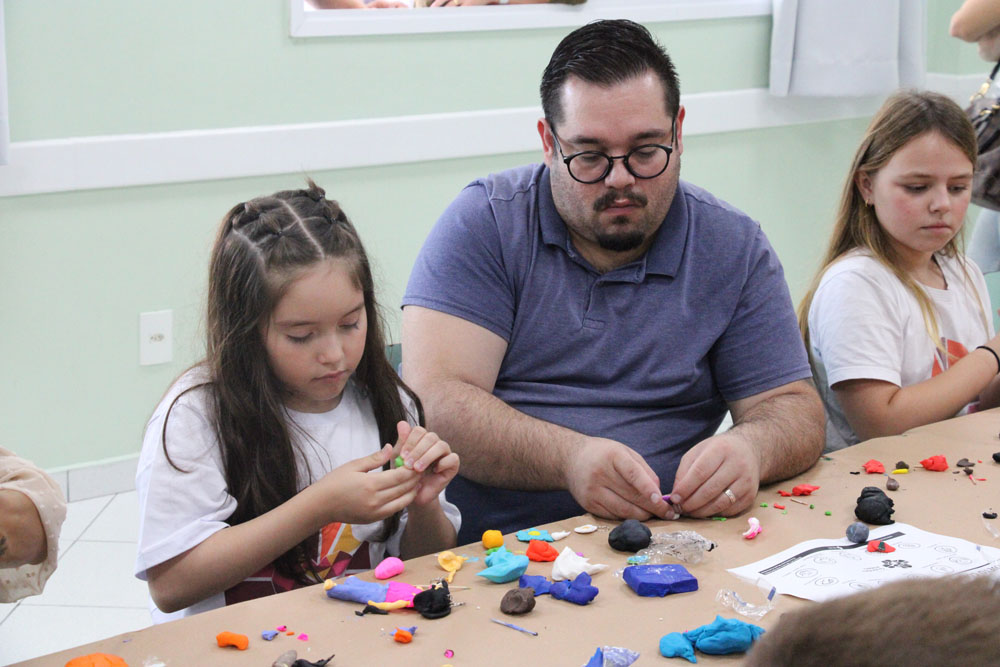 Atividades para toda a famíliaO evento englobou desde a Educação Infantil até o Ensino Médio do colégio. Através de apresentações, atividades e oficinas os alunos e familiares tiveram uma manhã marcada por sorrisos, alegria e muita diversão. A coordenadora da Educação Infantil, Sandra Cristini da Silva Ristow, contou que neste ano a Educação Infantil realizou oficinas relacionadas com os animais. “Promovemos a oficina de almofadas de animais e a troca de bichinhos de pelúcia. Elas trazem a temática do nosso projeto de acolhida, que foi baseado na ODS 15, que fala sobre a preservação dos animais e da fauna”, falou. O Ensino Fundamental I também apresentou oficinas relacionadas ao conteúdo trabalhado em sala de aula. Segundo a coordenadora, Kátia Meri Fantini Coelho, a inspiração foi o livro “Pedro e Tina”. “A obra foi trabalhada no início do ano com os alunos, e fala muito sobre valores e respeito. Foram realizadas algumas atividades com as crianças e achamos muito interessante trazê-las para o dia de hoje, para serem promovidas com as famílias também”, afirmou Kátia. Além das oficinas, o evento contou com apresentações sobre os intercâmbios oferecidos pelo colégio, atividades esportivas nas quadras e música em família no deck.