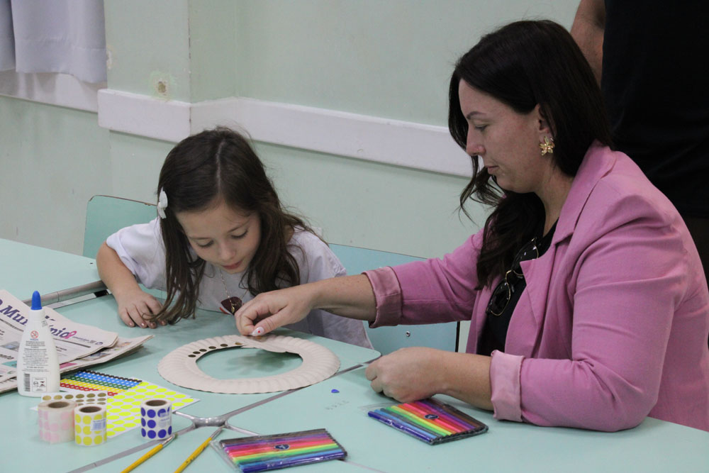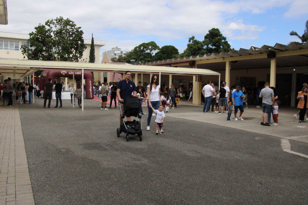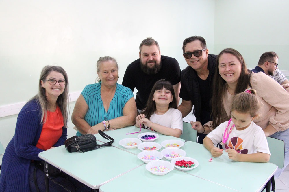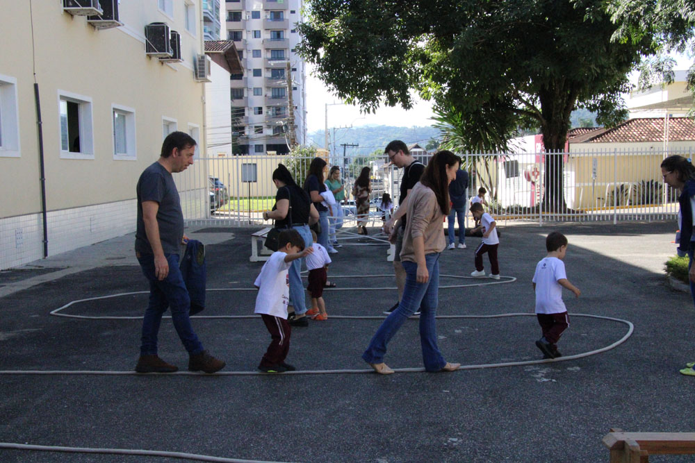 Famílias presentesEntre as famílias presentes, estava a de Valentina Kickov Dognini, estudante do 3º ano do Ensino Fundamental I. A mãe, Michelli Kickov da Silva Dognini contou que esta é a primeira vez que os avós conseguem participar do evento. “Esse é um momento muito esperado pela Valentina, o pai dela e eu participamos desde o primeiro ano, quando ela entrou no colégio. E hoje foi a primeira vez que os avós conseguiram estar presentes, porque eles não moram em Brusque. Então está sendo uma edição mais especial ainda para nós”, frisou. Ela ainda falou que a família considera a iniciativa muito importante e se sente privilegiada de poder compartilhar esse momento com os avós da filha. “Ter esse contato, estar dentro do colégio, conhecer melhor os professores e o ambiente que ela frequenta todos os dias é muito importante, além de ter o privilégio de dividir esse momento com os avôs da Valentina, o que tornou tudo mais especial”, comentou. Quem também marcou presença foi a mamãe, Adriana Schweigert, e a oma (avó), Isolete Schweigert, da pequena Allana Schweigert Pereira, da turma do 2º ano. “É maravilhoso esse momento que o colégio nos proporciona. A Allana perguntava todo dia se já era o ‘Dia da Família na Escola’. Hoje ela acordou cedo e muito empolgada”, contou a mãe. A oma Isolete também considerou o evento como muito importante e falou que a manhã na companhia da neta foi muito divertida e especial. “Sempre trago ela para o colégio nas segundas-feiras e em uma delas ela me convidou para participar do evento de hoje. Falei que ia ver se conseguiria e quando disse que sim ela ficou muito feliz. Hoje quando chegamos ela já me puxou pelo braço e queria me mostrar tudo, participar das atividades. Foi muito divertido ter esse momento”, finalizou.