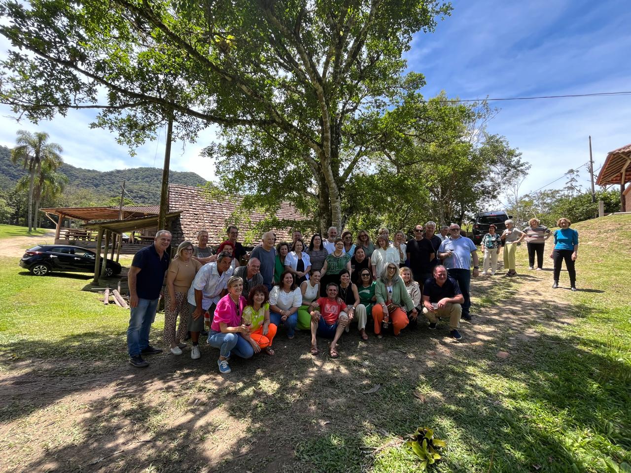 Alunos que fizeram parte da turma de 1974 do Colégio São Luiz se reuniram no sábado, 26 de outubro, para celebrar os 50 anos de formatura no ginásio. O encontro foi realizado no Sítio Vó Rosa, no bairro Limeira Alta, em Brusque, e foi marcado por muitas lembranças e emoção.Ao todo, 32 ex-alunos participaram do evento, que teve ainda a presença de oito professores da época: Augustinho Tamasia; Magda Bork; Silvana Santos; Neuza Cadore, Ivone Malossi; Maria Helena Dalago; Clarice Zucco e Elizabeth Cavalca.Integrante da turma, a empresária Gisela Gracher Stieven conta que os ex-alunos já realizaram diversos encontros ao longo dos anos. Em 2014, quando completaram 40 anos da formatura, foi realizado um evento maior no Restaurante Vô João, no bairro Águas Claras, e iniciado o planejamento para o grande encontro dos 50 anos, em 2024.“Foi muito gostoso reencontrar os amigos. Muitos vieram de longe: São Paulo, Curitiba, só para rever e confraternizar. Poder lembrar as histórias vivenciadas juntos há tantos anos, em outros tempos, foi muito bom. Revivemos um tempo que ficou para trás, mas não saiu de nossas memórias”, diz.Durante o encontro, muitos momentos marcantes foram relembrados pelo grupo. “Recordamos de como eram as provas, como tínhamos medo de escutar: ‘guardem todo o material, peguem uma folha em branco que vamos fazer uma prova’. Como tínhamos respeito pelos professores, pelo colégio. Foram muitas lembranças especiais. O colégio realmente era uma extensão de nossas casas”.