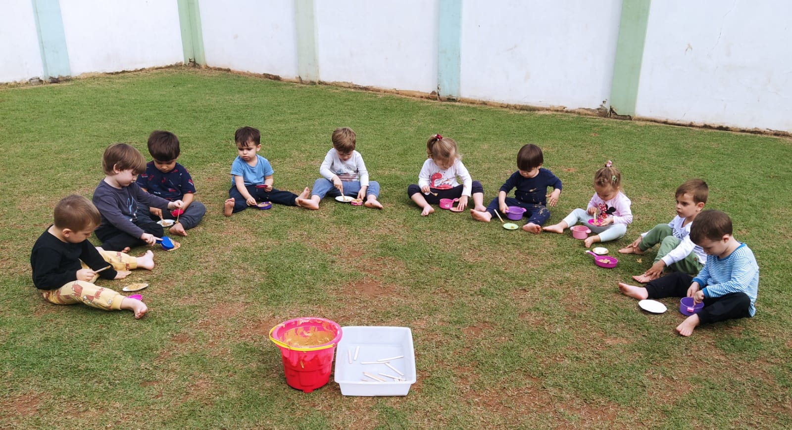 Na última semana, as crianças do Nível A realizaram a atividade “Faz de conta nos espaços da casa: A cozinha e as comidinhas”, referente à unidade 5 do material didático. A professora, Carla Rubia de Souza Pereira, explica que nessa proposta, as crianças foram incentivadas a se envolverem com o brincar simbólico da preparação de alimentos. “As crianças se divertiram muito brincando e criando com elementos naturais, como lama e argila. Elas usaram a lama para fazer comidinhas imaginárias e a argila para moldar diferentes formas. A atividade foi uma verdadeira festa de criatividade, na qual cada aluno inventava algo novo e se divertia com o que a natureza oferece. Todos adoraram a chance de brincar e explorar, transformando simples materiais em grandes aventuras”, contou Carla. Segundo a professora, brincar na lama e estimular a imaginação tem um impacto significativo no desenvolvimento das crianças, tanto em termos de habilidades práticas, quanto de competências sociais e emocionais. “As crianças tiveram a oportunidade de desenvolver suas habilidades manuais ao manipular lama e argila. Essa atividade permitiu a prática e o aperfeiçoamento de ações como moldar, espremer e modelar, o que é fundamental para o desenvolvimento da coordenação motora fina. Além disso, o ato de desenhar, pintar e rasgar, presentes nessa atividade, ajudaram a aprimorar o controle motor. Esse tipo de brincadeira é essencial para a expressão criativa e o desenvolvimento da imaginação, proporcionando um espaço para que os alunos se envolvam em jogos simbólicos e intercâmbios orais. Isso é necessário para o desenvolvimento da capacidade de se comunicar e de se engajar em projetos colaborativos”, finalizou.