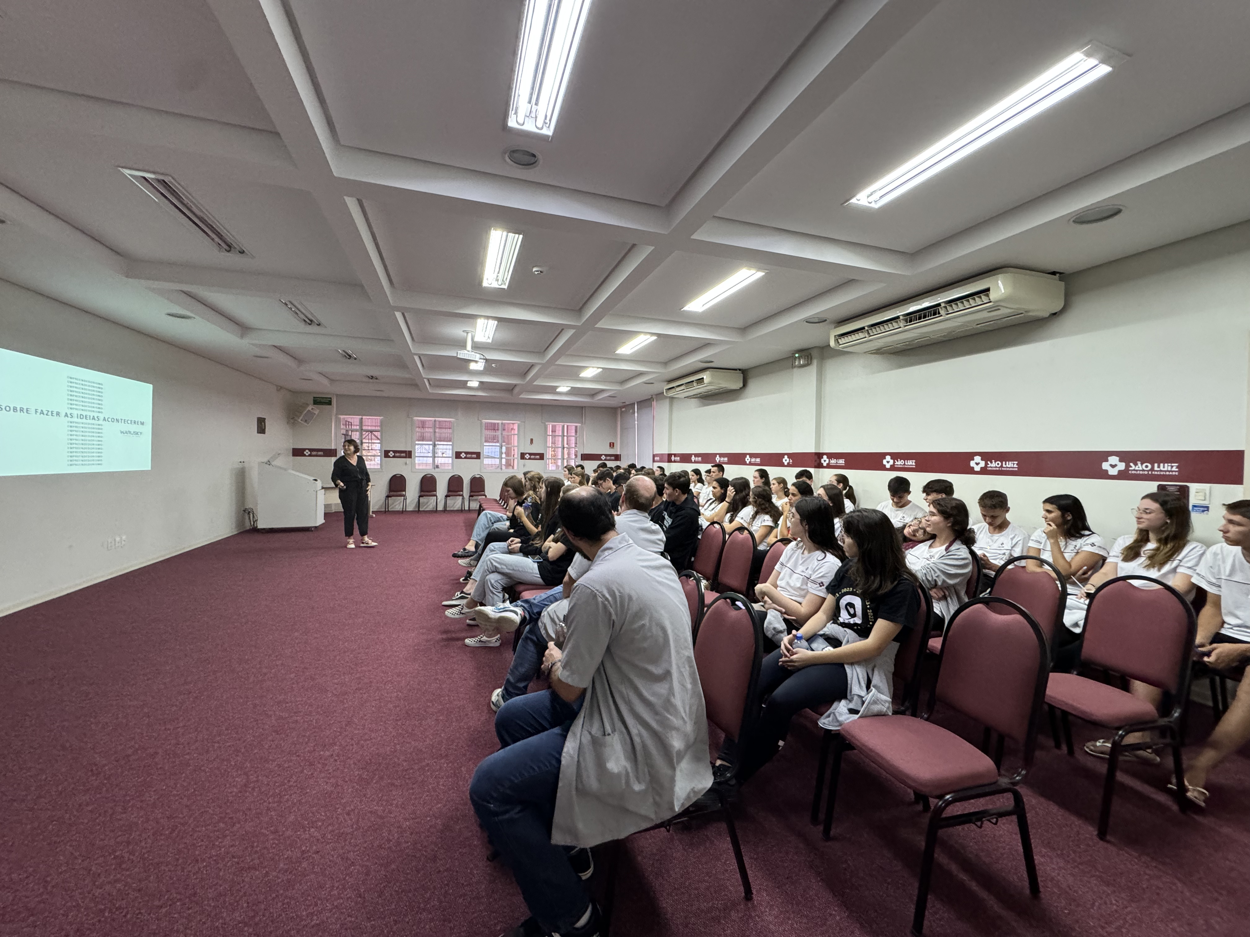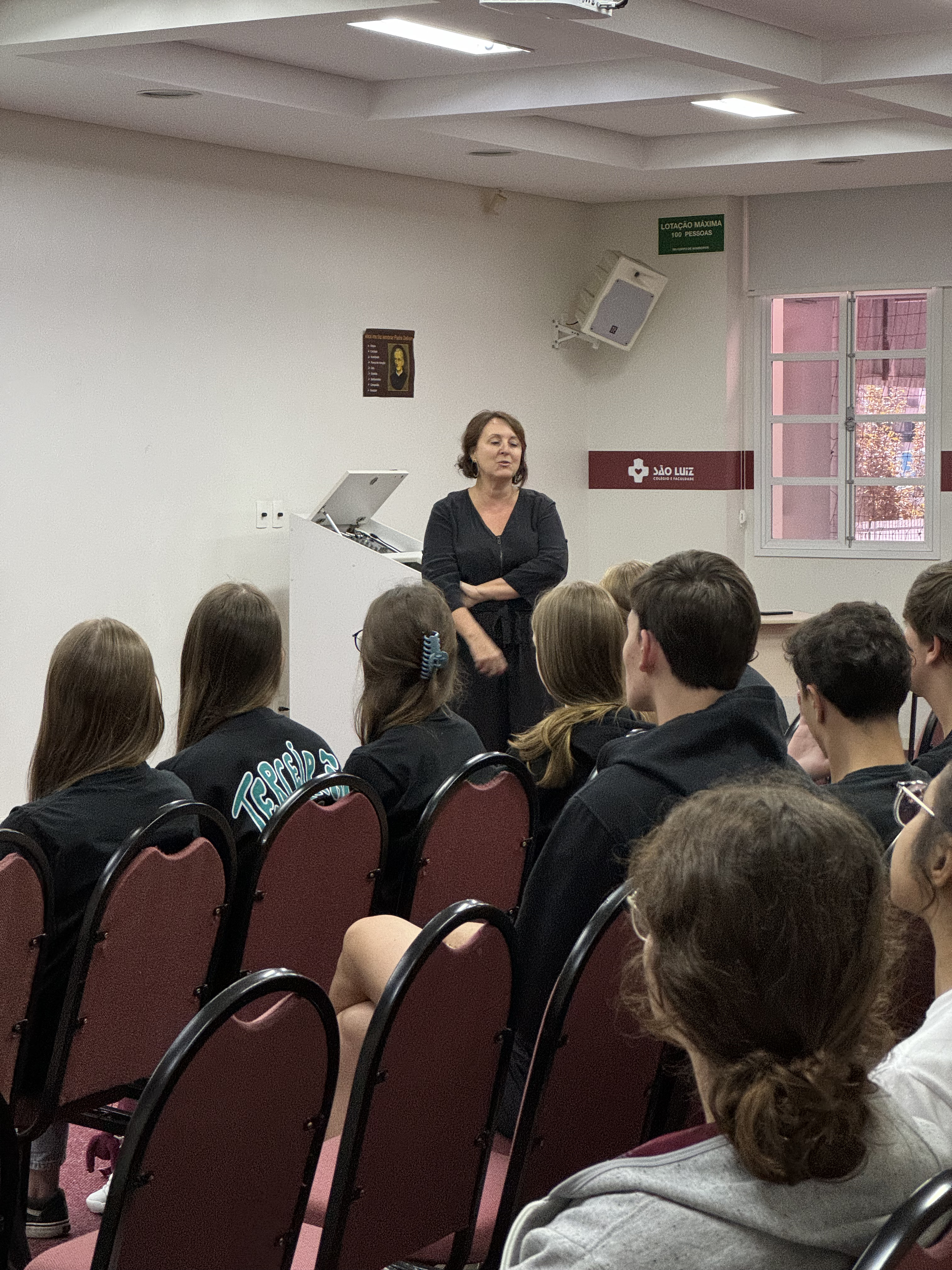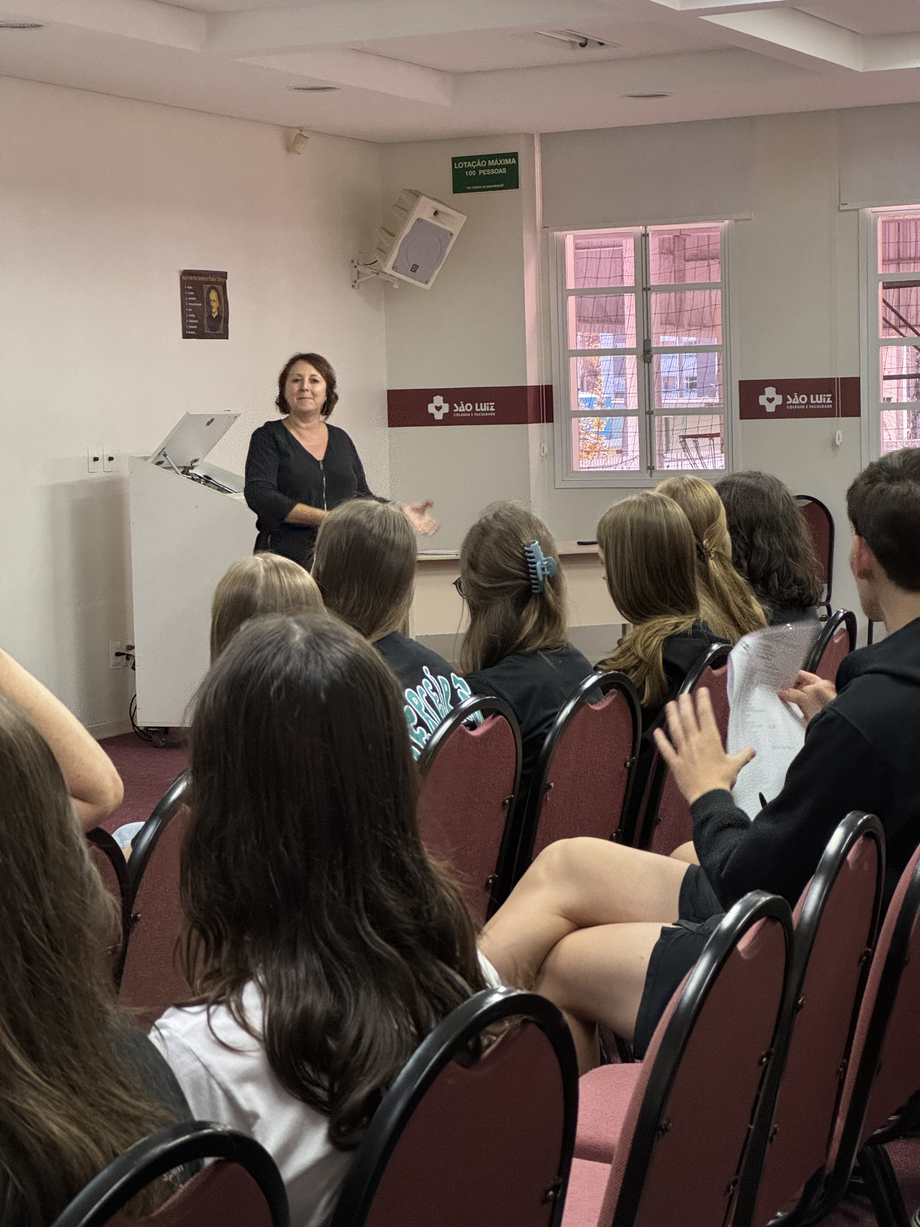 O Colégio São Luiz realizou na última semana a Feira das Profissões. Os alunos do Ensino Médio da instituição acompanharam uma série de palestras com profissionais das mais diversas áreas de atuação, com o intuito de auxiliar os estudantes na escolha da carreira profissional. Conforme explica a coordenadora do Ensino Médio, Cíntia Cardoso, o evento já acontece há muitos anos e é de grande importância no processo de escolha da carreira dos estudantes. “Tradicionalmente ela era realizada no segundo semestre letivo, entretanto neste ano trouxemos para o primeiro semestre para que tenhamos tempo de realizar outras ações mais direcionadas que contribuam com os estudantes. O saldo da feira é sempre muito positivo”, ressaltou Cíntia. Ela frisou que os palestrantes são sempre muito assertivos e conseguem apresentar as principais características da profissão. “Fazemos questão de pedir aos palestrantes para falarem sobre as alegrias e também os desafios da sua área, para que os jovens possam julgar os ônus e bônus da futura profissão”, afirmou. Ainda, segundo a coordenadora, o evento está em conformidade com um dos princípios do colégio: de orientar os alunos para os desafios da vida adulta. “Acredito que a função do colégio, enquanto espaço educador, especialmente no último ciclo da educação básica, que é o ensino médio, seja para além do desenvolvimento de competências, ou seja, a instrumentalização de informações mínimas que amparem os jovens para os primeiros desafios da vida adulta, como por exemplo a escolha por uma profissão”, ressaltou Cíntia. O professor de Biologia, Leonardo Geisel Santos, compartilha da mesma opinião. Para ele, o momento foi muito enriquecedor e esclareceu as dúvidas dos alunos em relação às profissões que desejam seguir. “Nossos alunos participam com entusiasmo e muita curiosidade, interagindo sempre com os profissionais. É um momento único em que eles podem pensar na escolha e no futuro profissional que logo estarão inseridos”, comentou.