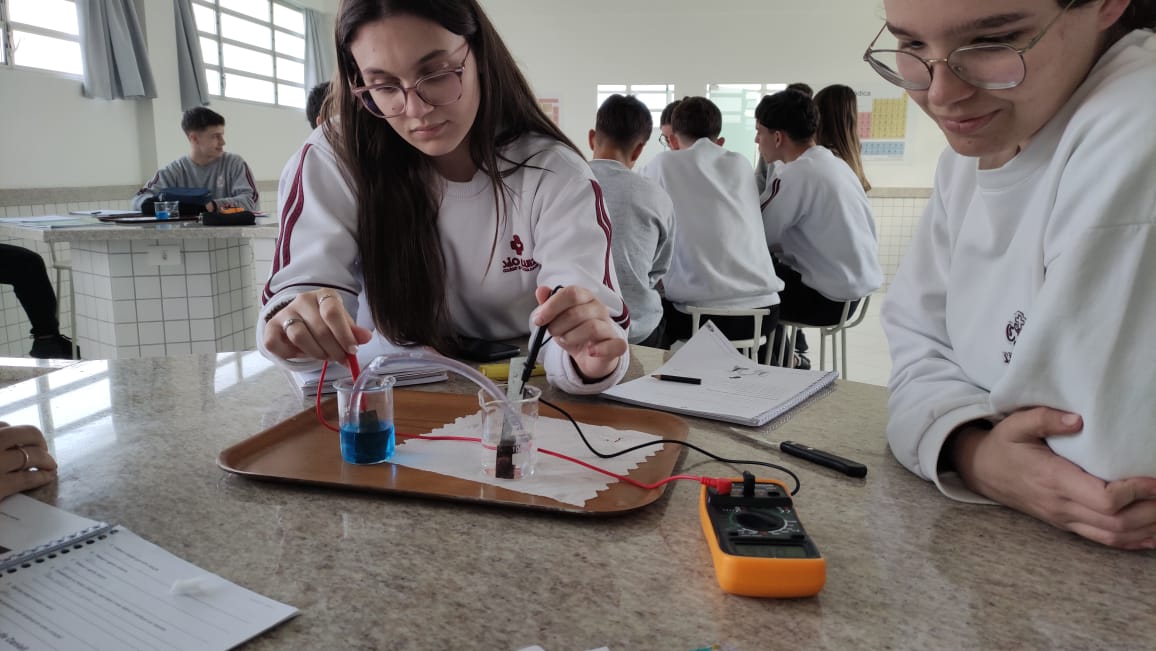 Conforme explica a professora, Deise Amorim Dognini, a atividade é referente ao assunto de eletrólise. “Os estudantes foram orientados a seguir o procedimento da apostila. A atividade, teve ênfase no trabalho em equipe, na capacidade de seguir as marchas analíticas e, principalmente, os procedimentos de segurança”, contou a Deise.