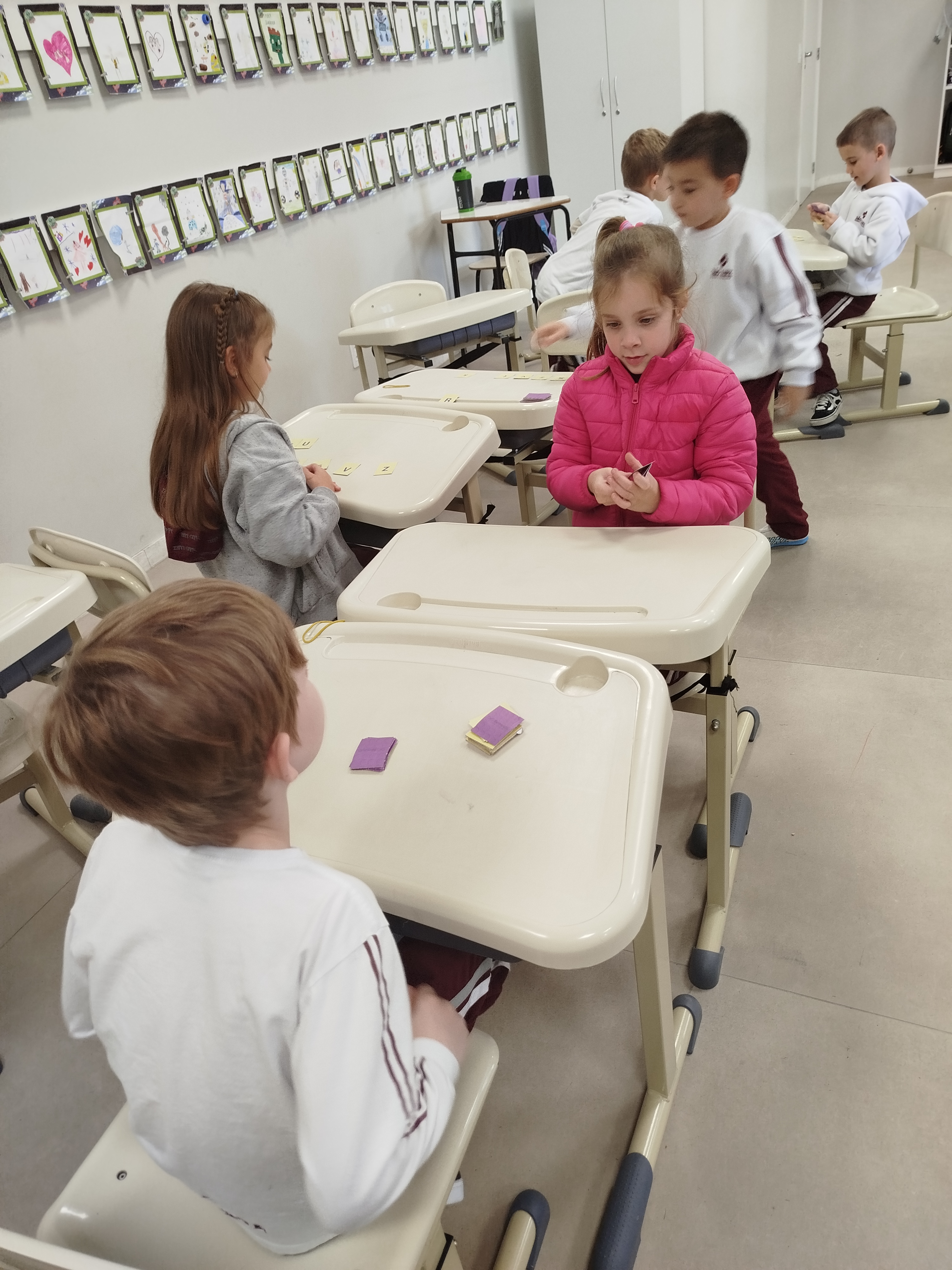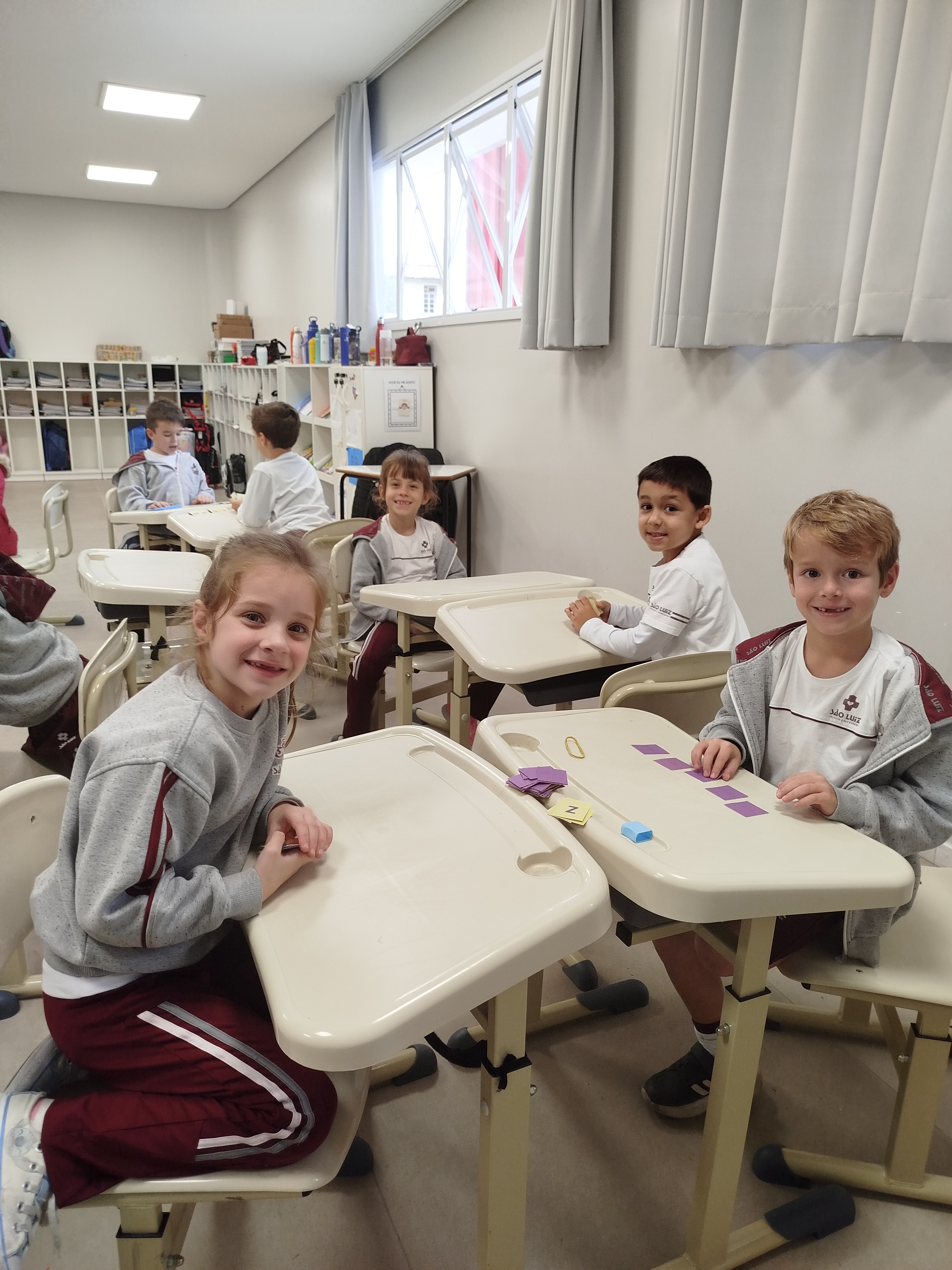Durante as aulas de Língua Portuguesa do dia 13 de junho, os alunos do 1º ano III realizaram a atividade “Jogo das Letras Maiúsculas e Minúsculas”. A brincadeira tem o intuito de habituar as crianças com os diferentes tipos de letras (maiúsculas e minúsculas) e auxiliar na identificação do alfabeto. Além disso, a proposta ainda desenvolve habilidades de raciocínio lógico e socialização.A professora, Bruna Jaqueline Riffel Maestri, explica que a atividade conta com diversas fichas, com todas as letras do alfabeto. Para jogar, as crianças formaram duplas ou trios, embaralharam as cartas e distribuíram seis para cada participante. Em seguida, semelhante a um jogo de baralho, era preciso retirar uma ficha do monte e observar a combinação com as cartas que havia em mãos. Quem formasse três pares primeiro era o vencedor da rodada!“O jogo foi um sucesso entre as crianças, que adoram este tipo de atividade lúdica, que une a brincadeira com o aprendizado. Ao jogar, os alunos foram estimulados a identificar e relacionar as letras maiúsculas com as letras minúsculas, tendo em vista que estão em fase de alfabetização e agora descobrem essa relação. Além disso, os jogos desenvolvem habilidades de socialização, motivação, raciocínio lógico e tomada de decisões”, disse a professora.
