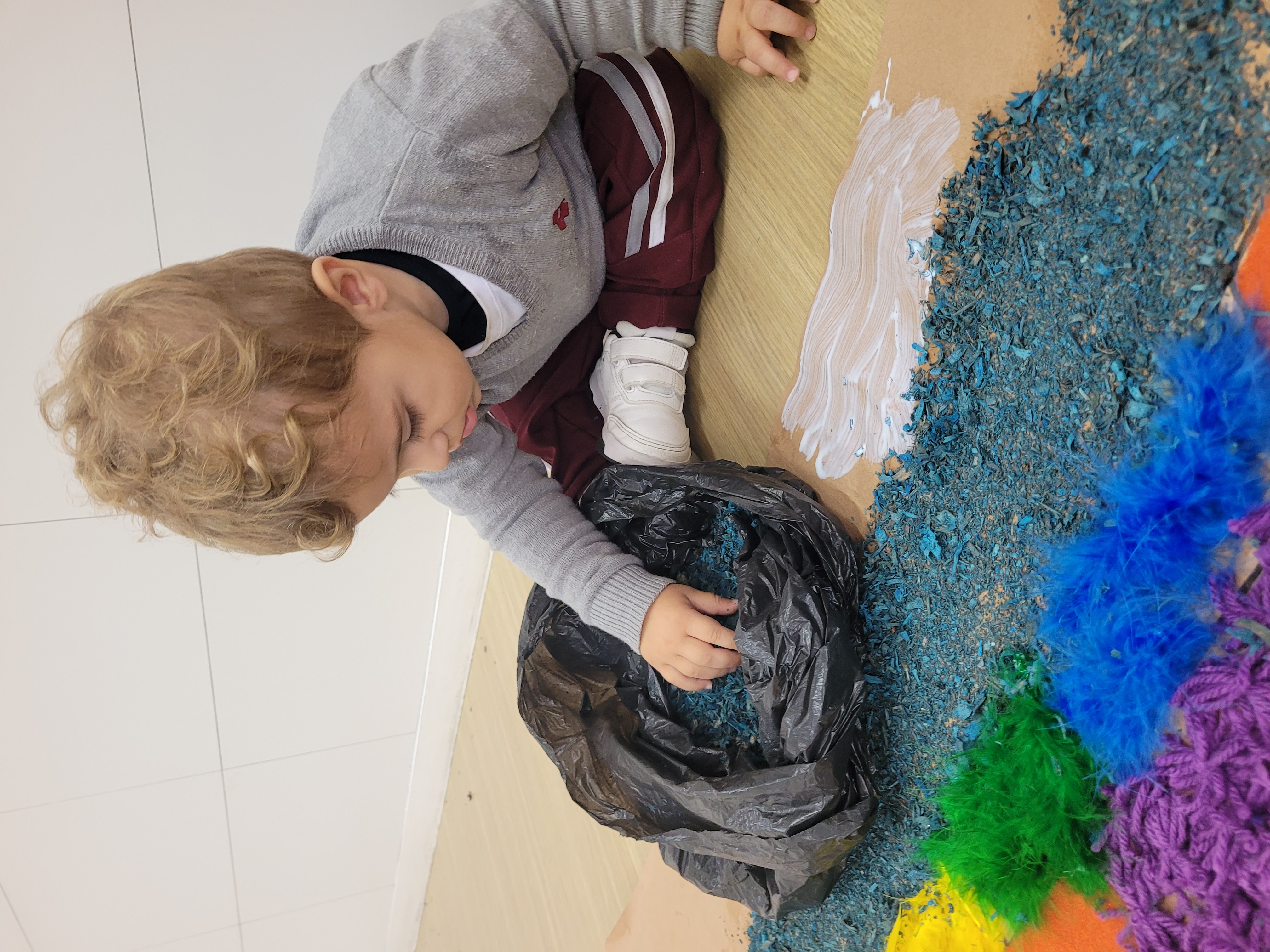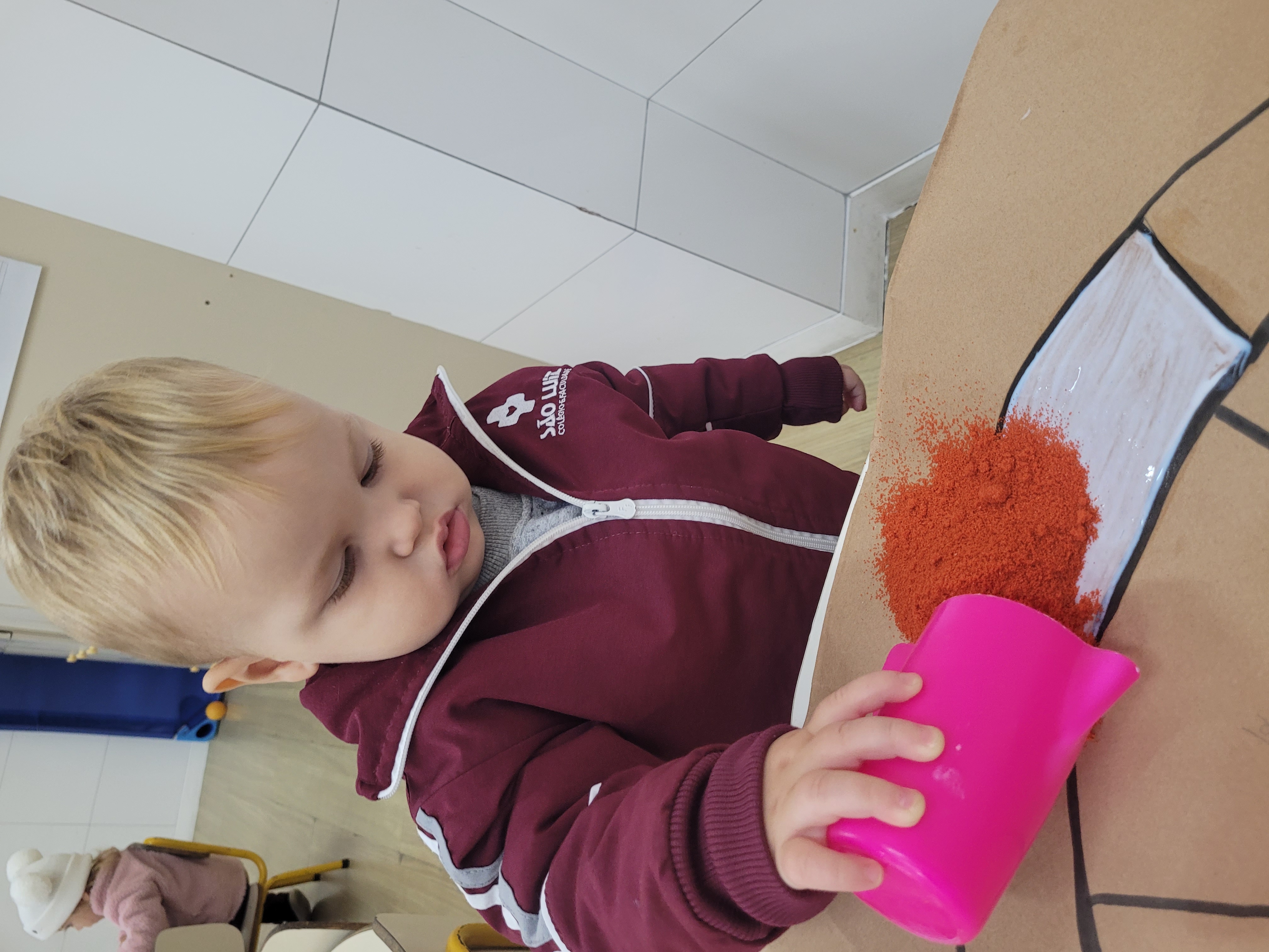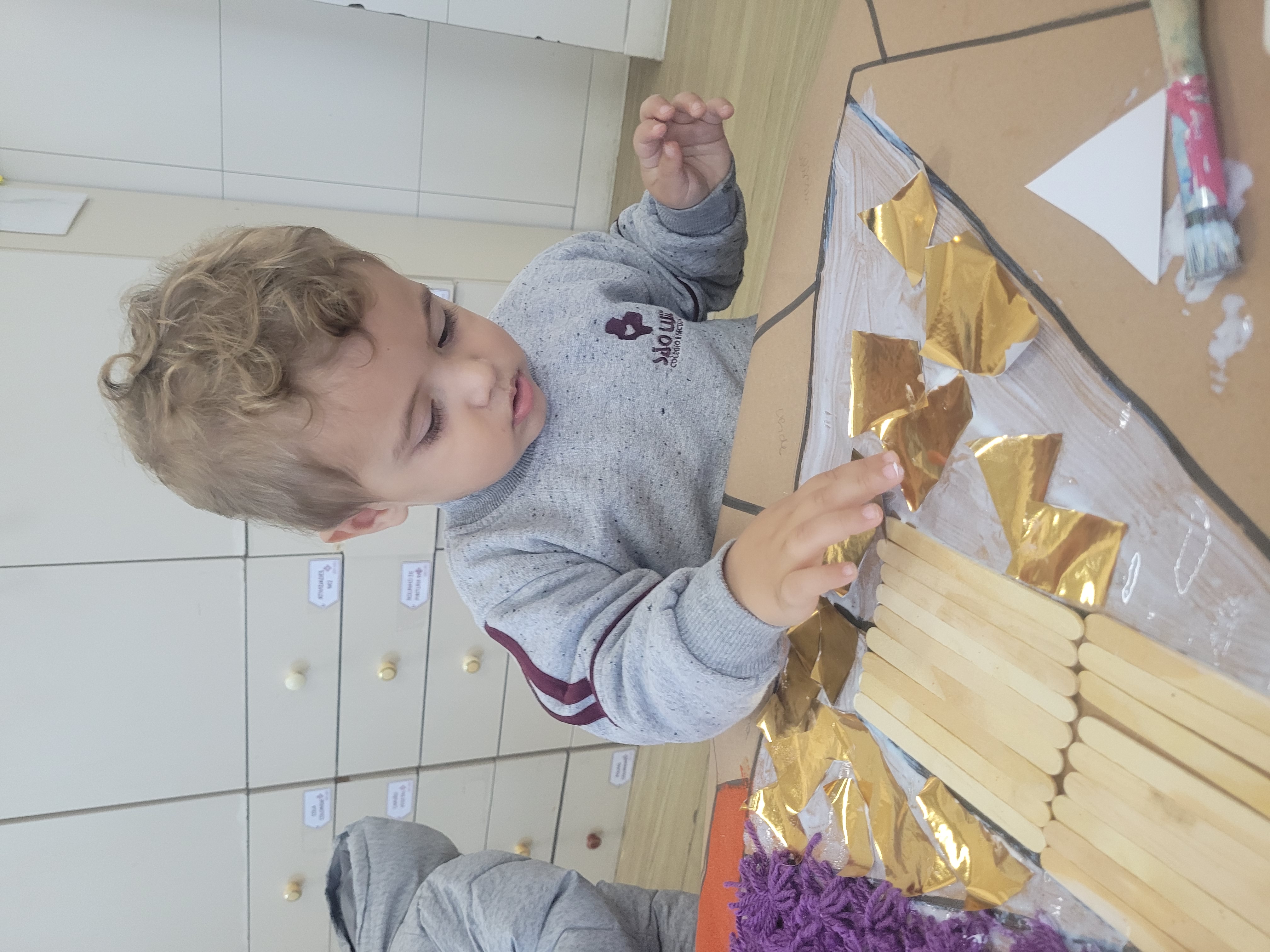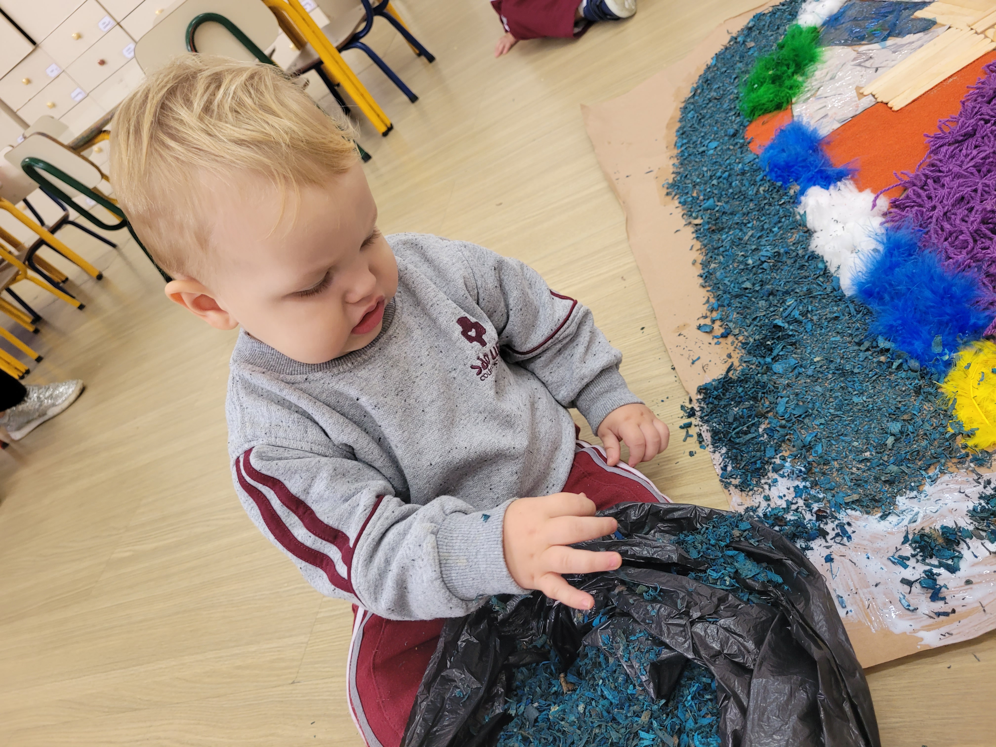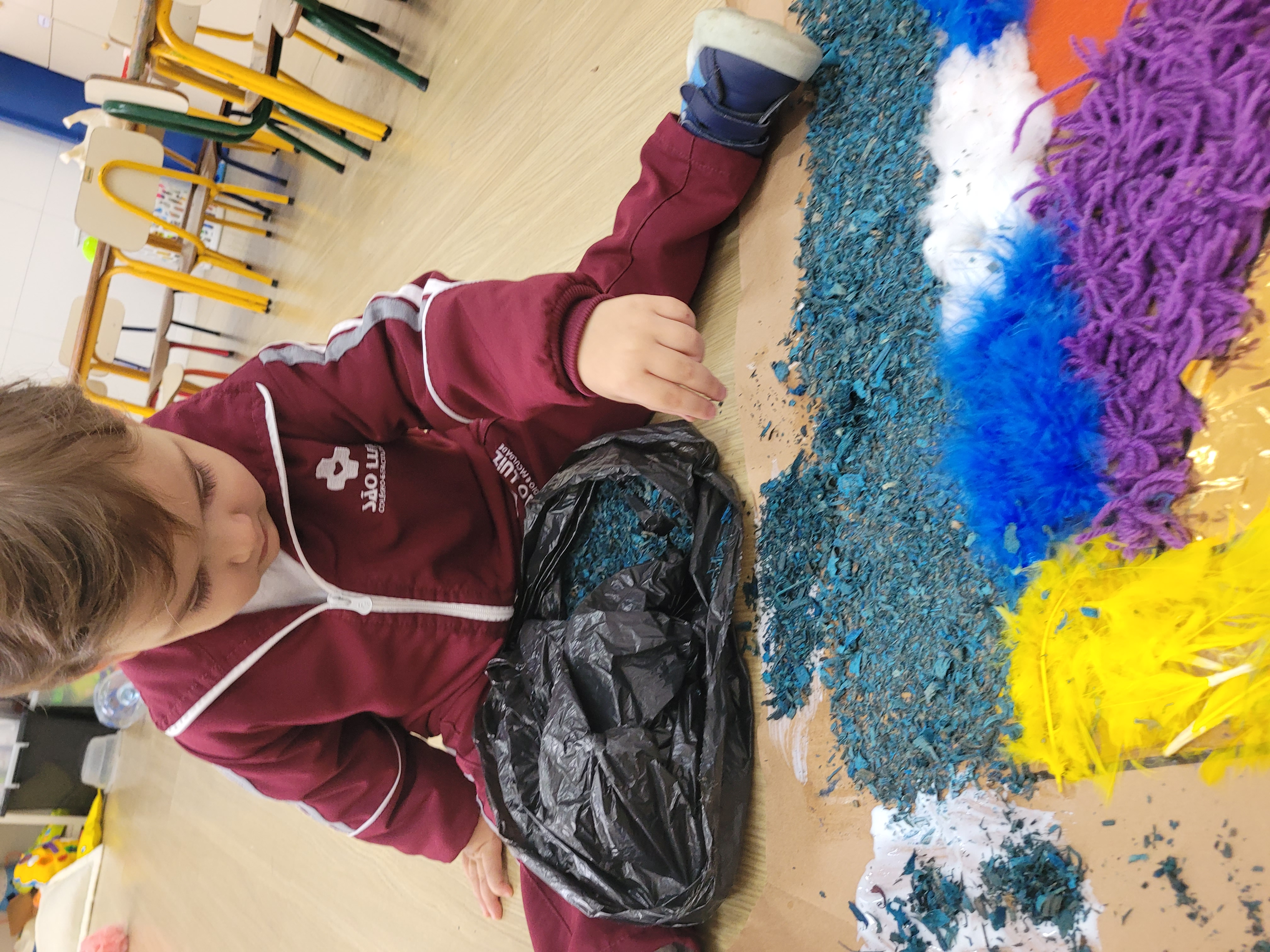 Os alunos do Maternal 2 participaram durante uma semana, da confecção do tapete de Corpus Christi. Todos os dias, as crianças participaram de uma etapa da construção do tapete, com vários materiais de texturas diferentes, proporcionando uma vivência em grupo, de texturas e trabalho em equipe.