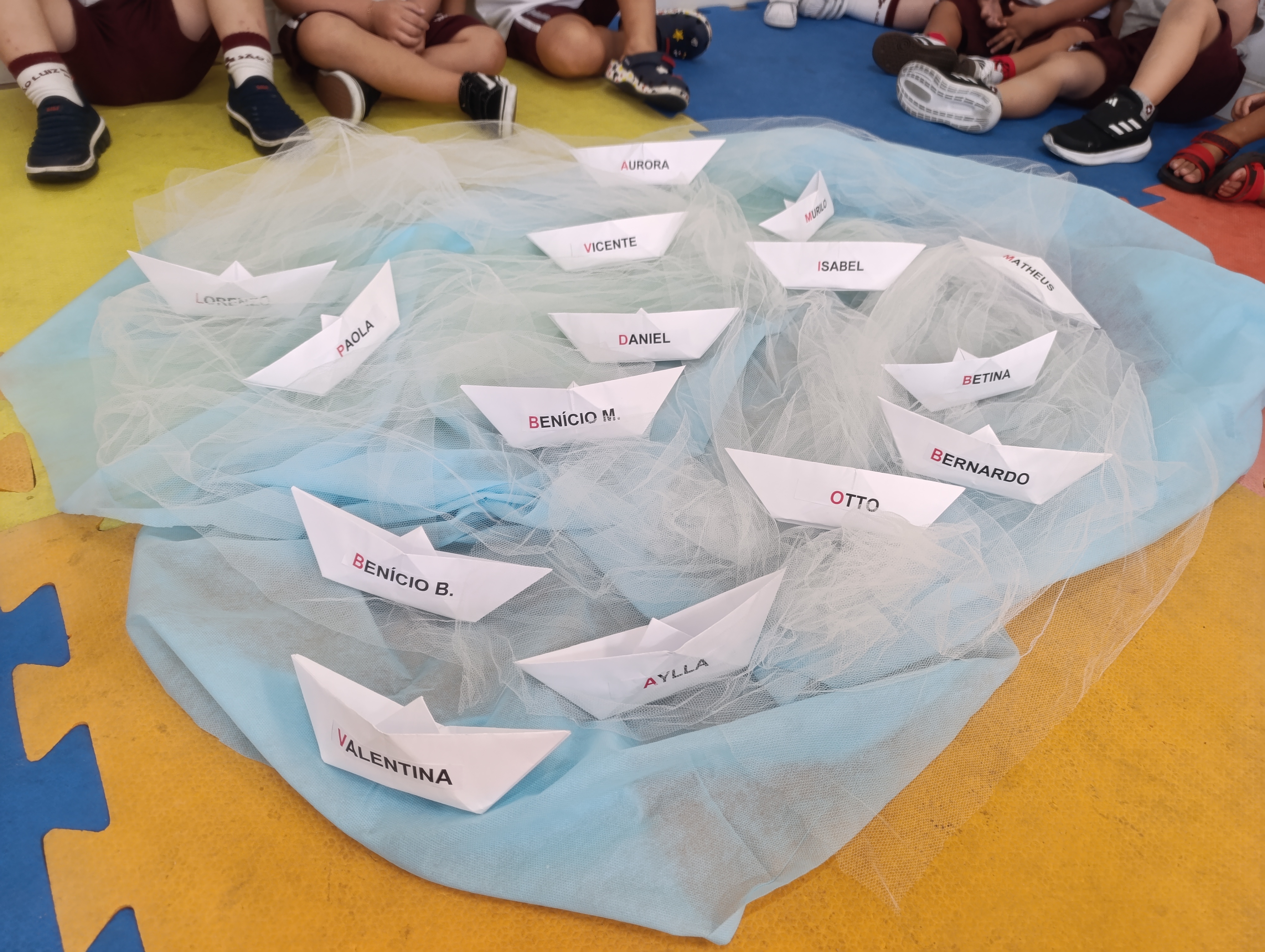 “As crianças expressaram suas ideias. Em seguida, foi revelado o mistério de que haviam muitas letrinhas dentro de cada barco. Em seguida, cada uma foi convidada a procurar o barquinho de papel, que estava sobre um tecido no chão, que continha seu nome. Também pintamos um mar onde cada um colocou seu barco a navegar pelo oceano”, comentou.