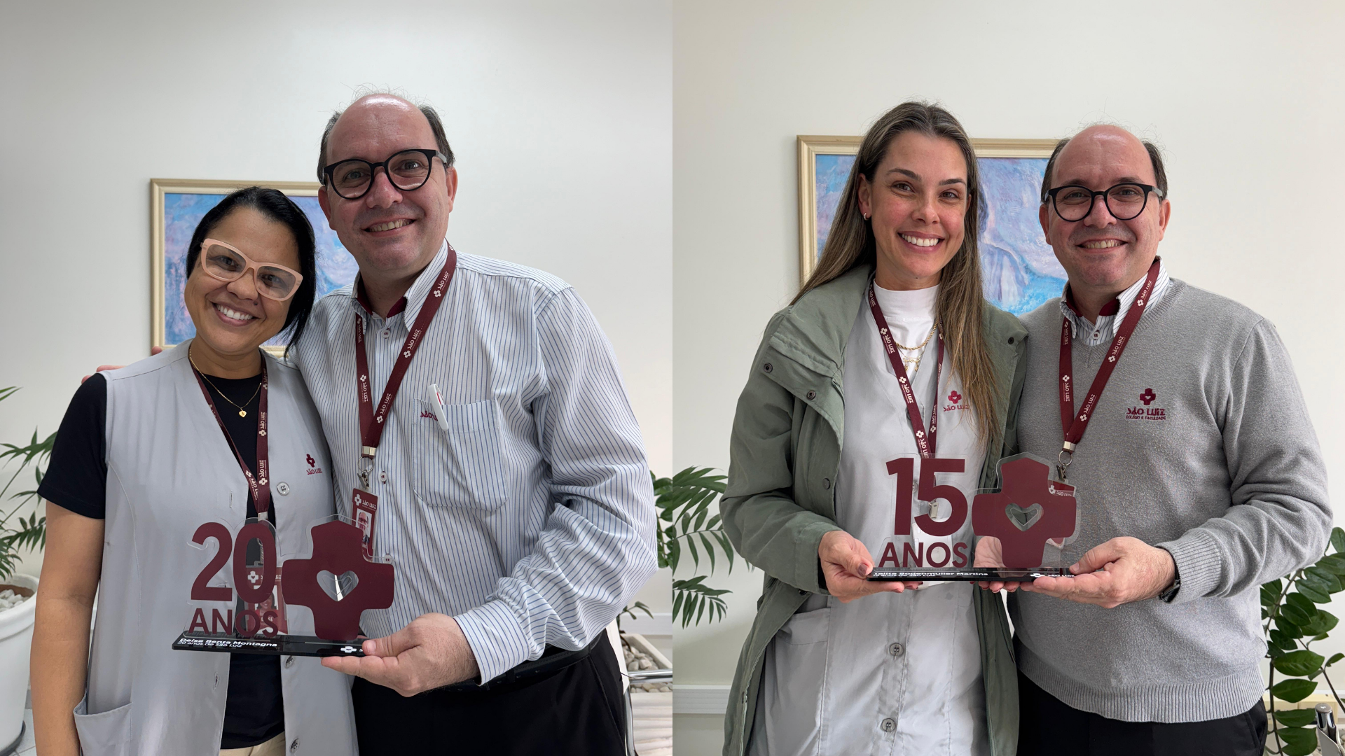 As professoras Deise Benta Montagna e Talita Bodenmüller Martins foram homenageadas por completarem 20 e 15 anos de dedicação ao Colégio São Luiz neste mês de agosto. Elas receberam troféus, que simbolizam o reconhecimento do colégio pelo trabalho desenvolvido ao longo desses anos.Deise completou duas décadas no Colégio São Luiz no dia 3 de agosto. Ela é professora do Ensino Fundamental 2 e considera uma honra fazer parte da equipe da instituição. \"Amo sair de casa e vir pra a instituição. Ser homenageada, me faz sentir valorizada, lembrada e amada. Pude entender que sempre fiz e posso continuar fazendo a diferença na vida dos alunos. São 20 anos de trocas, amor, ensino e muito aprendizado\", avalia. Já Talita, que é professora da Educação Infantil, comemorou 15 anos de casa no dia 17 de agosto. \"Sou muito feliz no Colégio São Luiz. Durante esses anos aprendi e evoluí muito como profissional e construí lindas amizades. Ser lembrada e homenageada só reforça o sentimento que somos importantes para a instituição\", considera. Para o diretor do Colégio e Faculdade São Luiz, padre Silvano João da Costa, lembrar, celebrar e reconhecer a importância dos colaboradores na instituição é de suma importância. “O Colégio tem 121 anos e parte desses anos as professoras Deise e Talita ajudaram a construir. Somos gratos pelo ser e fazer delas em nossa instituição”, ressalta.