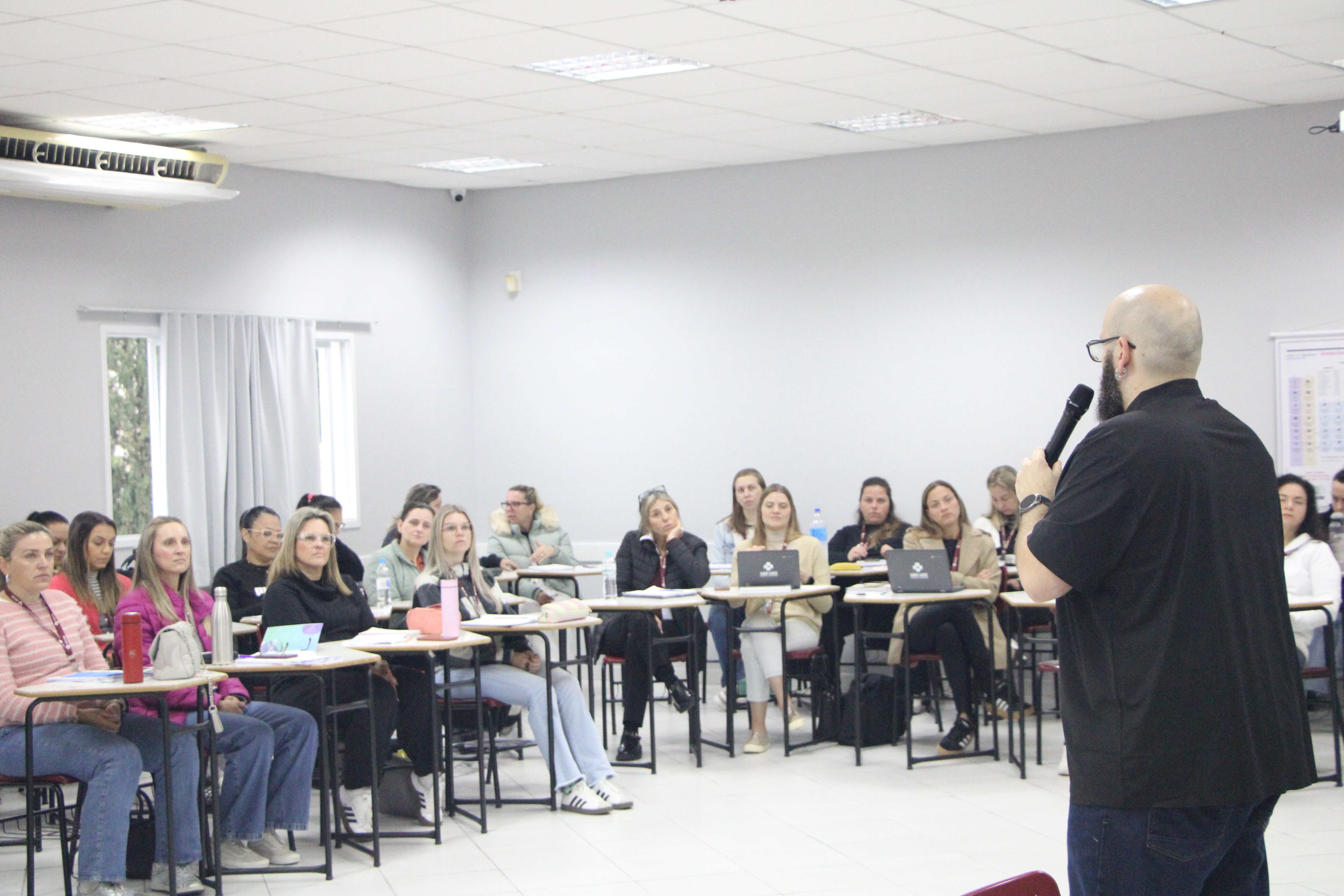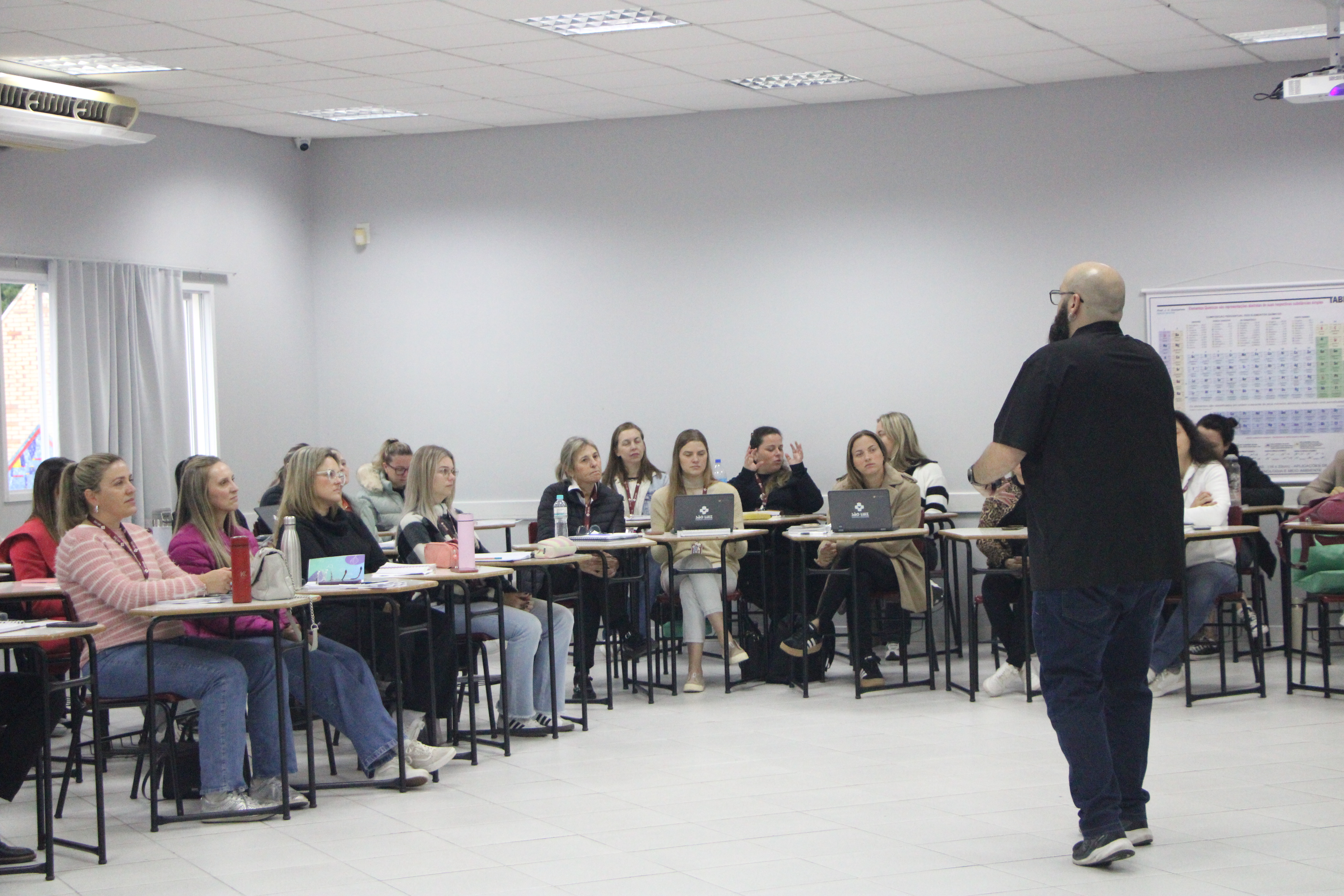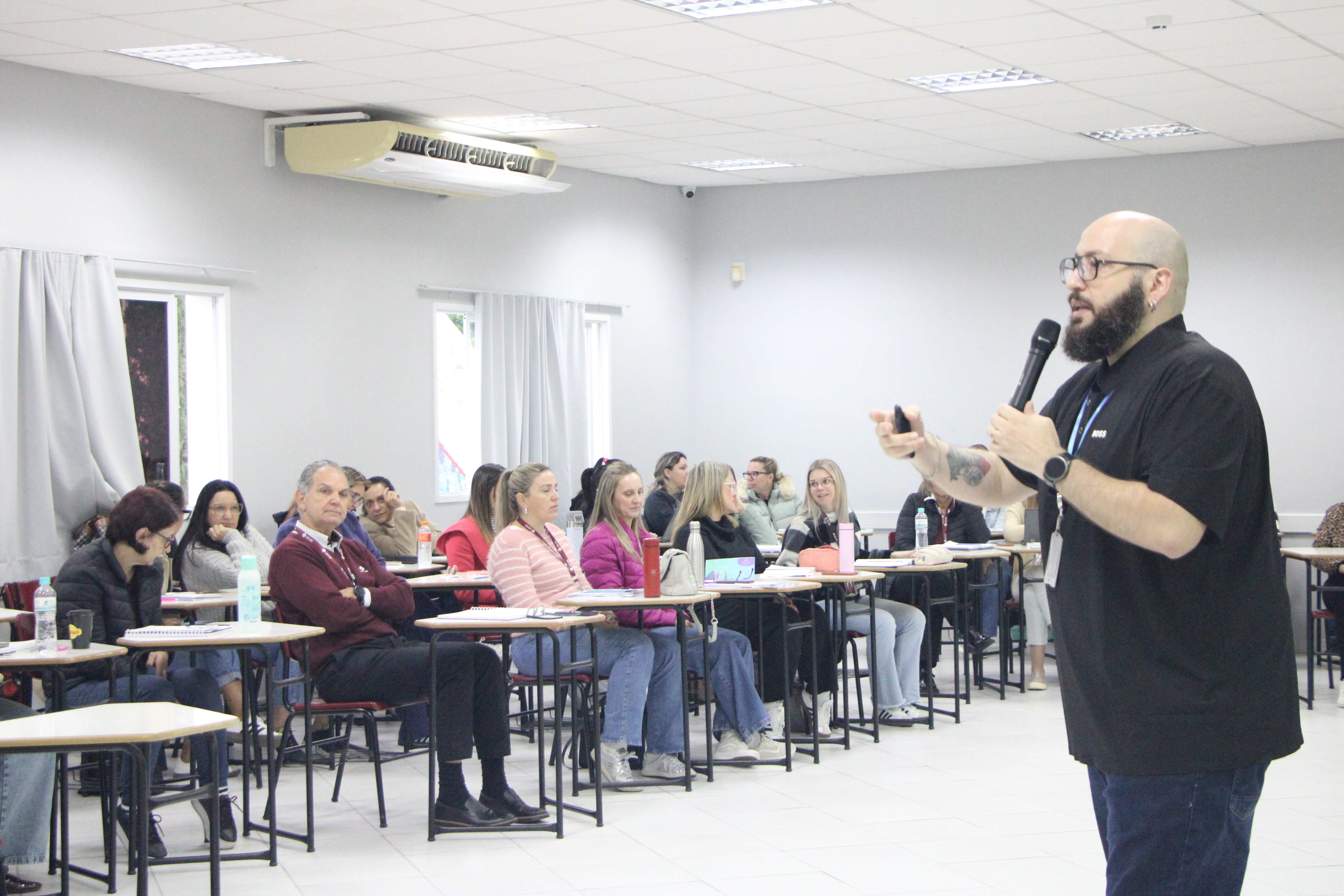 O Colégio São Luiz promoveu, entre os dias 21 e 24 de julho, sua tradicional formação pedagógica, reunindo professores e equipe técnica para momentos de capacitação, integração e preparação para o segundo semestre letivo. A programação iniciou com um encontro especial no Seminário Sagrado Coração de Jesus, em Corupá, e ao longo da semana seguiu com oficinas e palestras voltadas ao uso da inteligência artificial (IA) na educação.Um dos destaques da formação foi a participação do analista de conteúdo do Bernoulli Sistema de Ensino, Bruno de Carvalho Correia, que palestrou na manhã desta quinta-feira, 24. Ele abordou a presença crescente das ferramentas de IA no cotidiano das escolas e destacou a importância de os educadores se apropriarem dessas tecnologias.\"As inteligências artificiais são um novo ponto de inflexão que estão mudando completamente a relação que as pessoas têm com a produção de conhecimento. As escolas e os professores precisam dialogar com essa realidade para orientar os estudantes de forma responsável e consciente\", afirmou.Durante sua fala, Bruno também apresentou aspectos técnicos das ferramentas, como seu funcionamento, os riscos de “alucinações” (respostas incorretas geradas pelas IAs) e a necessidade de adaptação de uso conforme as diferentes faixas etárias. “A ideia foi trabalhar por segmento da educação básica, apresentando possibilidades práticas de uso”, explicou.