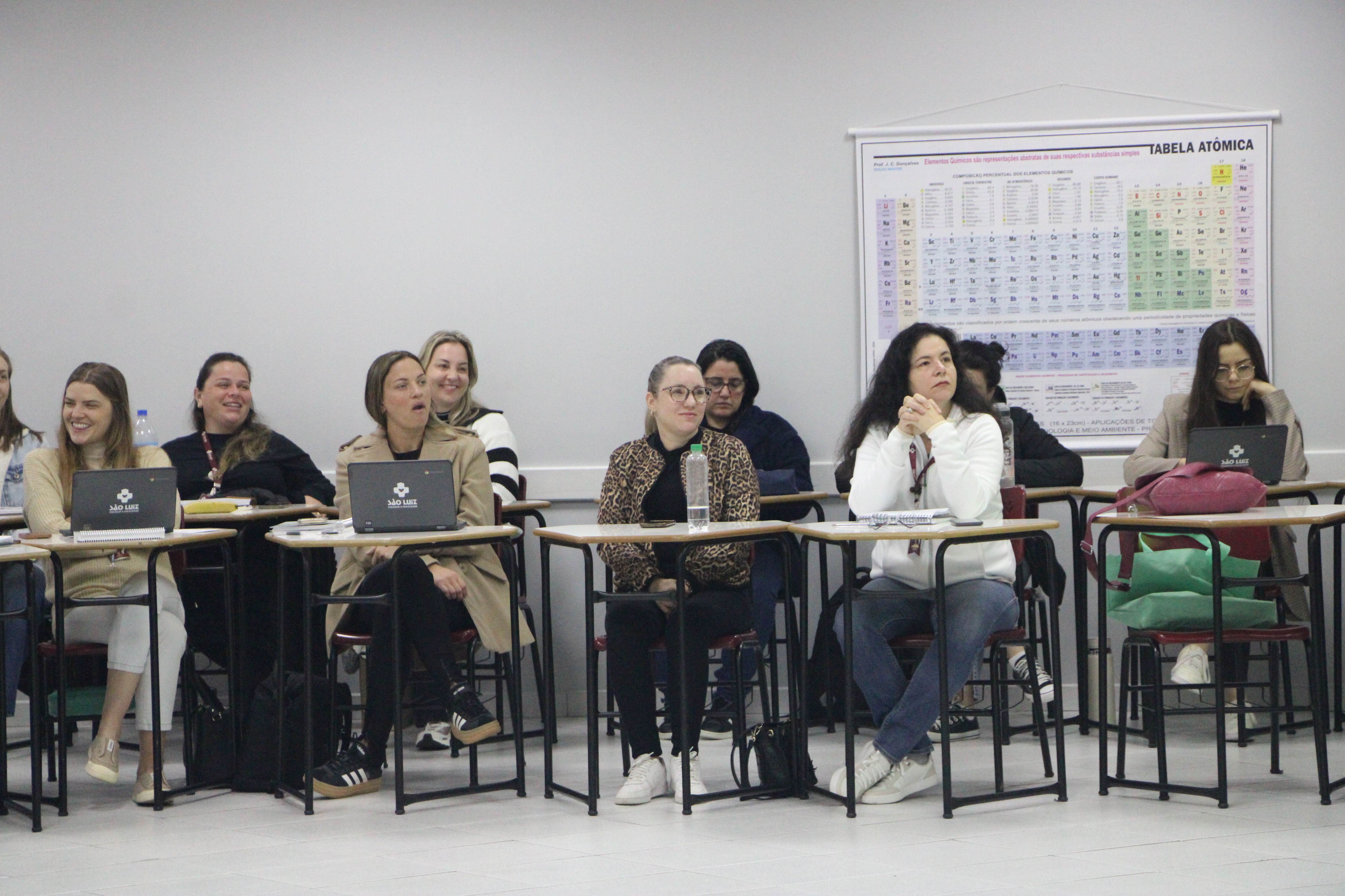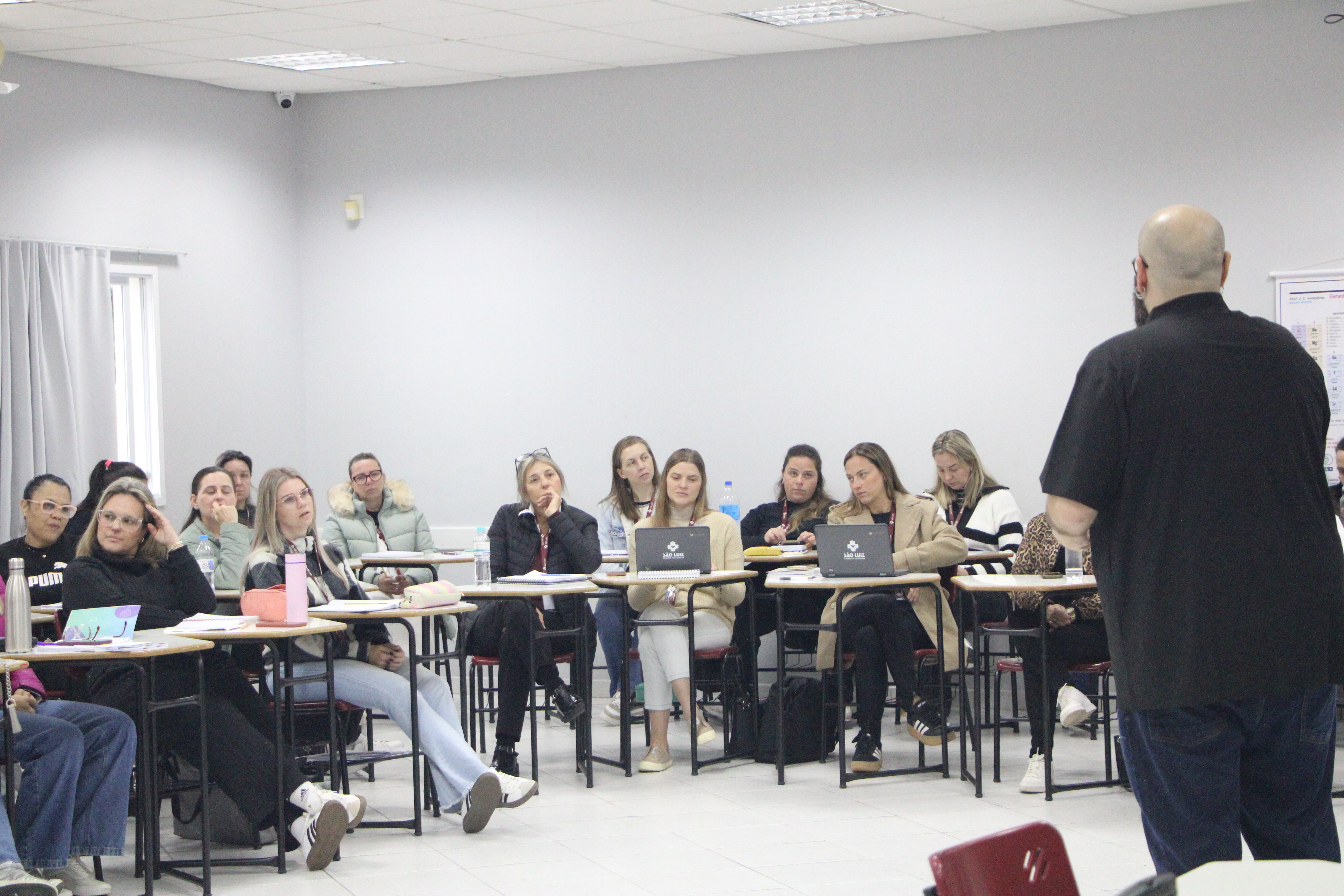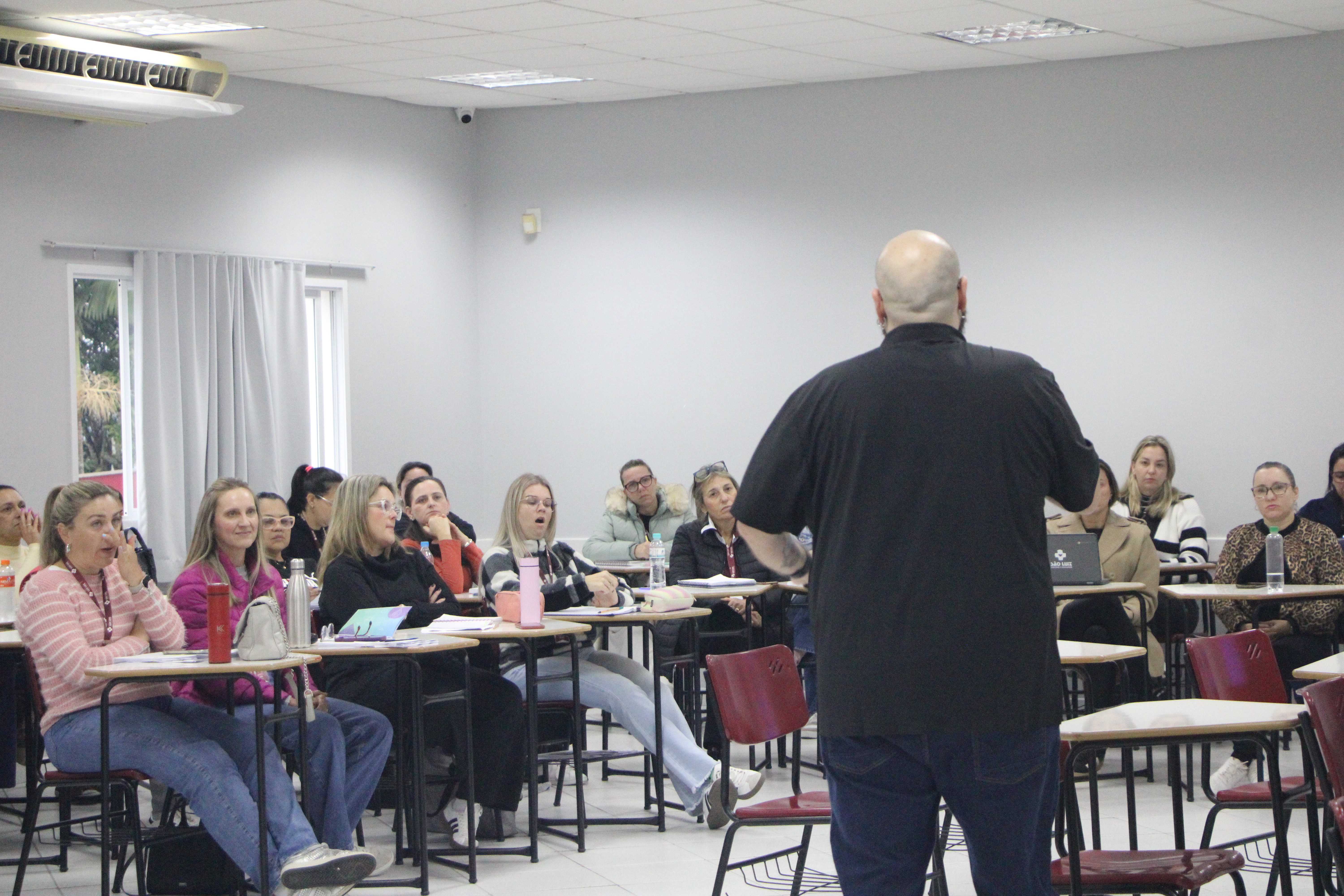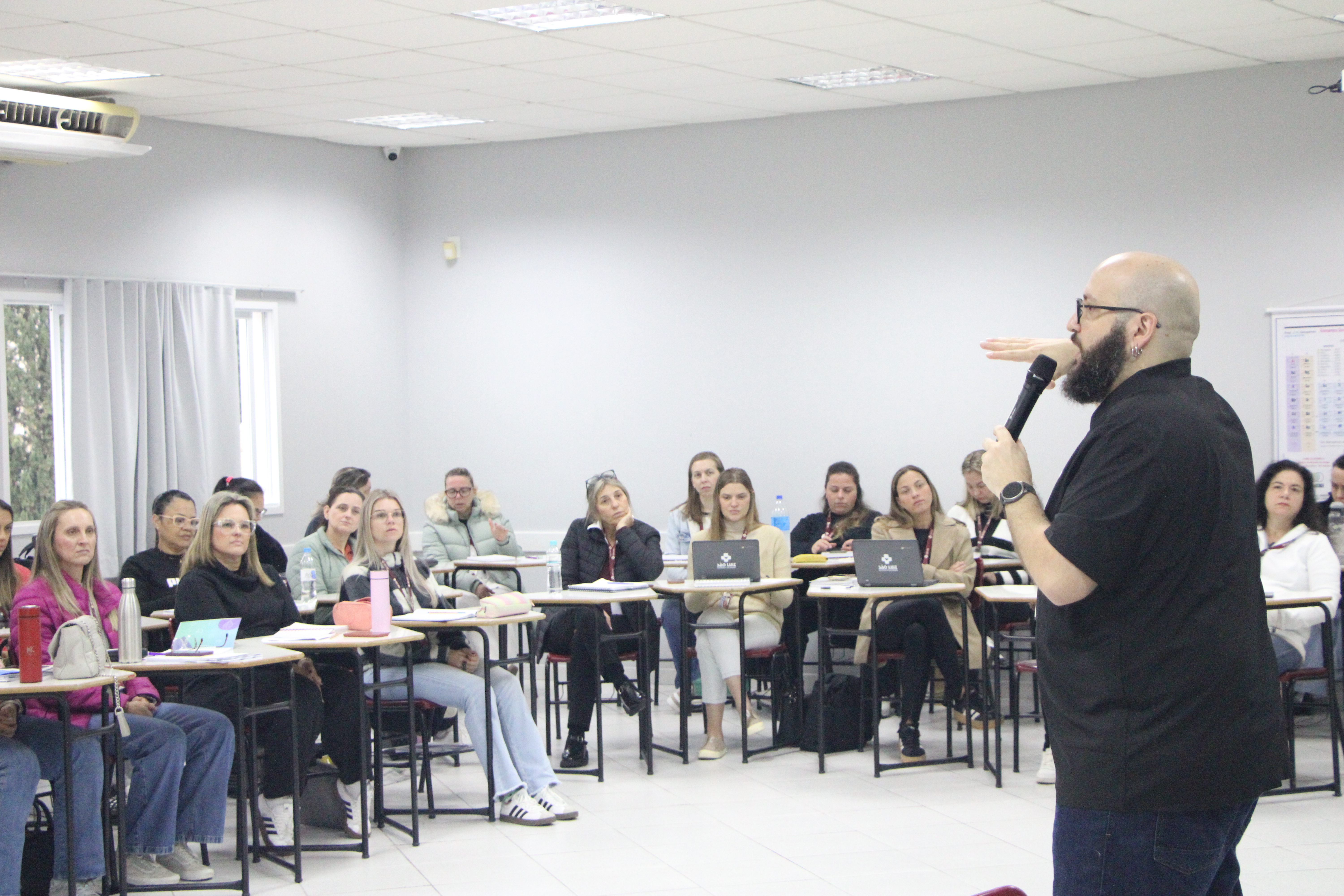 O Colégio São Luiz promoveu, entre os dias 21 e 24 de julho, sua tradicional formação pedagógica, reunindo professores e equipe técnica para momentos de capacitação, integração e preparação para o segundo semestre letivo. A programação iniciou com um encontro especial no Seminário Sagrado Coração de Jesus, em Corupá, e ao longo da semana seguiu com oficinas e palestras voltadas ao uso da inteligência artificial (IA) na educação.Um dos destaques da formação foi a participação do analista de conteúdo do Bernoulli Sistema de Ensino, Bruno de Carvalho Correia, que palestrou na manhã desta quinta-feira, 24. Ele abordou a presença crescente das ferramentas de IA no cotidiano das escolas e destacou a importância de os educadores se apropriarem dessas tecnologias.\"As inteligências artificiais são um novo ponto de inflexão que estão mudando completamente a relação que as pessoas têm com a produção de conhecimento. As escolas e os professores precisam dialogar com essa realidade para orientar os estudantes de forma responsável e consciente\", afirmou.Durante sua fala, Bruno também apresentou aspectos técnicos das ferramentas, como seu funcionamento, os riscos de “alucinações” (respostas incorretas geradas pelas IAs) e a necessidade de adaptação de uso conforme as diferentes faixas etárias. “A ideia foi trabalhar por segmento da educação básica, apresentando possibilidades práticas de uso”, explicou.