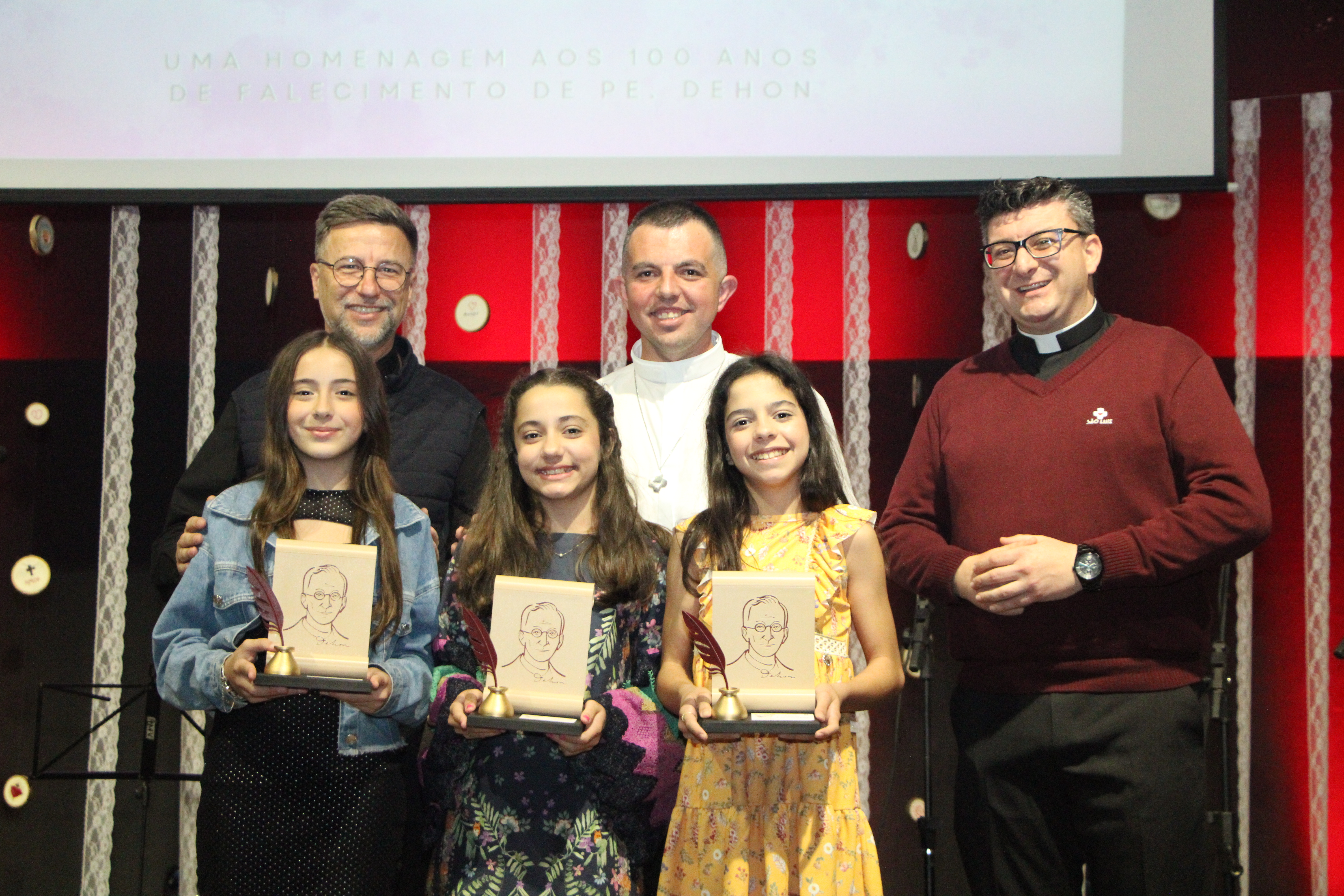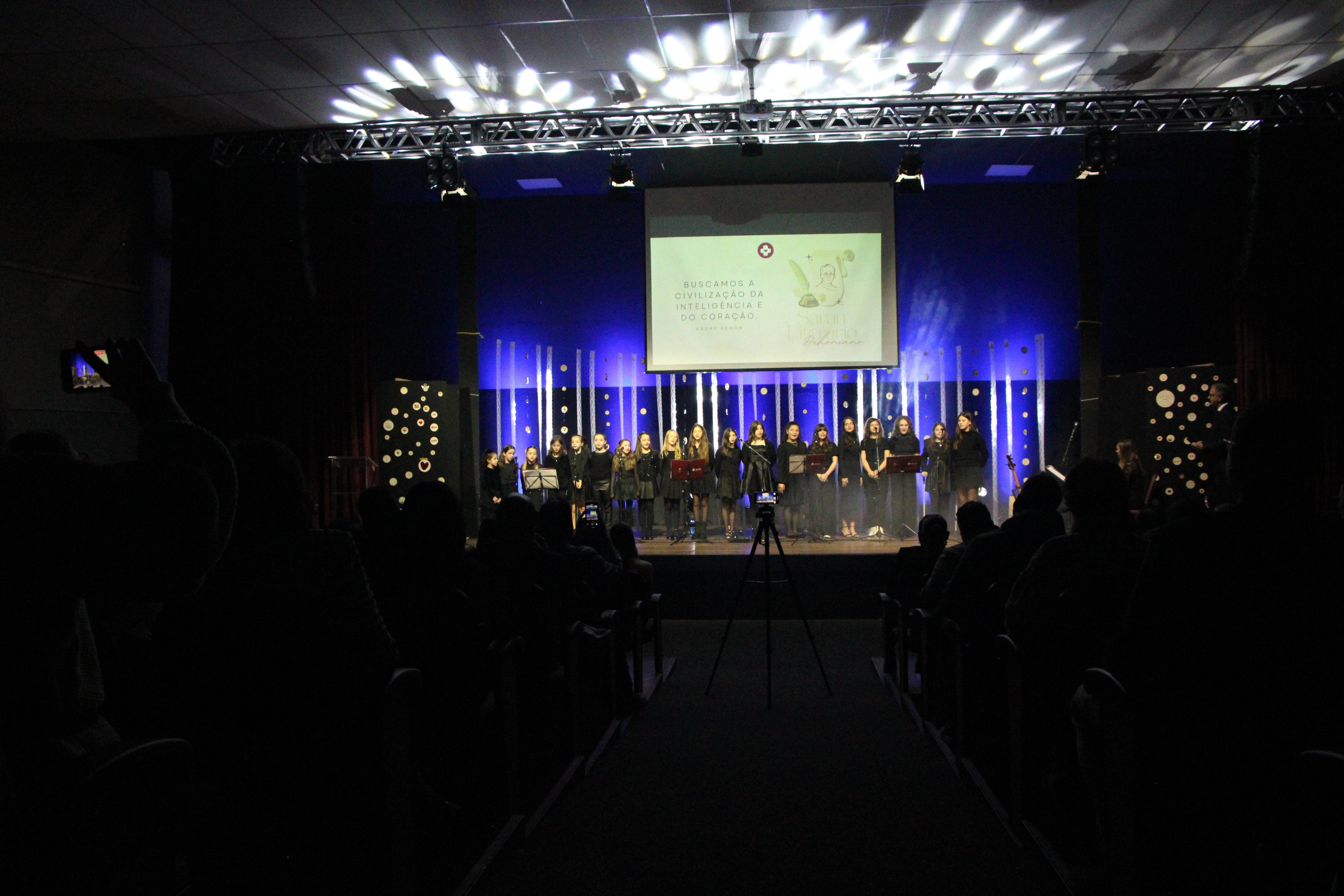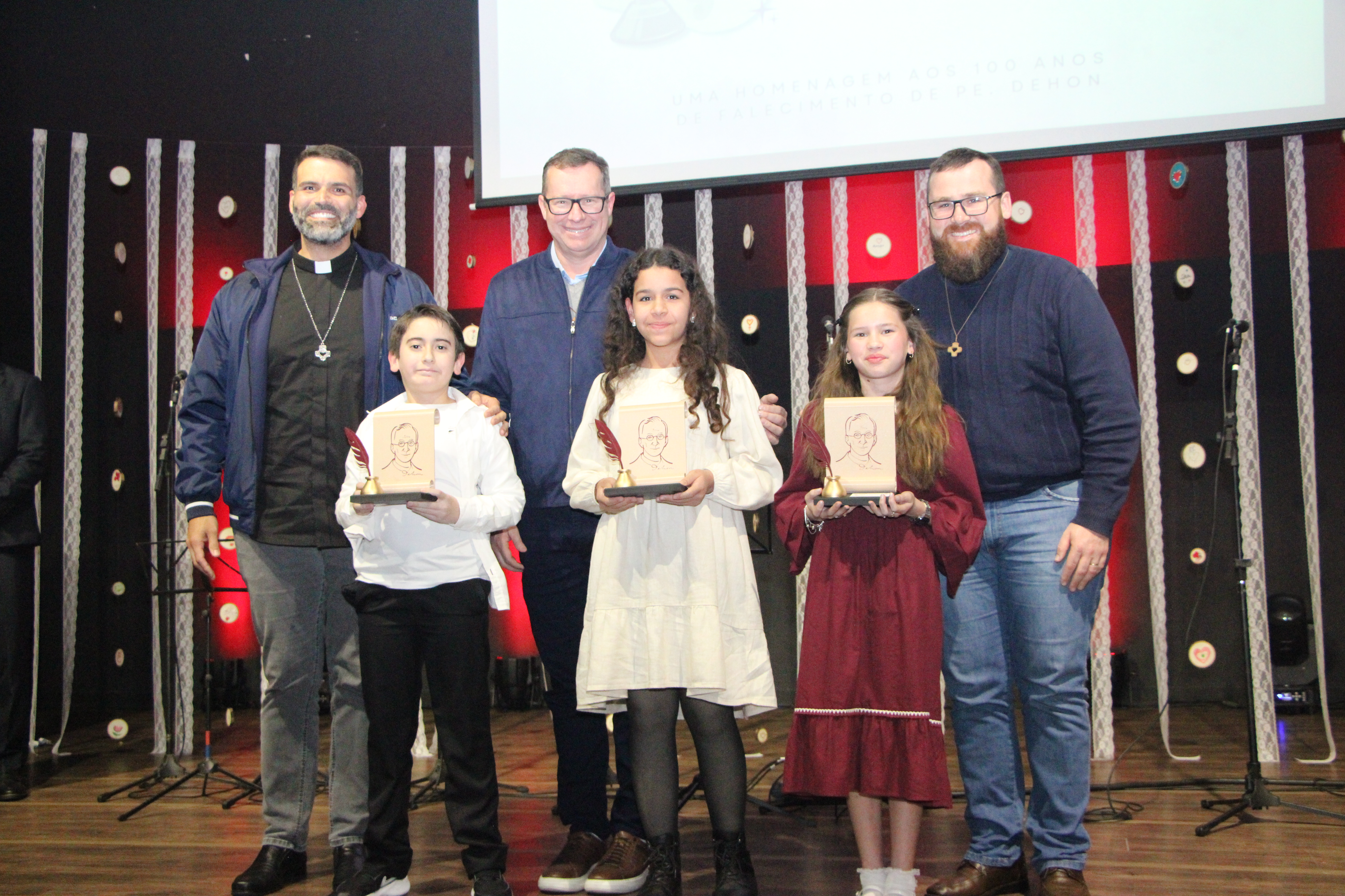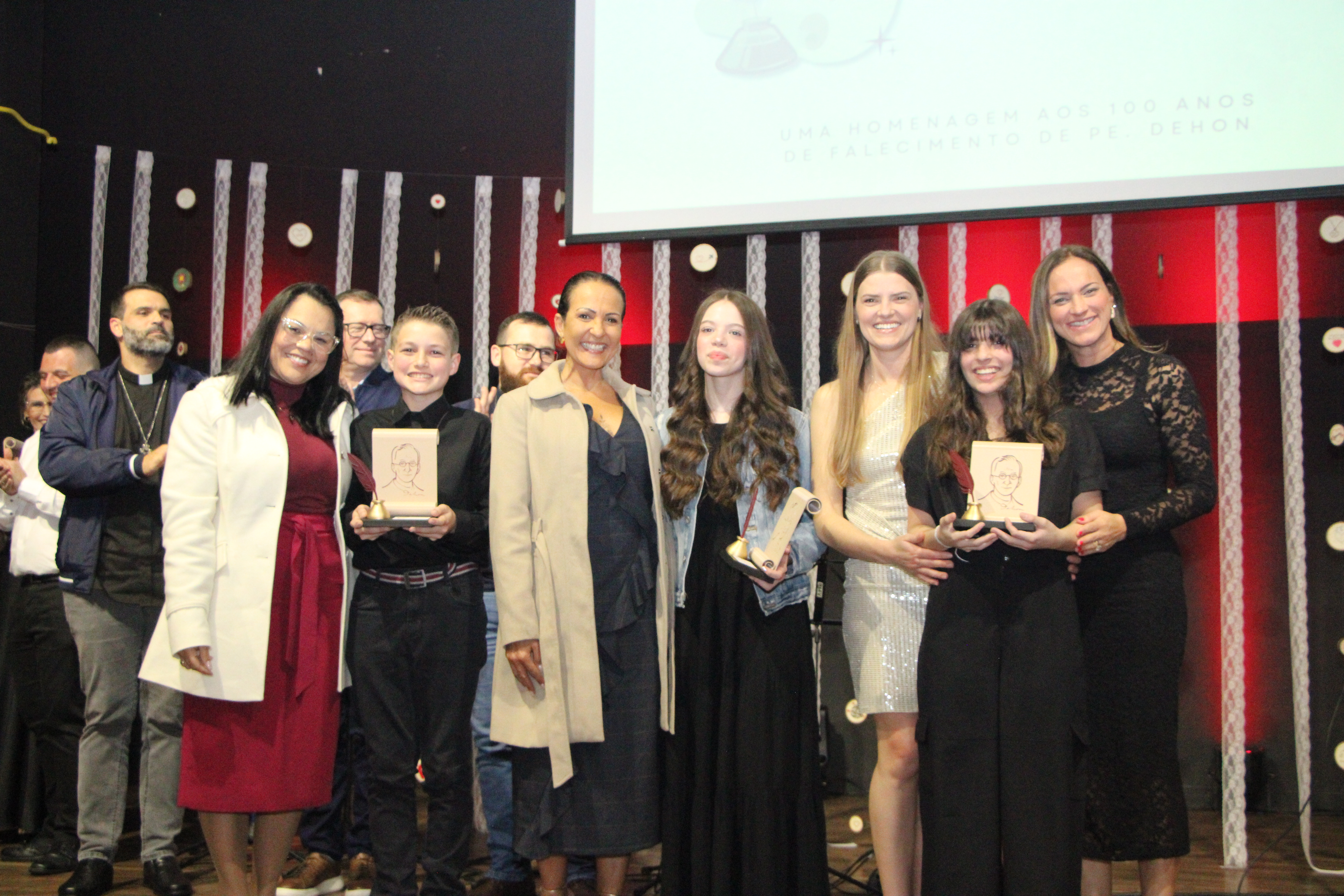 Evento construído por várias mãosA decoração do palco foi inspirada no aconchego das famílias. Durante as férias, os alunos levaram para casa um tecido para bordar, inspirados na frase “Só se vê bem com o coração”. O resultado foram dezenas de peças únicas e cheias de significado, usadas como cenário para o sarau.“O bordado remete ao carinho, à união e ao servir, valores que Padre Dehon tanto pregava”, destacou Alice Hoffmann Knhis, professora de Artes.Na música, o grupo vocal, formado por 19 crianças e jovens do 1º ao 7º ano, apresentou três canções do Padre Zezinho que retratam a simplicidade, a missão e o legado de Padre Dehon.“Além de serem belas obras, essas músicas são orações. Quando unimos arte e espiritualidade no ambiente escolar, a mensagem se torna ainda mais forte”, destaca Jenifer Prette Jorge, professora de Música.As professoras Kalinka de Souza e Deise Montagna, em parceria com a biblioteca, foram as responsáveis pelo concurso de poesias que envolveu os alunos do Ensino Fundamental II.“O padre Silvano sempre sonhou com um festival de poemas, e conseguimos unir esse desejo à comemoração dos 100 anos da morte do fundador da Congregação. Os alunos ouviram a história de Padre Dehon contada pelo frater Cristiano, que se caracterizou como ele, e, inspirados por esse momento, escreveram seus próprios poemas”, contou Kalinka.“Foi tudo feito em sala de aula, no impulso criativo do instante, e o resultado é emocionante”, completou Deise.O frater Cristiano Schneider, coordenador da Pastoral, também foi responsável pela peça teatral apresentada na noite.“Tudo foi preparado com muito carinho. O teatro revela talentos, aproxima os alunos da história da Congregação e transmite o amor que Padre Dehon tinha pelo Sagrado Coração de Jesus”, afirmou.Representando o Superior Provincial da Congregação, padre Anísio José Schwirkowski ressaltou o valor do evento.“É louvável ver nossas obras educativas reconhecendo Padre Dehon não apenas como religioso, mas como alguém que contribuiu para a sociedade. A arte toca diretamente o coração e garante que essa memória permaneça viva”.