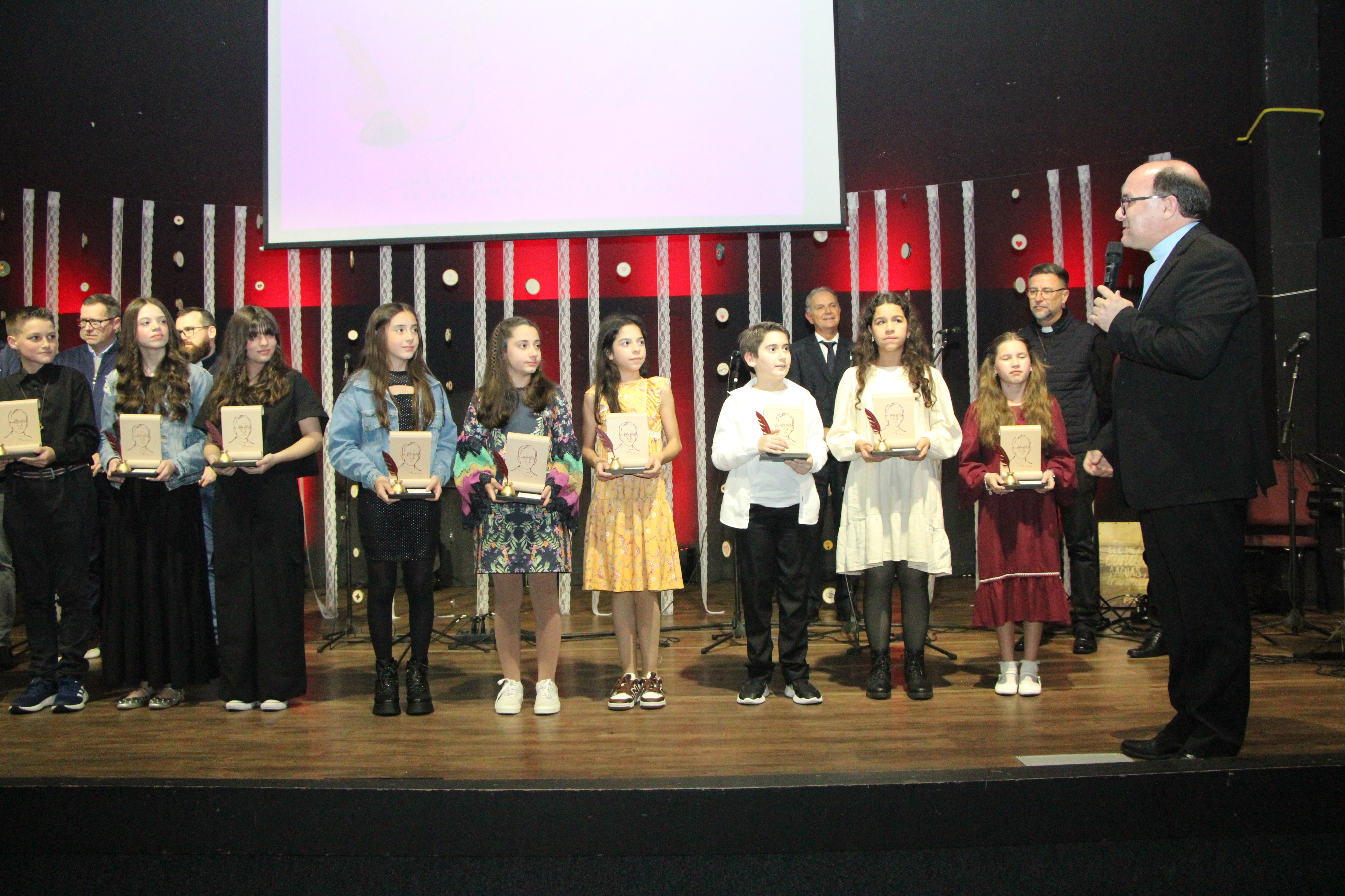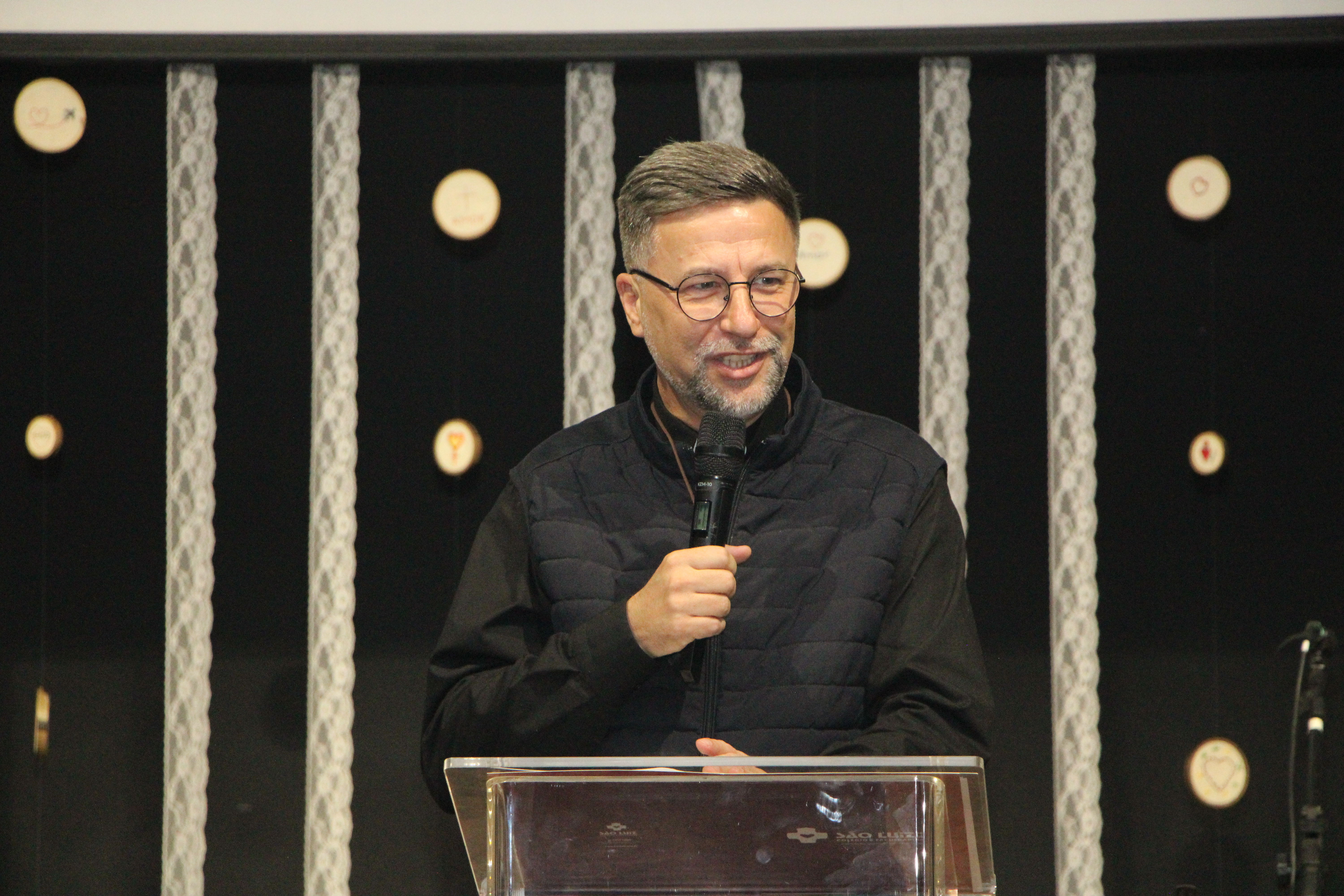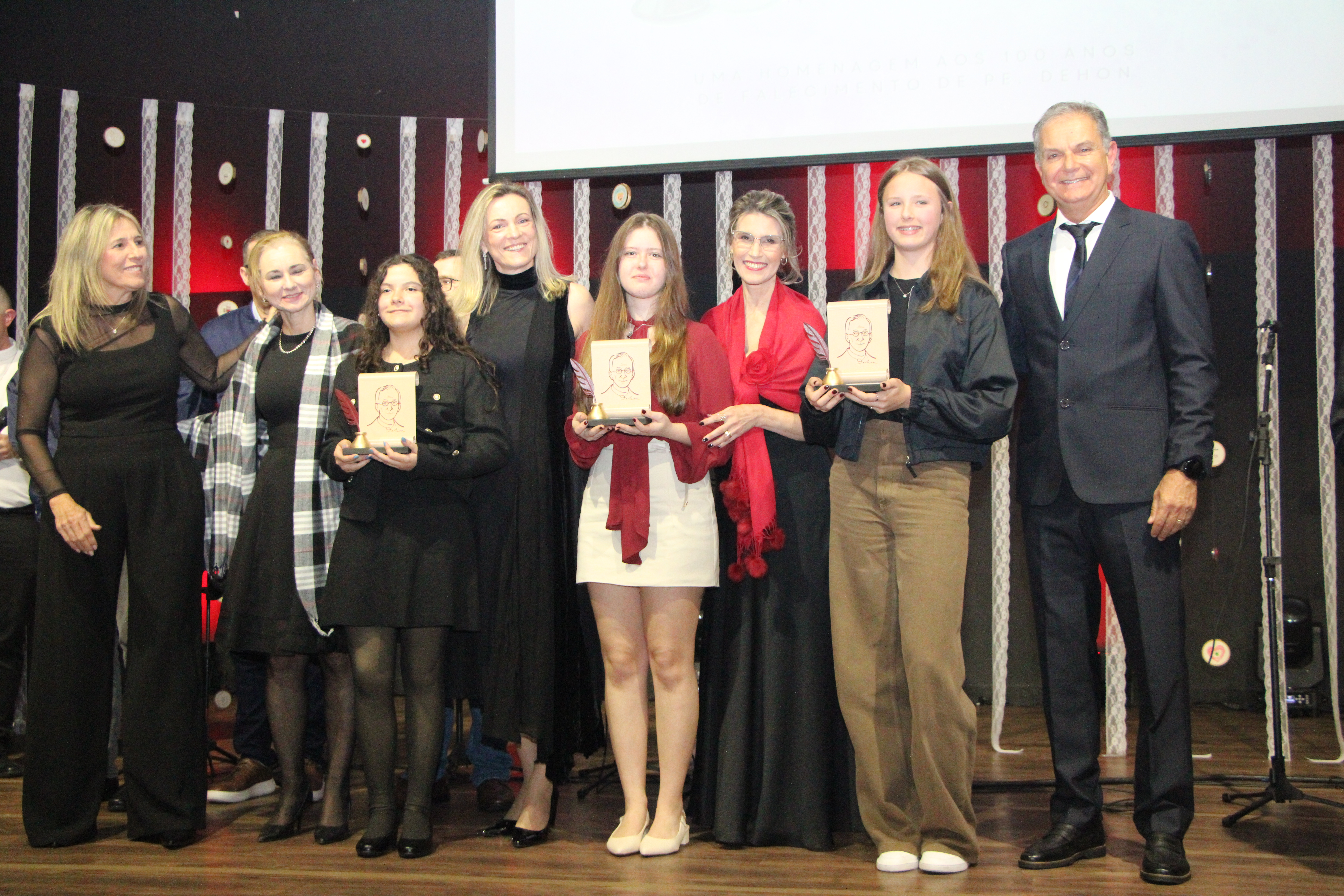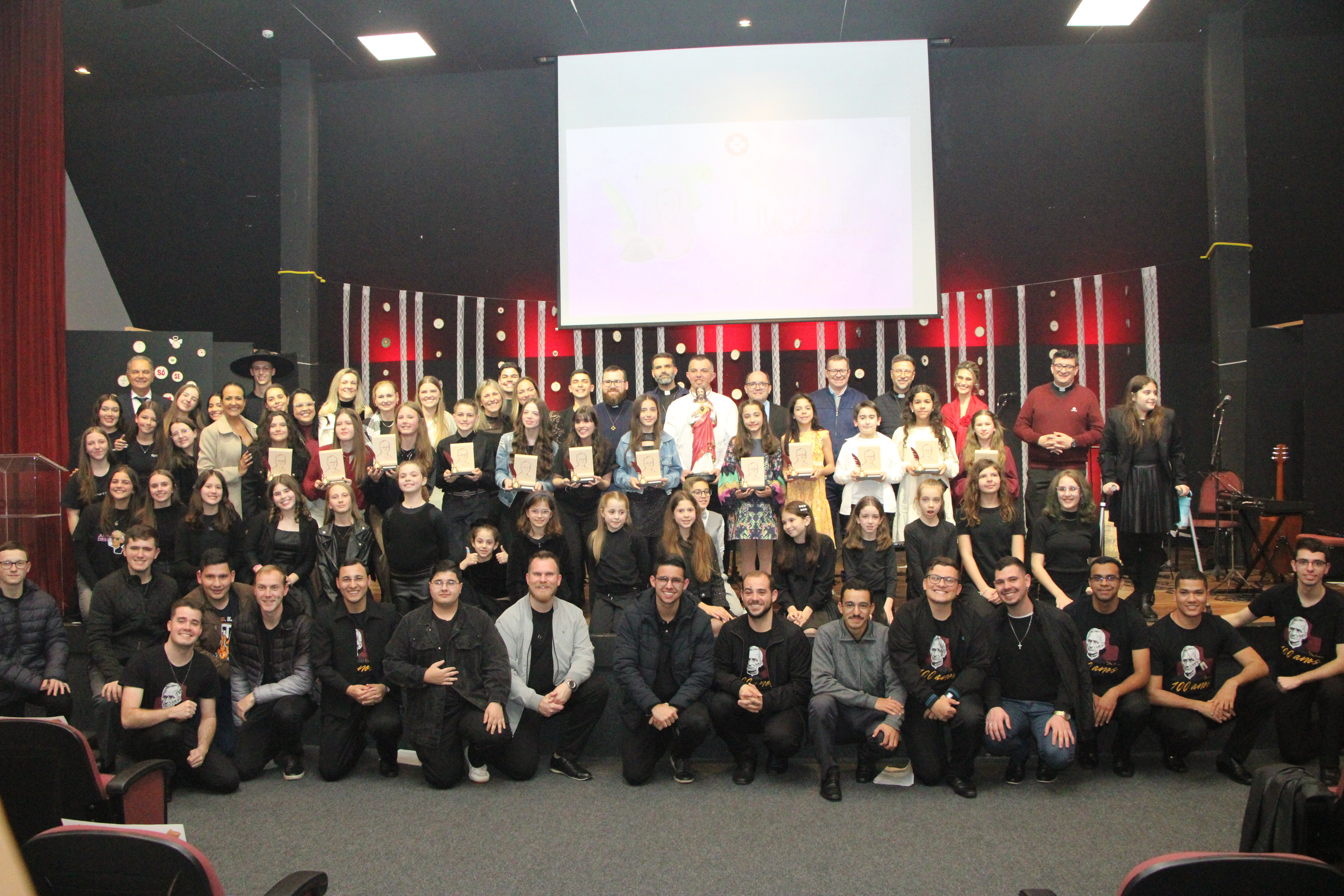 Evento construído por várias mãosA decoração do palco foi inspirada no aconchego das famílias. Durante as férias, os alunos levaram para casa um tecido para bordar, inspirados na frase “Só se vê bem com o coração”. O resultado foram dezenas de peças únicas e cheias de significado, usadas como cenário para o sarau.“O bordado remete ao carinho, à união e ao servir, valores que Padre Dehon tanto pregava”, destacou Alice Hoffmann Knhis, professora de Artes.Na música, o grupo vocal, formado por 19 crianças e jovens do 1º ao 7º ano, apresentou três canções do Padre Zezinho que retratam a simplicidade, a missão e o legado de Padre Dehon.“Além de serem belas obras, essas músicas são orações. Quando unimos arte e espiritualidade no ambiente escolar, a mensagem se torna ainda mais forte”, destaca Jenifer Prette Jorge, professora de Música.As professoras Kalinka de Souza e Deise Montagna, em parceria com a biblioteca, foram as responsáveis pelo concurso de poesias que envolveu os alunos do Ensino Fundamental II.“O padre Silvano sempre sonhou com um festival de poemas, e conseguimos unir esse desejo à comemoração dos 100 anos da morte do fundador da Congregação. Os alunos ouviram a história de Padre Dehon contada pelo frater Cristiano, que se caracterizou como ele, e, inspirados por esse momento, escreveram seus próprios poemas”, contou Kalinka.“Foi tudo feito em sala de aula, no impulso criativo do instante, e o resultado é emocionante”, completou Deise.O frater Cristiano Schneider, coordenador da Pastoral, também foi responsável pela peça teatral apresentada na noite.“Tudo foi preparado com muito carinho. O teatro revela talentos, aproxima os alunos da história da Congregação e transmite o amor que Padre Dehon tinha pelo Sagrado Coração de Jesus”, afirmou.Representando o Superior Provincial da Congregação, padre Anísio José Schwirkowski ressaltou o valor do evento.“É louvável ver nossas obras educativas reconhecendo Padre Dehon não apenas como religioso, mas como alguém que contribuiu para a sociedade. A arte toca diretamente o coração e garante que essa memória permaneça viva”.