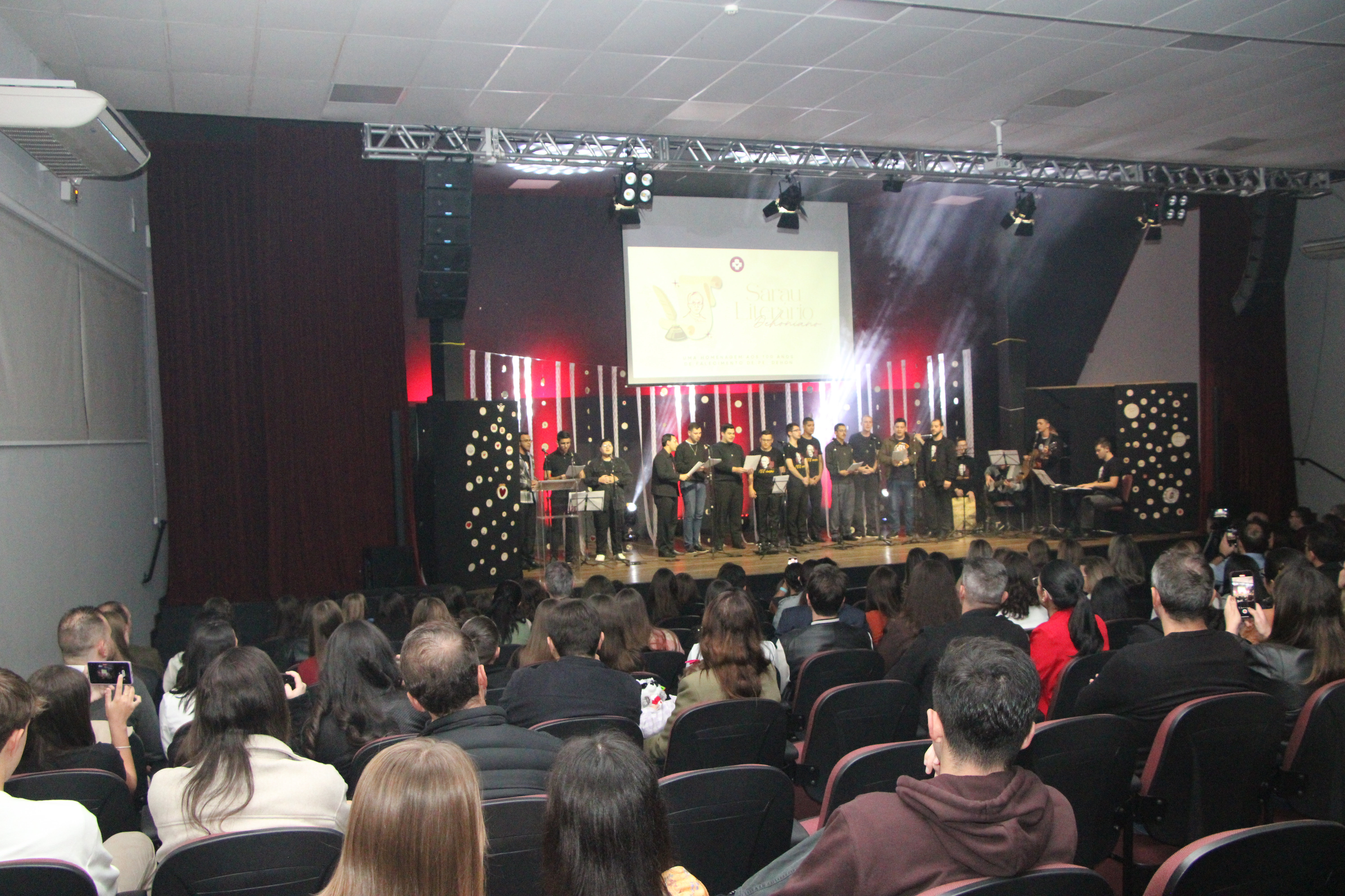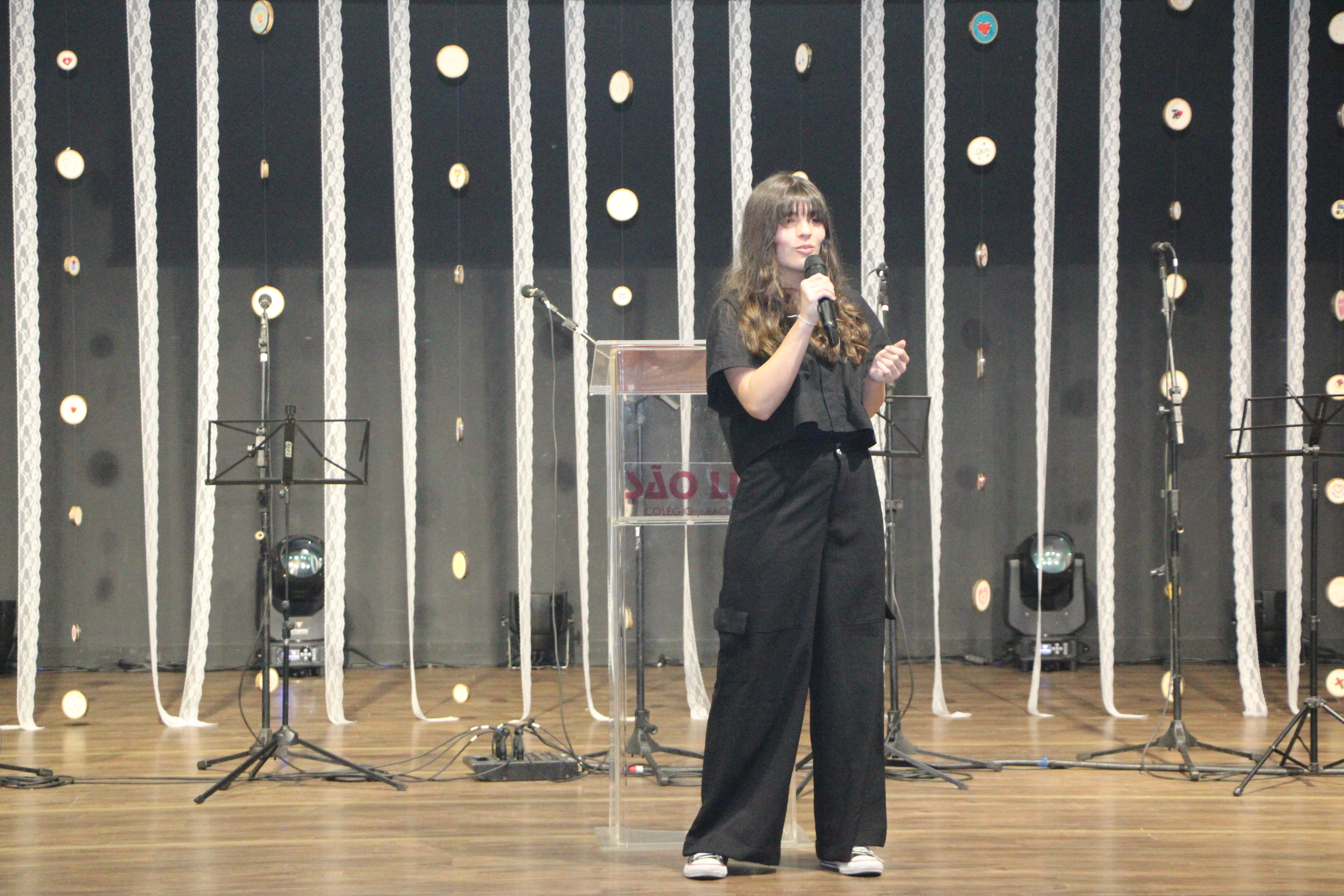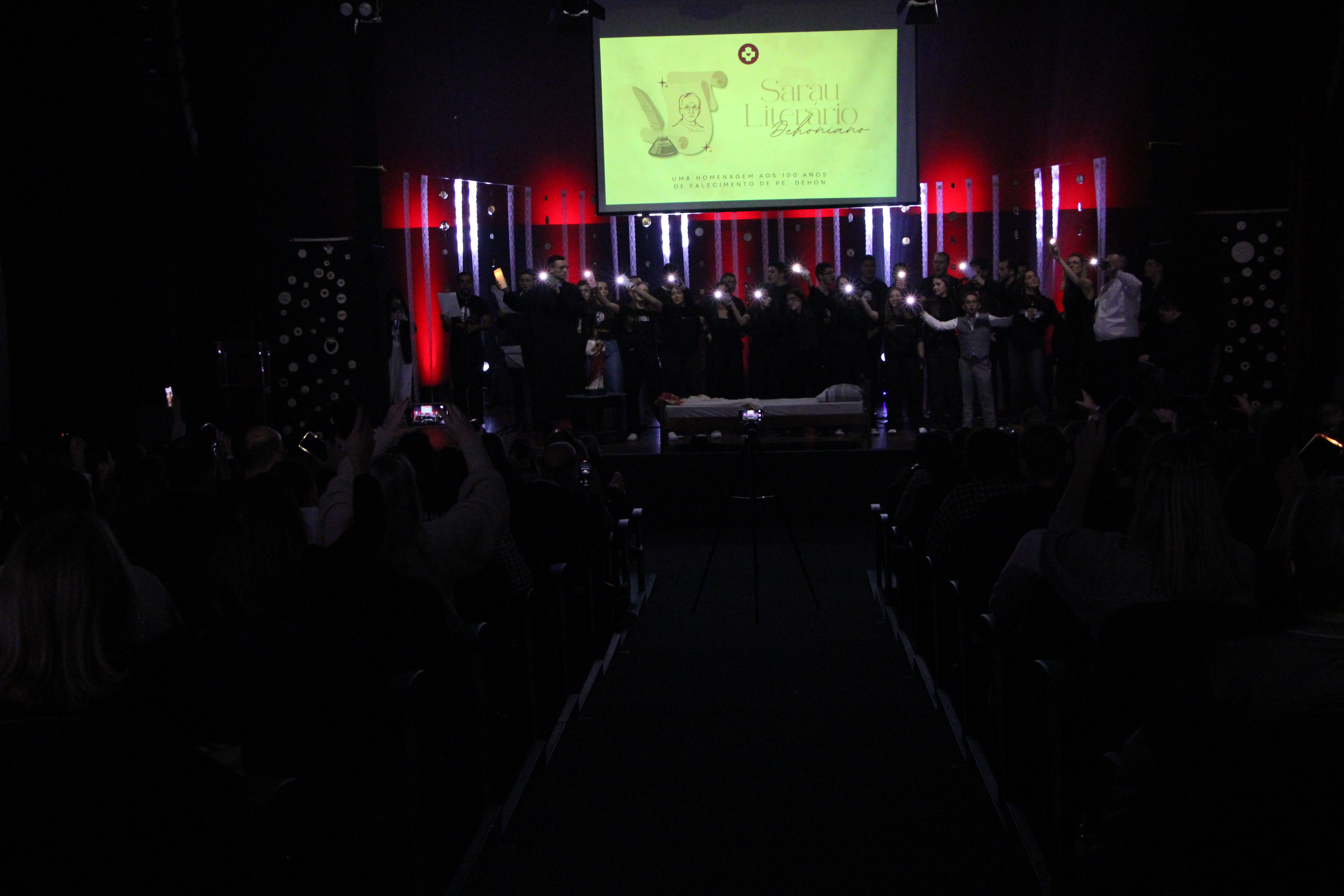 Com bordados coloridos, poemas autorais e músicas que tocam o coração, o Colégio São Luiz transformou a noite desta quinta-feira, 14 de agosto, em um tributo de arte e gratidão a Padre João Leão Dehon, fundador da Congregação dos Sacerdotes do Sagrado Coração de Jesus.O Sarau Literário Dehoniano, realizado no auditório da Igreja Matriz São Luís Gonzaga, integrou as comemorações pelo centenário de sua morte e reuniu alunos, famílias e educadores em um momento cheio de arte.A noite teve início com a apresentação dos seminaristas do Convento Sagrado Coração de Jesus, seguida pela declamação de poesias autorais dos alunos do Ensino Fundamental II, vencedoras do concurso idealizado em parceria entre as professoras de Língua Portuguesa e a equipe da biblioteca escolar.O evento contou ainda com interpretações do grupo vocal do colégio e foi encerrado com uma encenação teatral preparada pela Pastoral Escolar. Ao final, os estudantes premiados receberam o troféu do concurso.Para o diretor do Colégio São Luiz, padre Silvano João da Costa, celebrar padre Dehon é reconhecer sua presença na história da instituição.“Dia 12 de agosto celebramos os 100 anos da morte de Padre Dehon. Para nós, cristãos, é a celebração da Páscoa, da morte para a vida. Trazer essa festa para o Colégio São Luiz é reconhecer que, se não fosse Padre Dehon, o colégio não existiria. Utilizamos a poesia, a música e a arte para render graças a Deus e agradecer por todas as sementes que ele semeou entre nós”.