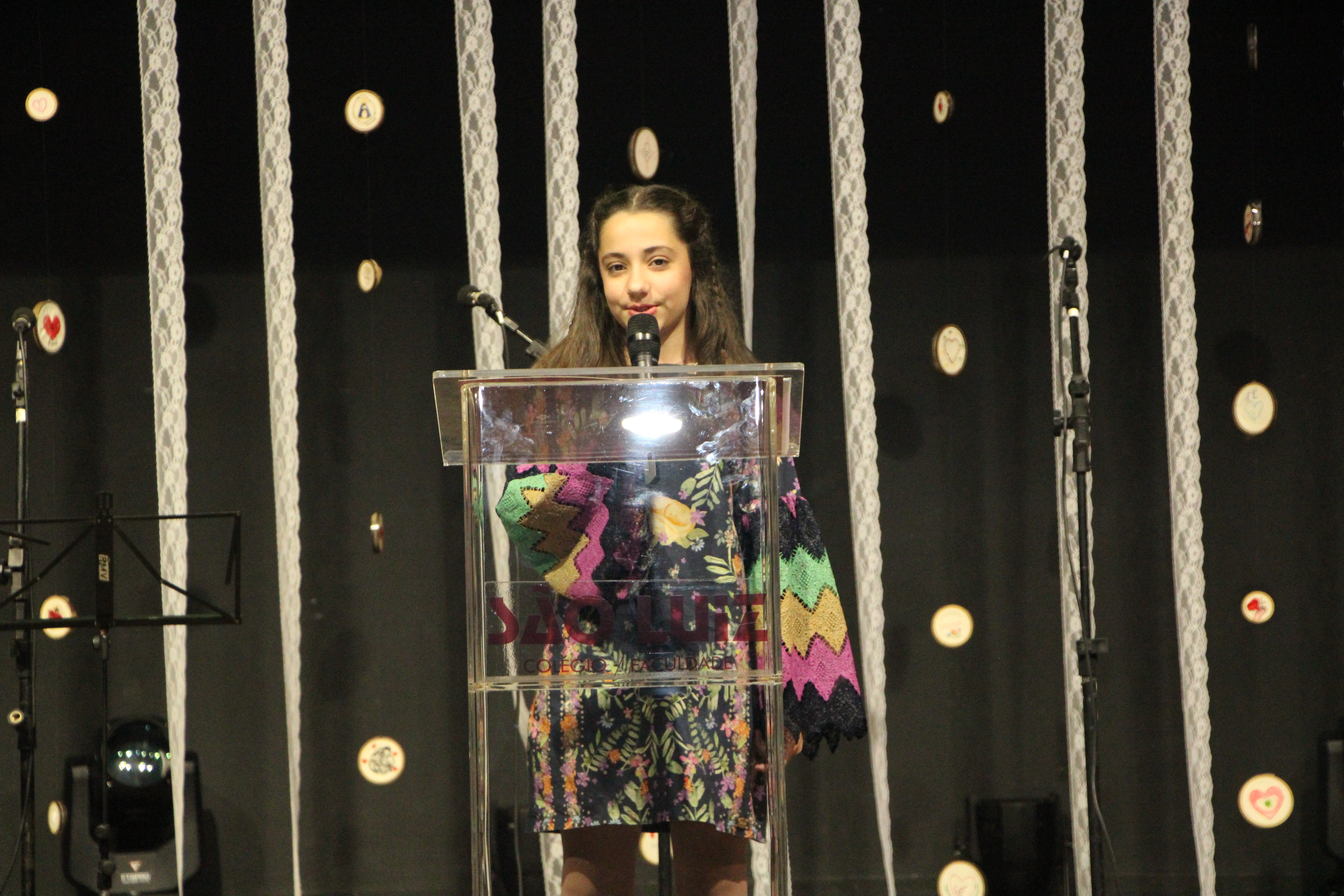 Olhar das famíliasPara os pais Patrícia Gevaerd Muller Coelho e Daniel Appel Coelho, ver a filha Rafaela, do 8º ano, declamar sua poesia foi uma grata surpresa.“Ela falou pra gente quando fez, mas quando leu no palco foi uma surpresa muito boa. Só temos a agradecer ao colégio por dar essa possibilidade de se apresentarem e receberem esse retorno. Foi uma festa bonita, que valoriza e oferece aos alunos a oportunidade de declamar. Uma experiência muito legal”, destacaram.Já Juliana e Fernando Bittelbrunn, pais de Mateus, do 7º ano, ressaltaram a realização pessoal do filho.“Ele é um menino muito especial, que se dedica muito em tudo o que faz. Quando veio a missão de escrever a poesia e se preparar para apresentar, foi uma realização para ele. Ficamos orgulhosos. O evento foi muito lindo, superou as expectativas. Ele queria muito viver essa experiência, e viveu intensamente nesta noite”, afirmaram.